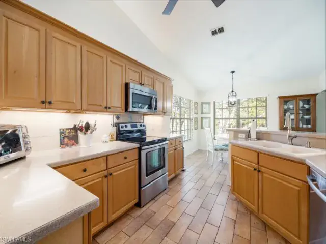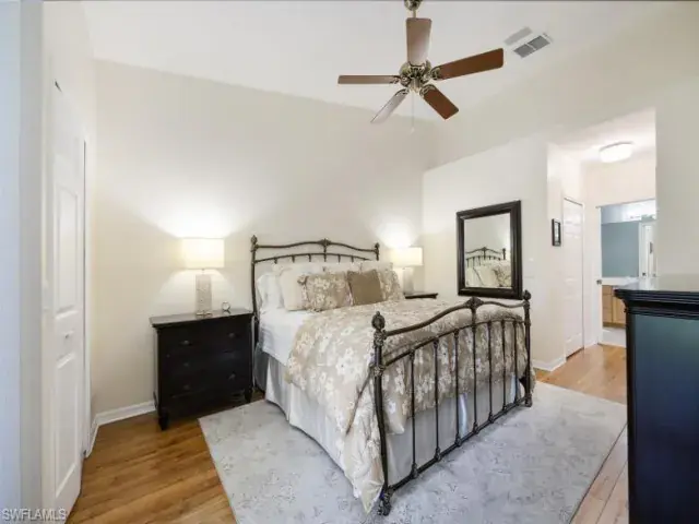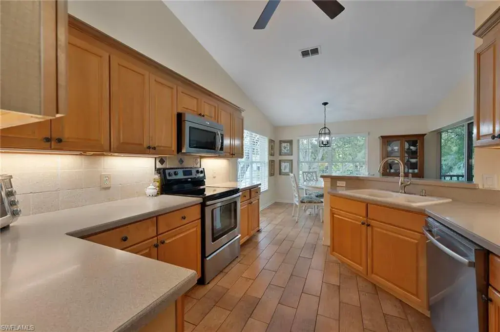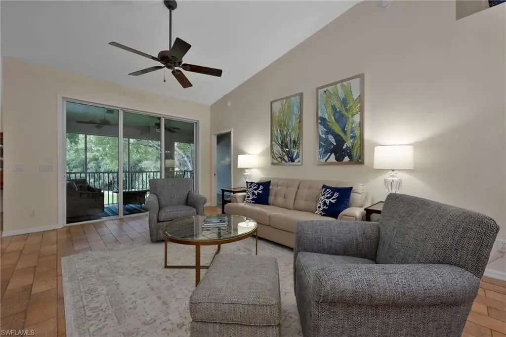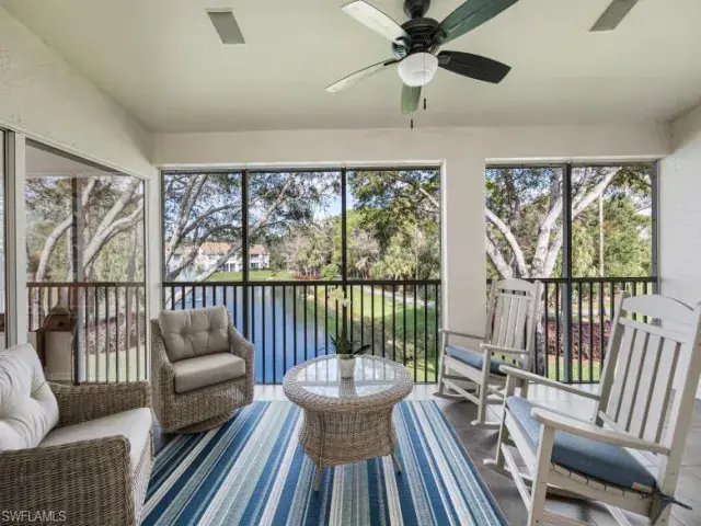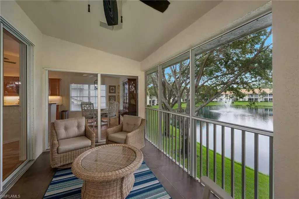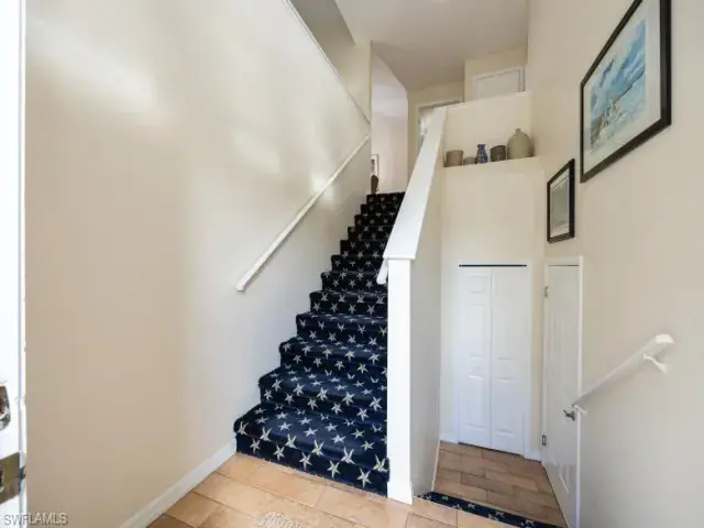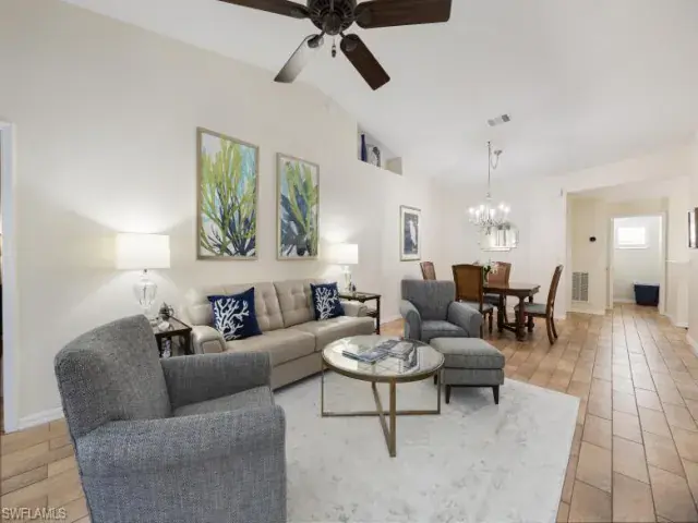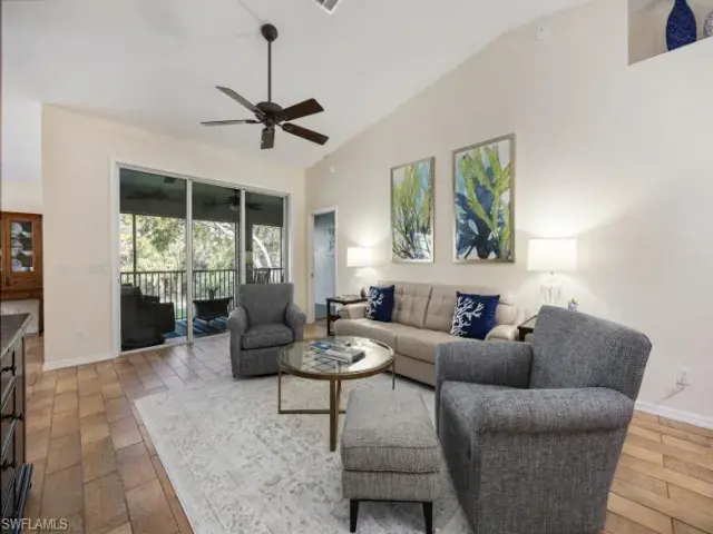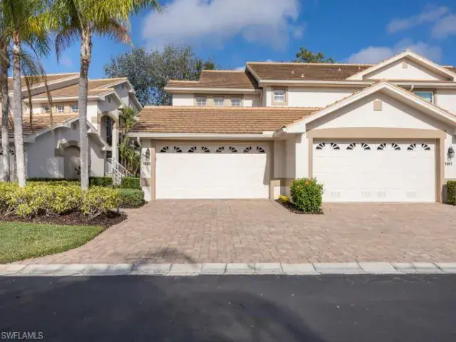 BACK ON THE MARKET with PRICE IMPROVEMENT in North Naples Prestigious Golf Course Community of The Strand. Second Floor Split Two Bedroom, Two Bath and Den with Attached Two Car Garage Coach Home offering 1793 Square Feet under air that is Move in Ready. Neat and clean throughout. Tile and hardwood flooring with No Carpet in Living Areas. Northwesterly views from Lanai offering Nice Sunsets, Peaceful Lake, Fountain, and Golf Course Views. Vaulted Ceilings, Neutral Colors, Updated Master Bathroom, Newer HVAC, and Hot Water (2019), and Roof is 5-1/2 Years Young. Great Location with Shopping, Restaurants, Hospital, and I-75 close by. Short Drive to Beaches and RSW Airport. Cypress Cove at Pelican Strand is quaint community with 23 Carriage Homes consisting of 4 units in each building, superbly maintained with Sound Financials. Social Membership is required for all members who do not hold a higher category of membership at The Strand and is included in the Annual Mandatory Club Fee. The Social category allows our members access to all of our amenities, except golf. The Club at The Strand offers a few types of memberships for those seeking to play Golf on the well maintained 3 Nine Hole Championship Golf Courses. An Active Country Club Lifestyle with New Fitness Center, Tennis, Pickleball, Bocce, Croquet, Restaurants and More. Come enjoy the Lifestyle at The Strand, you will not be disappointed!