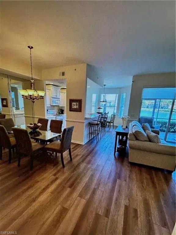 Lovely first floor Veranda located in popular Cypress Woods Golf and Country Club. One car garage! Spectacular views of the lake and 16th tee box from the open concept of the living room and dining area. Unit is updated! Kitchen area with breakfast nook. Living room with glass sliding doors to the back lanai. Brand new HVAC unit and newer hot water heater. Luxury vinyl plank flooring in all living areas/bedrooms. Unit has been newly painted! Custom closet in master bedroom. Being sold partially furnished.