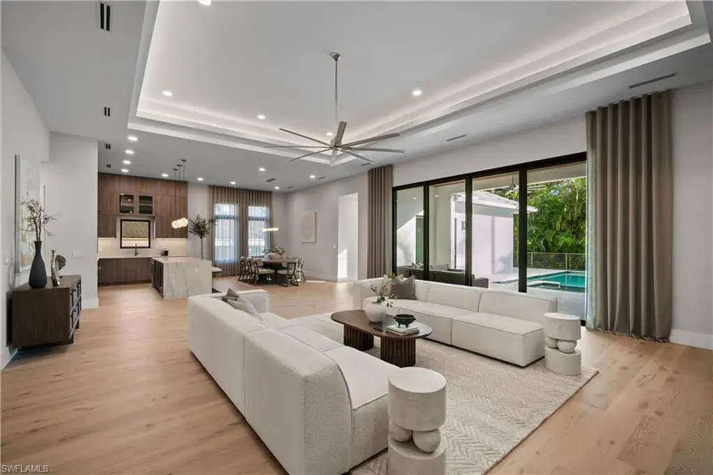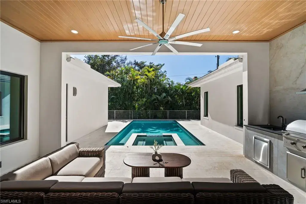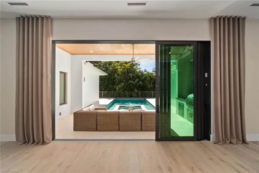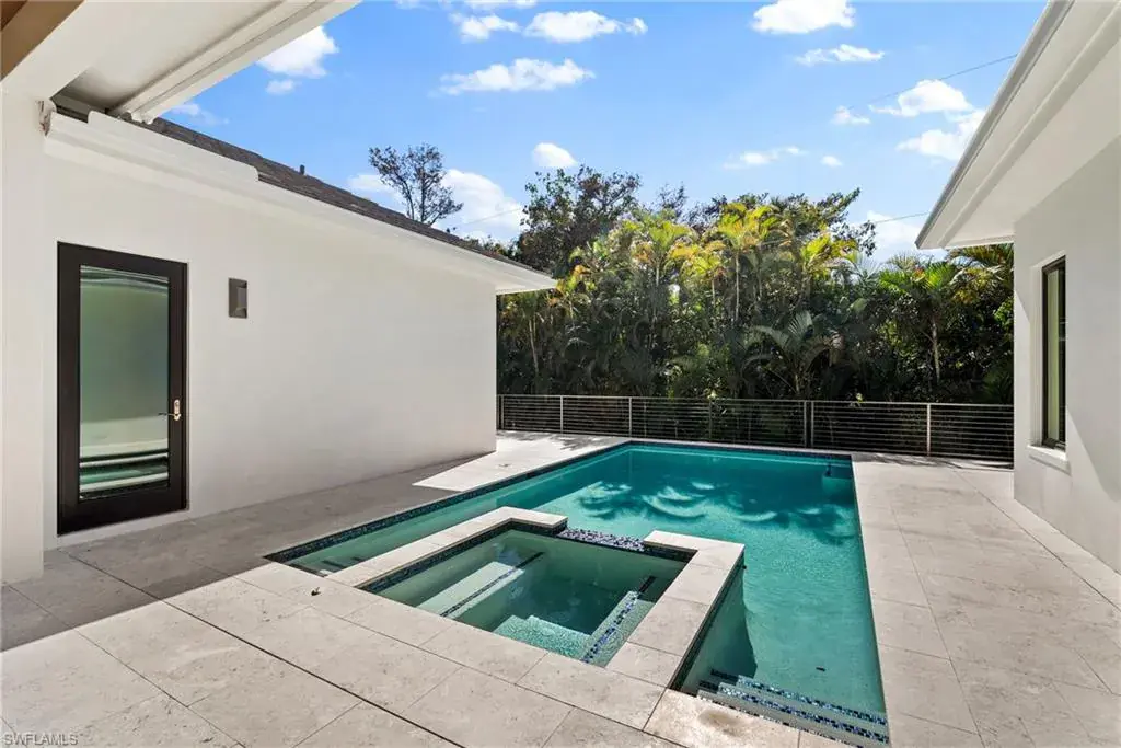 Outside in the back of the home you are being invited to experience an extremely private court yard swimming pool and jacuzzi with led lights and jets, as well as the temperate control heater. Home is fully equipped with top of the line appliances, that are paneled in and are invisible, that give a perfect flow through out the entire dinning and entertainment area. French oak engineered wood floors on the interior of the home, with an exception of the bathrooms/wet areas, that has custom, high end tile flooring. Property has hurricane proof windows and doors. Earthy and spa feel like home offers a walk-in pantry and a 3 car garage with non slippery epoxy floors. This one of a kind property is located within walking (15-20 minutes), biking or golf cart driving distance to white sandy beaches, as well as, other key destinations in Naples, Florida.