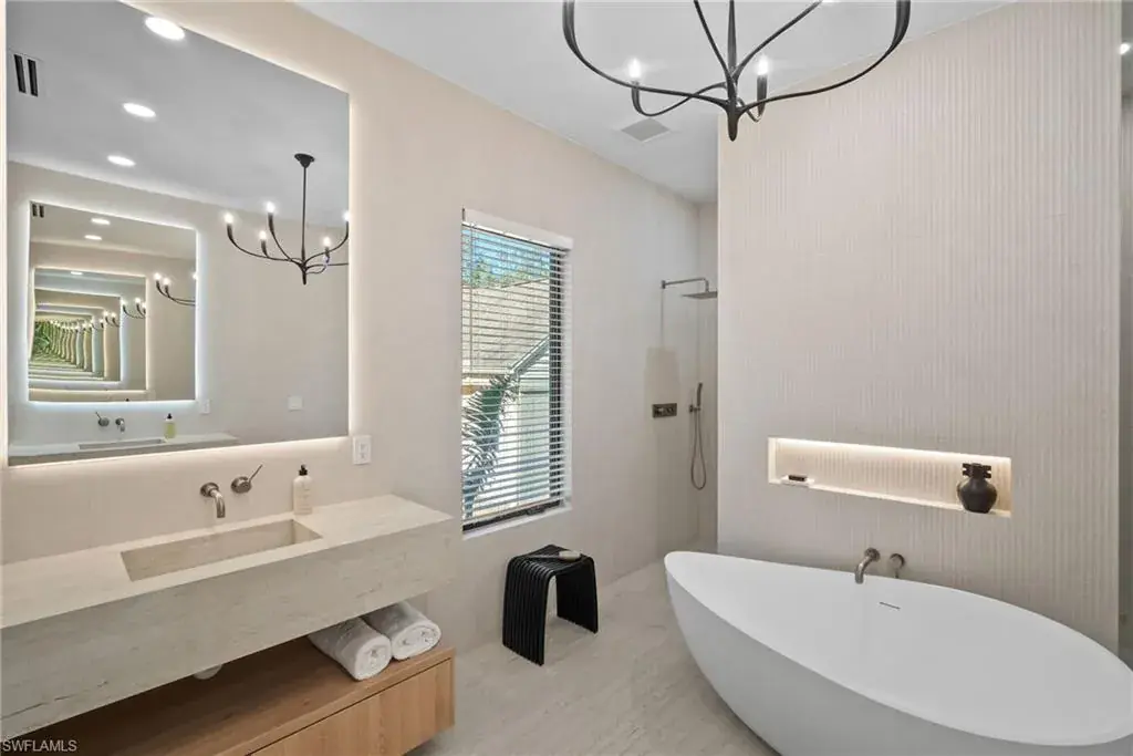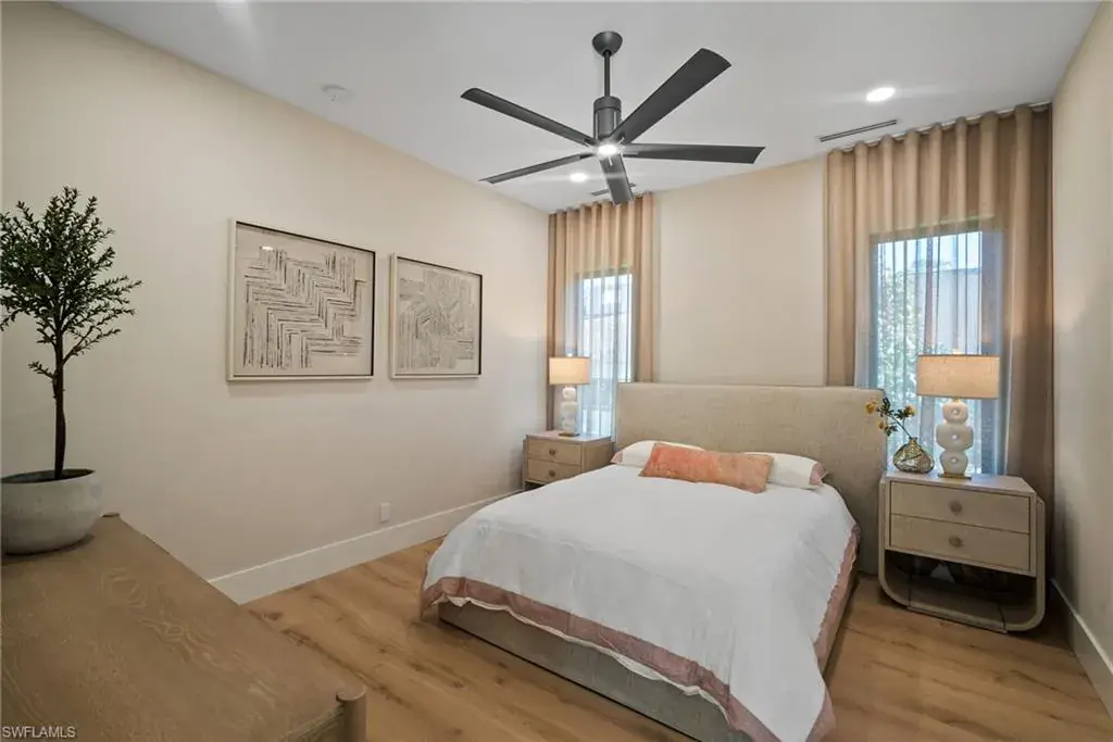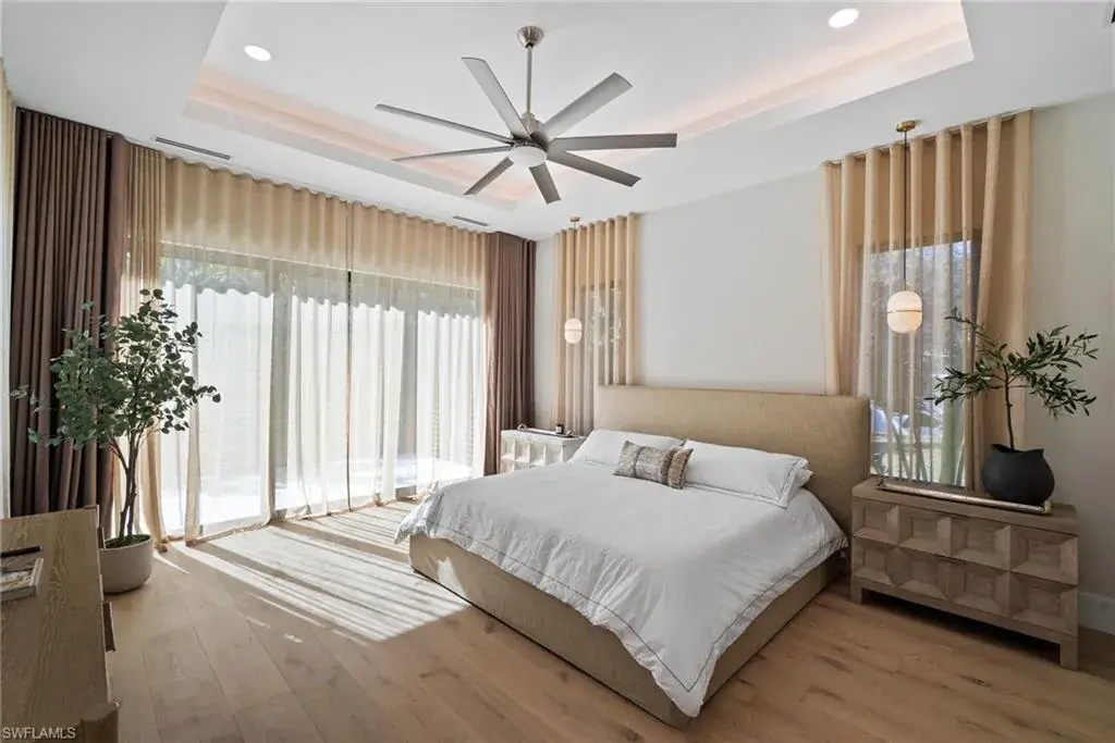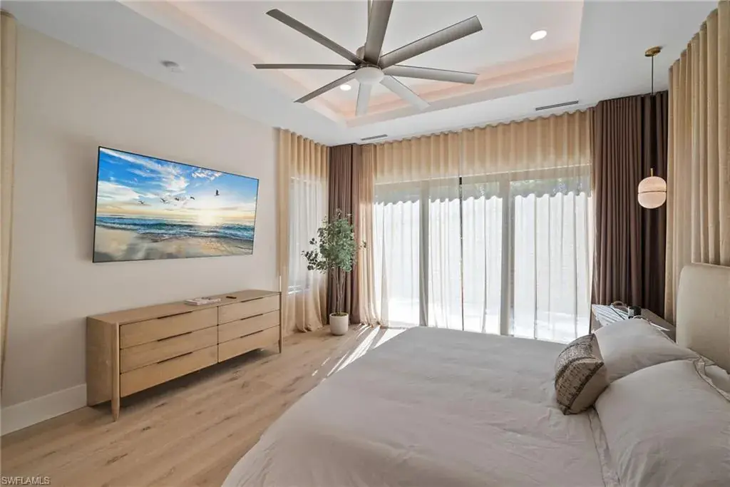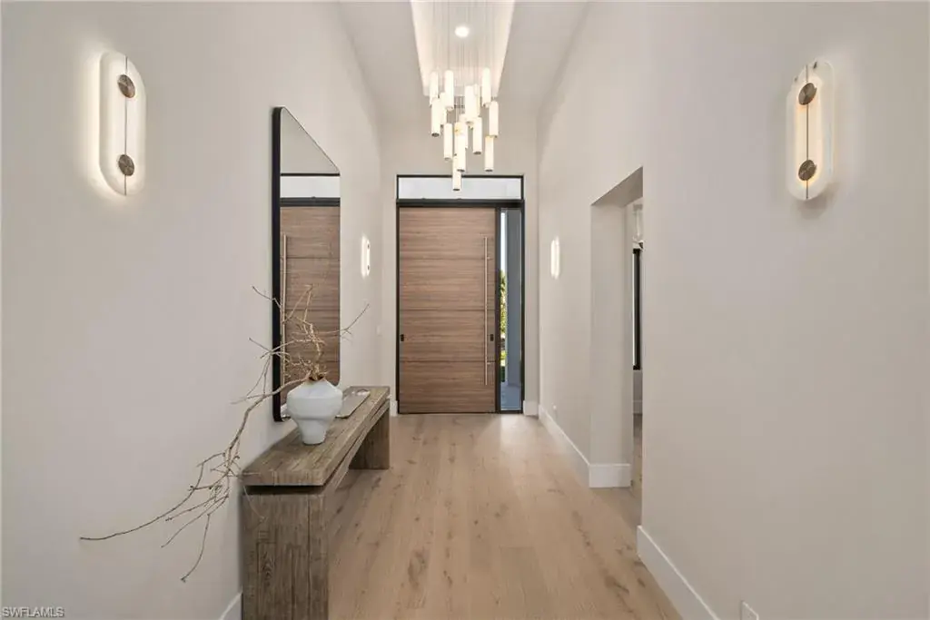 Outside in the back of the home you are being invited to experience an extremely private court yard swimming pool and jacuzzi with led lights and jets, as well as the temperate control heater. Home is fully equipped with top of the line appliances, that are paneled in and are invisible, that give a perfect flow through out the entire dinning and entertainment area. French oak engineered wood floors on the interior of the home, with an exception of the bathrooms/wet areas, that has custom, high end tile flooring. Property has hurricane proof windows and doors. Earthy and spa feel like home offers a walk-in pantry and a 3 car garage with non slippery epoxy floors. This one of a kind property is located within walking (15-20 minutes), biking or golf cart driving distance to white sandy beaches, as well as, other key destinations in Naples, Florida.