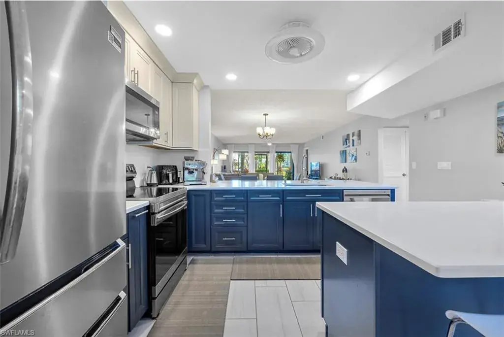 UNBELIEVABLE!!! Best condo value in NAPLES! Beautiful 1st floor condo completely remodeled!. Featuring open concept kitchen with new cabinets, island, pantry and new stainless steel appliances. New tile floors. 2 spacious bedrooms, newly updated baths, new HVAC, separate laundry room. Lanai with views of golf course, lake and pretty landscaped wooded area. Building updated with hurricane impact resistant windows and slider. Community offers a park like setting with 2 clubhouses, 2 pools, tennis courts, shuffleboard courts, picnic area. Great commuter location with access to I75… minutes to famous Downtown 5th AVE and beautiful white sandy beaches. Paradise awaits you!