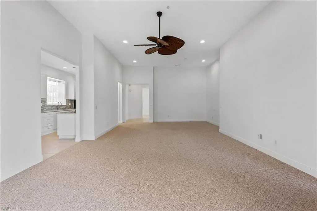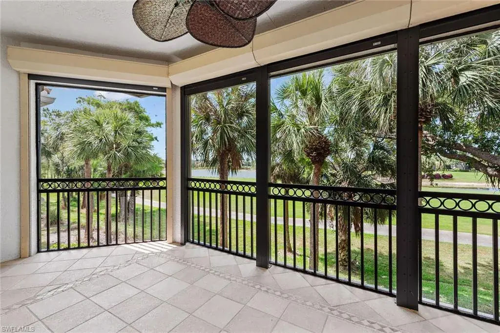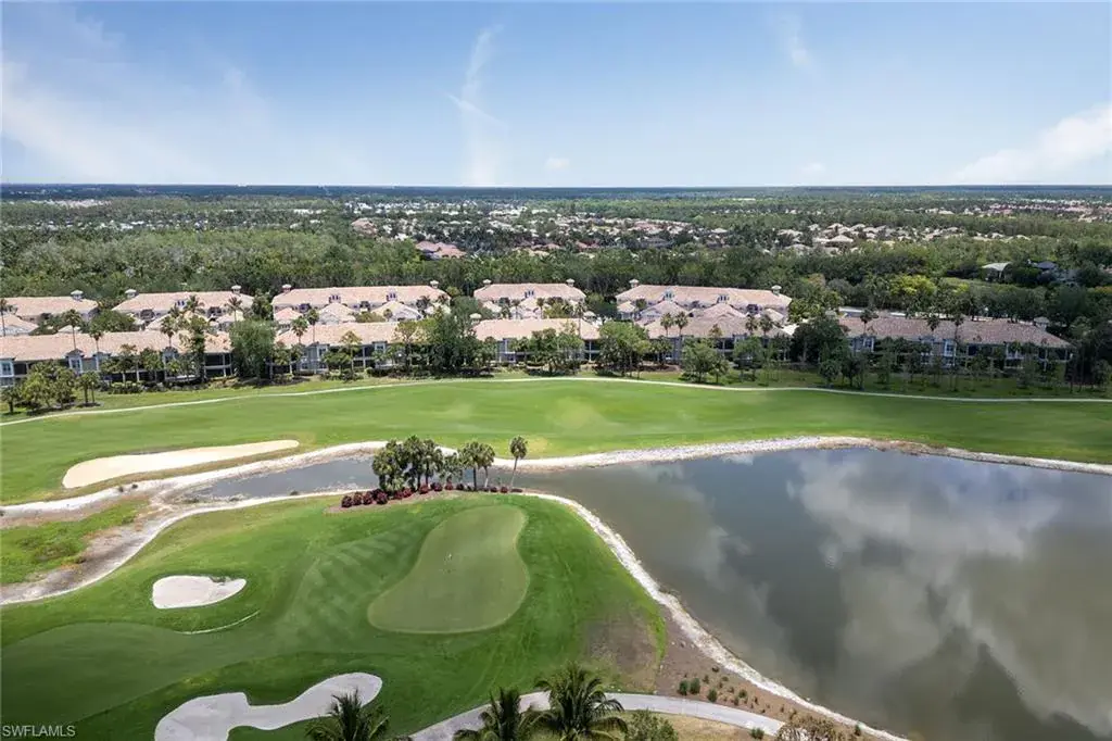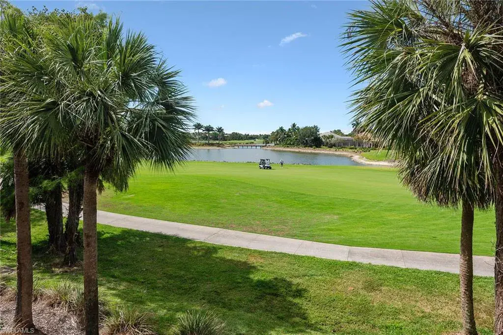 Are you looking for sun-filled southern exposure and stunning Rookery golf course and water views framed by swaying palms? This spacious second-floor end-unit coach home with a two-car garage in the desirable Deer Crossing village of Fiddler’s Creek offers both. Enjoy tranquil outdoor living from the covered screened lanai with tile flooring, electric storm shutters, and a peaceful backdrop of lush tropical landscaping overlooking the water and golf course, an ideal setting for relaxing or entertaining. Inside, the residence offers three bedrooms, a den, two baths and a two-car garage. Finishes include diagonal tile flooring and plush carpeting, recessed lighting, white plantation shutters and tropical-inspired Tommy Bahama-style ceiling fans. The kitchen is stylish and functional, featuring granite countertops, a mosaic glass tile backsplash, white shaker-style cabinetry and a window above the sink for natural light. Stainless steel LG appliances include a French-door refrigerator with an icemaker, range, microwave and dishwasher. The adjacent dining area and living room offer access to the lanai, blending indoor and outdoor living. The owner’s suite features a tray ceiling, generous closet space, and a spacious en-suite bath with dual-sink vanity, full-width mirror and a walk-in shower. Two guest bedrooms are near a full bath with a shower-tub combo, ideal for hosting visitors. The den, which includes pocket doors to the hallway and kitchen, offers flexible use as a study or home office. A dedicated laundry room includes overhead shelving, a utility sink, a washer and a dryer. The two-car garage features built-in shelving and a window for natural light. Notable updates include a new roof (2020) and a newer HVAC system, providing added comfort and peace of mind. Deer Crossing offers gorgeous landscaping, a beautiful village pool and ample guest parking spaces. In the award-winning, gated community of Fiddler’s Creek, residents enjoy a full activity and event calendar with access to resort-style amenities including a luxurious clubhouse, spa services, active tennis and pickleball programs with leagues and clinics, bocce, fine and casual dining, and a state-of-the-art fitness center with trainers and classes. Optional memberships to the newly renovated golf course with immediate membership available and a spectacular new private golf clubhouse. Beach club and marina memberships are also available. Miles of sidewalks perfect for walking, jogging and bicycling, surrounded by stunning flowers, trees, lakes and greenery. All this is just minutes from downtown Naples and Marco Island, offering convenient access to beaches, yacht clubs, grocery shopping, boutiques, parks, restaurants, the executive airport and all popular Southwest Florida attractions. This is your opportunity to live an exceptional lifestyle. CDD bond paid in full.