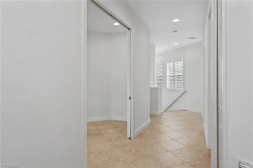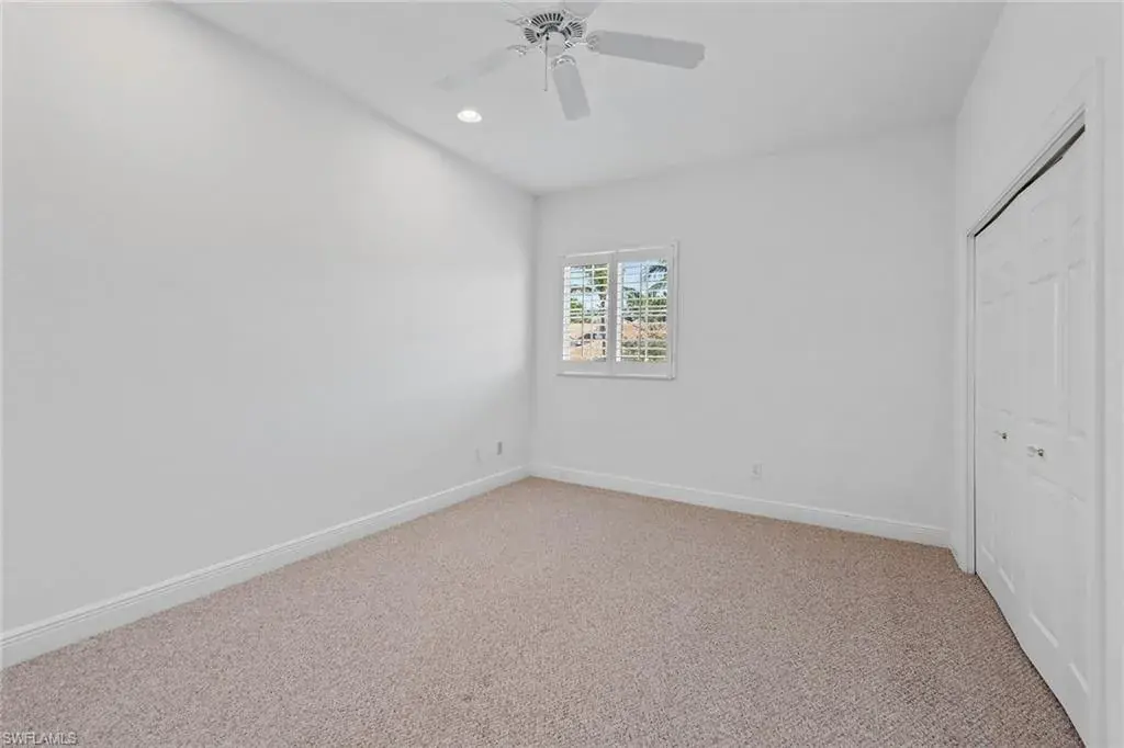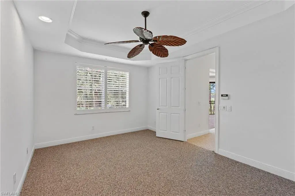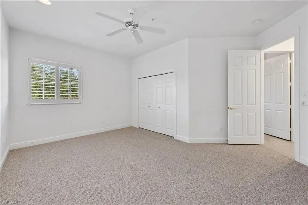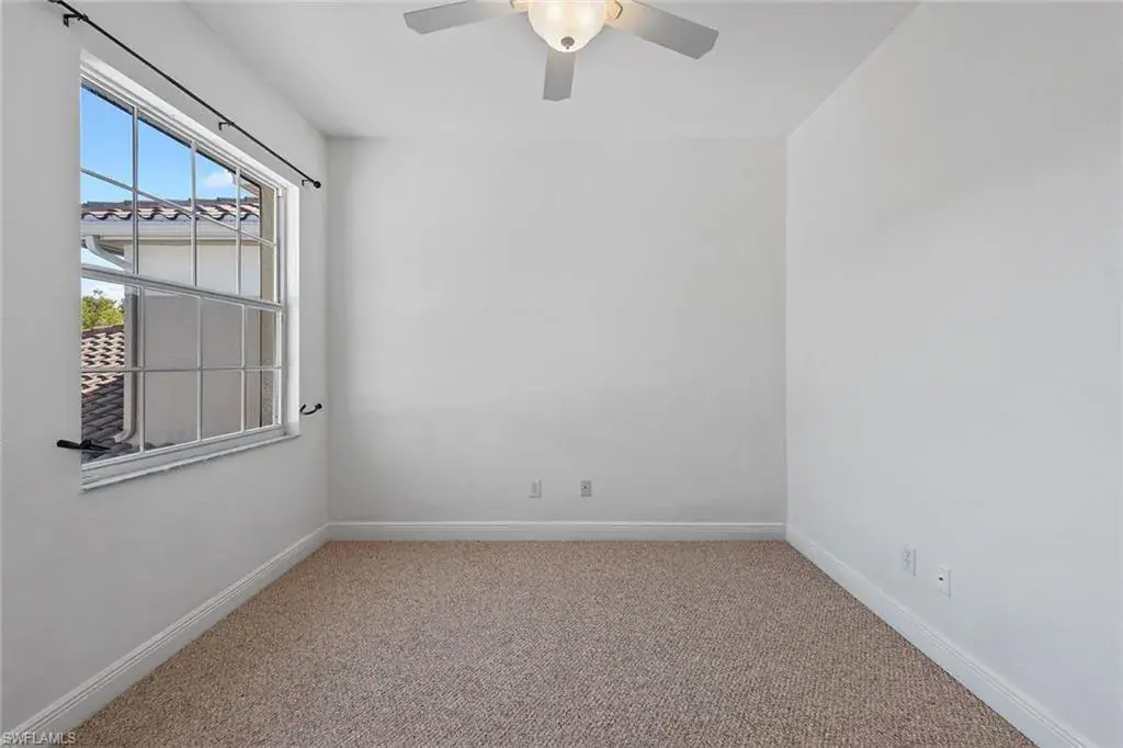 Are you looking for sun-filled southern exposure and stunning Rookery golf course and water views framed by swaying palms? This spacious second-floor end-unit coach home with a two-car garage in the desirable Deer Crossing village of Fiddler’s Creek offers both. Enjoy tranquil outdoor living from the covered screened lanai with tile flooring, electric storm shutters, and a peaceful backdrop of lush tropical landscaping overlooking the water and golf course, an ideal setting for relaxing or entertaining. Inside, the residence offers three bedrooms, a den, two baths and a two-car garage. Finishes include diagonal tile flooring and plush carpeting, recessed lighting, white plantation shutters and tropical-inspired Tommy Bahama-style ceiling fans. The kitchen is stylish and functional, featuring granite countertops, a mosaic glass tile backsplash, white shaker-style cabinetry and a window above the sink for natural light. Stainless steel LG appliances include a French-door refrigerator with an icemaker, range, microwave and dishwasher. The adjacent dining area and living room offer access to the lanai, blending indoor and outdoor living. The owner’s suite features a tray ceiling, generous closet space, and a spacious en-suite bath with dual-sink vanity, full-width mirror and a walk-in shower. Two guest bedrooms are near a full bath with a shower-tub combo, ideal for hosting visitors. The den, which includes pocket doors to the hallway and kitchen, offers flexible use as a study or home office. A dedicated laundry room includes overhead shelving, a utility sink, a washer and a dryer. The two-car garage features built-in shelving and a window for natural light. Notable updates include a new roof (2020) and a newer HVAC system, providing added comfort and peace of mind. Deer Crossing offers gorgeous landscaping, a beautiful village pool and ample guest parking spaces. In the award-winning, gated community of Fiddler’s Creek, residents enjoy a full activity and event calendar with access to resort-style amenities including a luxurious clubhouse, spa services, active tennis and pickleball programs with leagues and clinics, bocce, fine and casual dining, and a state-of-the-art fitness center with trainers and classes. Optional memberships to the newly renovated golf course with immediate membership available and a spectacular new private golf clubhouse. Beach club and marina memberships are also available. Miles of sidewalks perfect for walking, jogging and bicycling, surrounded by stunning flowers, trees, lakes and greenery. All this is just minutes from downtown Naples and Marco Island, offering convenient access to beaches, yacht clubs, grocery shopping, boutiques, parks, restaurants, the executive airport and all popular Southwest Florida attractions. This is your opportunity to live an exceptional lifestyle. CDD bond paid in full.