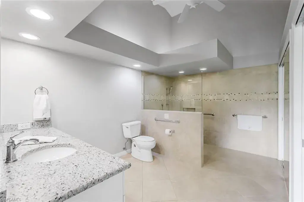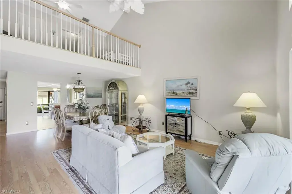 This 2-bedroom, 2-bathroom villa is just minutes from downtown Naples, the beach, and fine dining. It also includes a spacious loft that can be used as a third bedroom or home office. The kitchen has granite countertops, a tiled backsplash, newer appliances, and a large pantry. An extended counter and breakfast nook make it great for everyday use or entertaining.The main living area features wood laminate flooring and high ceilings, giving it an open, bright feel. From the enclosed, air-conditioned lanai, you’ll have peaceful views of the 7th green on the golf course—a great spot to relax. The primary bathroom includes a wheelchair-accessible shower and a 12-foot mirrored closet. Additional updates include a new roof in 2018 and a modern AC system installed in 2022. This home has been well cared for and is move-in ready.