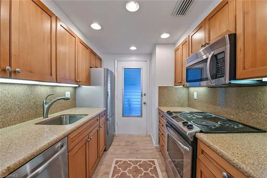 Welcome to this two-bedroom, two-bath condominium in the sought-after neighborhood of Coquina Sands. This unit features wood-like tile flooring throughout, plantation shutters, recessed lighting, granite countertops in the kitchen and baths, and more. Impact sliders and windows offer extra protection. For added convenience, an assigned parking space comes with this unit. Enjoy a view of the gulf from your west-facing open-air balcony and watch the bustle of Gulf Shore Boulevard North. Owners of Del Mar Club enjoy a beautifully landscaped pool area, tiki cabana, grilling area and social room. Directly across the street from Lowdermilk Beach and Park you are just a short distance from beach access. Lowdermilk offers volleyball courts, a concession stand, outdoor showers and a picnic area. After spending the day soaking up the sun, it is a short drive to world-renowned shopping and dining at 5th Avenue South and 3rd Street South.