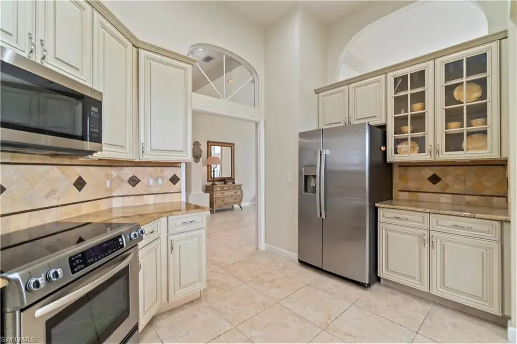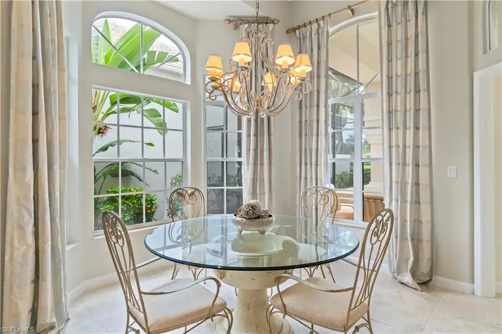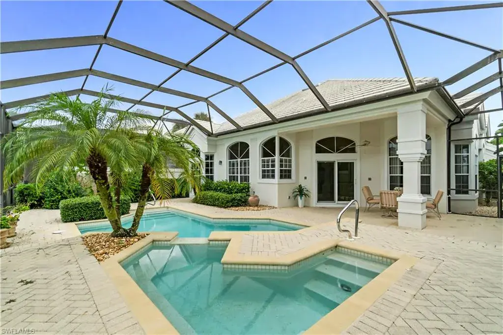 Beautifully maintained home with spectacular golf course & water views offered in North Naples’ coveted “Audubon Golf & Country Club!” Enjoy highly sought-after Southwest exposure—perfect for soaking in breathtaking sunsets. This light and bright home has soaring ceilings, wood and tile flooring, a convenient wet bar. The expansive outdoor living area is an entertainer’s dream, featuring a pool and spa, generous lounging space, and uninterrupted views of the lush golf course and Lake. Inside, the spacious kitchen offers granite countertops, stainless steel appliances, and a convenient breakfast bar for casual dining. Located in the Devon Green subdivision, the HOA services include landscaping, front lawn water irrigation, house painting and biannual roof cleaning for effortless maintenance. “Audubon Country Club” is perfectly located 5-min from Mercato & SWFL’s world-class beaches, with gated/guarded entry, an 18-hole championship Golf Course, tennis, pickleball, Bayside boardwalk, fabulous fitness facilities, clubhouse with dining & 2nd spectacular poolside club/café.