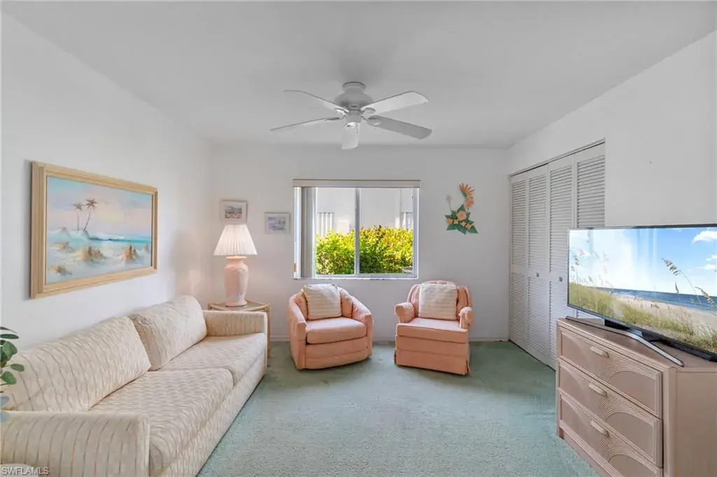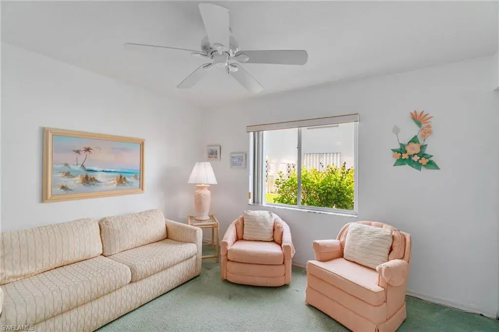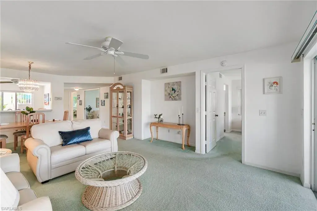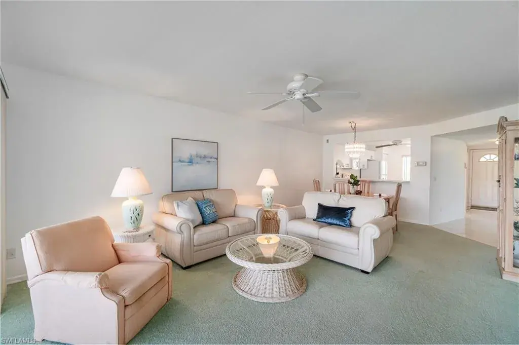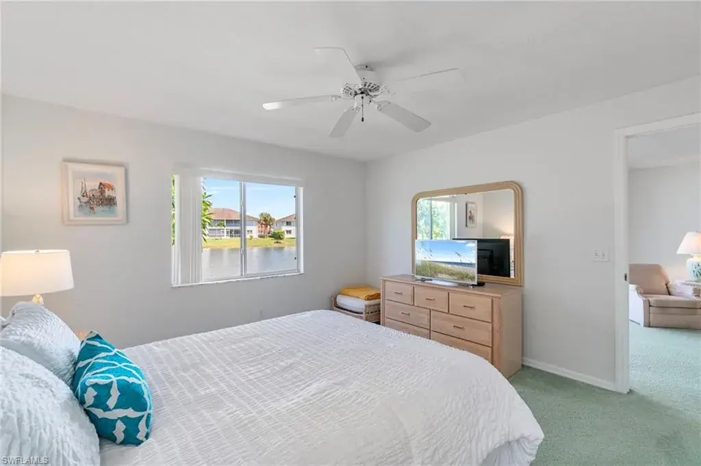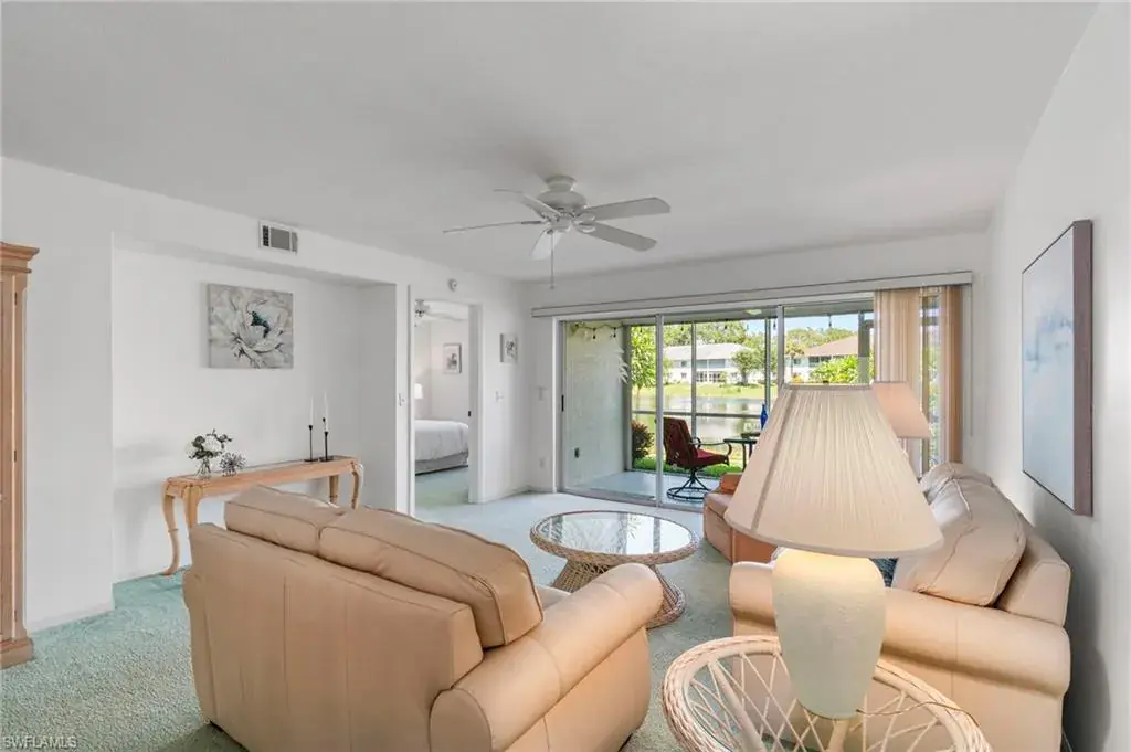 Light and bright FIRST-FLOOR CORNER END UNIT with 3 bedrooms, offering panoramic views of the sparkling lake and walking path in the sought-after Sapphire Lakes community. This condo is being sold furnished, making it move-in ready for season—perfect as a winter retreat or an excellent rental investment. Enjoy serene mornings on the screened lanai overlooking the lake, complete with electric hurricane shutters for peace of mind while away. Sapphire Lakes is a vibrant, gated community featuring pickleball, bocce, tennis, picnic areas with grills, scenic walking trails, and four heated pools. Centrally located, just 5 miles to 5th Avenue dining, shopping, and Naples’ Gulf beaches. Schedule your showing today & grab this first-floor end unit before it’s gone!