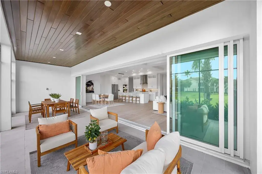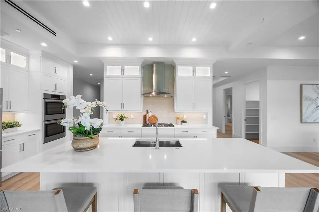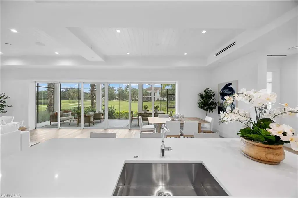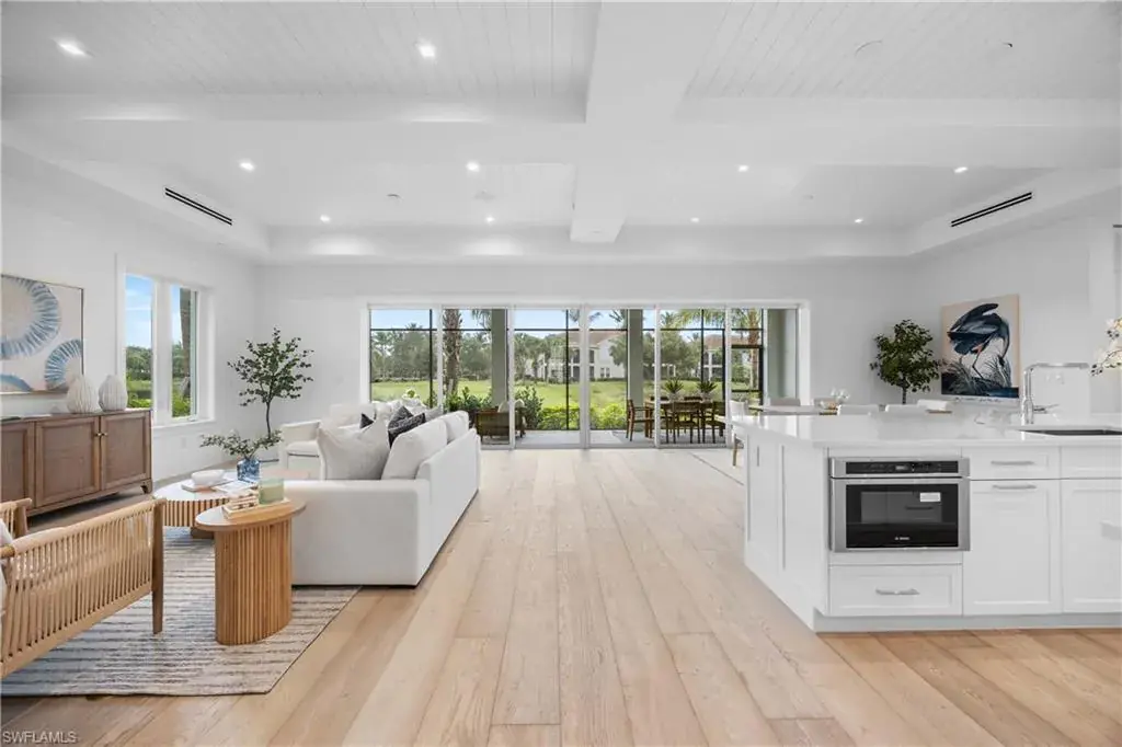 The most luxurious condominium complex in Fiddler’s Creek, this beautiful ground-floor unit 101 at Dorado is rarely available. This exceptional Gulf Bay neighborhood displays the highest quality in tropical construction and coastal architecture. Stunning designs from architect MHG create the latest breathtaking new environment. Ideally designed for casual luxury, this 2,600-square-foot home has an expansive great room with a large and efficient natural gas kitchen. The magnificent quartz-covered cabinetry leaves nothing to the imagination. The hand-poured glass tile backsplash provides a sophisticated feel that blends beautifully into the living and dining areas. Exceptional tri-level cabinetry with lights and glass doors contributes to the elegant feeling. Stunning Bosch stainless steel appliances are beautiful additions to dinner parties and family get togethers. The latest designs include a microwave drawer, double oven and multi-drawer refrigerator. Also included is the five-burner gas cooktop. The French, white oak flooring adds warmth and superior style throughout the home. The high ceilings and unique contemporary windows are particular to Dorado, with shiplap ceiling accents throughout. The primary bedroom suite is exceptional, with one of several shiplap ceilings and a remarkably large closet. The equally impressive laundry area is filled with built-in cabinetry, grey front-load appliances and extra storage. The oversized lanai brings the outdoors in to create an additional living area. The club, spa, and fitness center are the heart of Fiddler’s Creek social environment, with additional options from the private Tarpon Club membership and multiple private golfing options. Pickleball, tennis and miles of paths for recreation and bicycles are a part of this wonderful community. The stunning physical environment and proximity to Marco Island and Old Naples make Fiddler’s one of the most desirable gated communities.