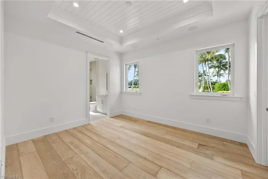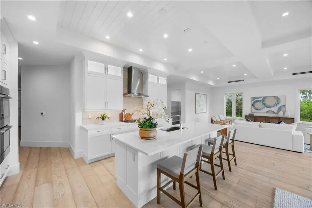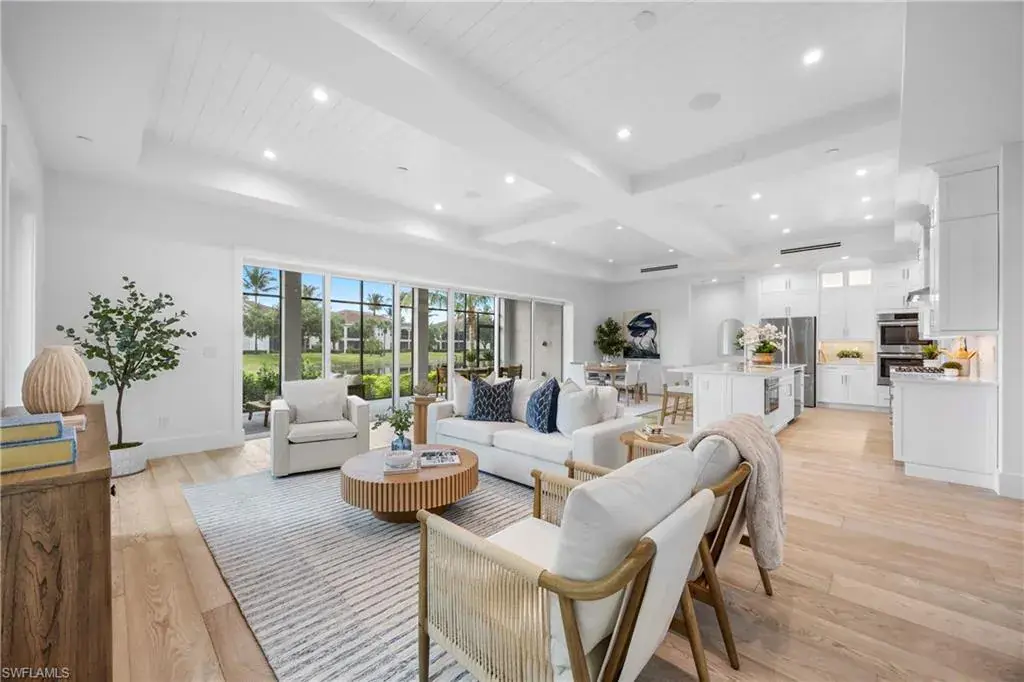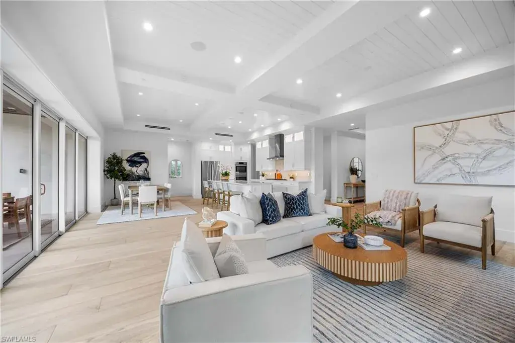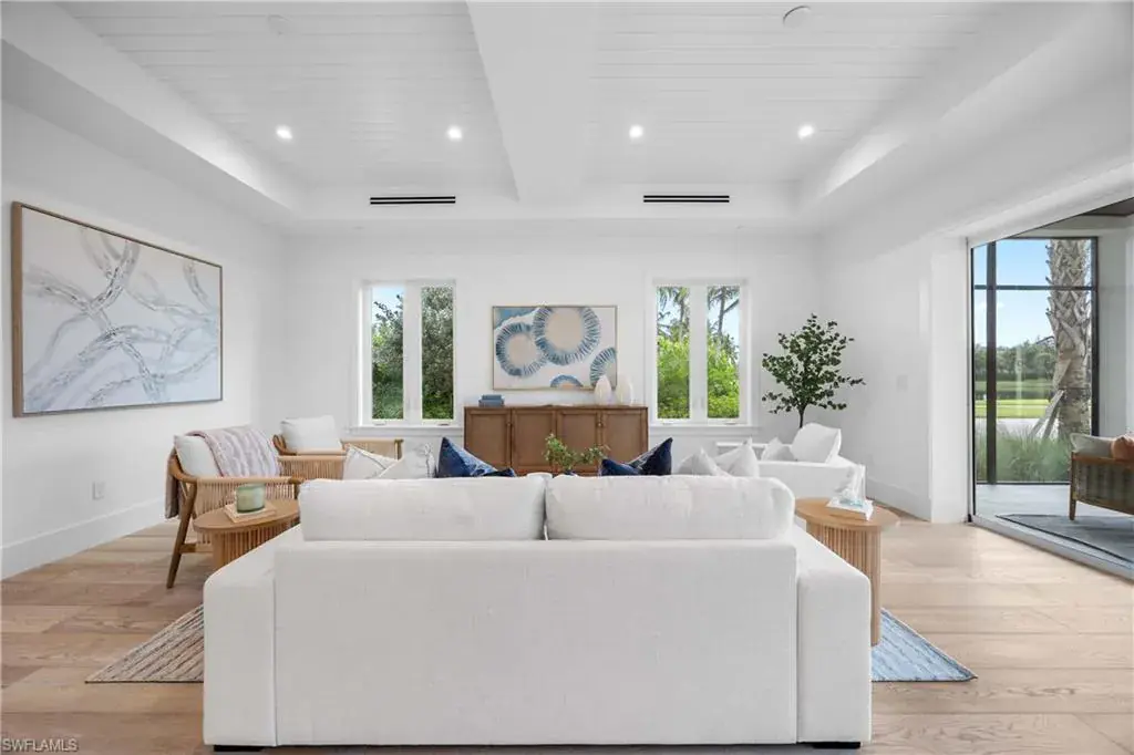 The most luxurious condominium complex in Fiddler’s Creek, this beautiful ground-floor unit 101 at Dorado is rarely available. This exceptional Gulf Bay neighborhood displays the highest quality in tropical construction and coastal architecture. Stunning designs from architect MHG create the latest breathtaking new environment. Ideally designed for casual luxury, this 2,600-square-foot home has an expansive great room with a large and efficient natural gas kitchen. The magnificent quartz-covered cabinetry leaves nothing to the imagination. The hand-poured glass tile backsplash provides a sophisticated feel that blends beautifully into the living and dining areas. Exceptional tri-level cabinetry with lights and glass doors contributes to the elegant feeling. Stunning Bosch stainless steel appliances are beautiful additions to dinner parties and family get togethers. The latest designs include a microwave drawer, double oven and multi-drawer refrigerator. Also included is the five-burner gas cooktop. The French, white oak flooring adds warmth and superior style throughout the home. The high ceilings and unique contemporary windows are particular to Dorado, with shiplap ceiling accents throughout. The primary bedroom suite is exceptional, with one of several shiplap ceilings and a remarkably large closet. The equally impressive laundry area is filled with built-in cabinetry, grey front-load appliances and extra storage. The oversized lanai brings the outdoors in to create an additional living area. The club, spa, and fitness center are the heart of Fiddler’s Creek social environment, with additional options from the private Tarpon Club membership and multiple private golfing options. Pickleball, tennis and miles of paths for recreation and bicycles are a part of this wonderful community. The stunning physical environment and proximity to Marco Island and Old Naples make Fiddler’s one of the most desirable gated communities.