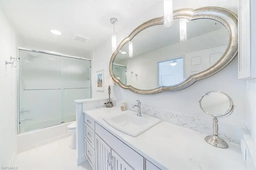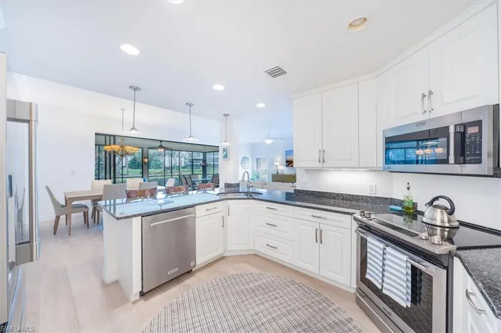 Welcome to your dream retreat in Eagle Creek Golf and Country Club, this is a fully remodeled, FURNISHED TURNKEY 3-bedroom, 3-bath “Royal Tern” condo that lives like a single-family home! This stunning residence offers luxury, comfort, and golf access in one of Naples’ most vibrant and intimate communities. Completely refreshed with all-new bathrooms and a Designer kitchen featuring: Light white wood cabinetry, Granite countertops, Stainless steel appliances AND a unique coffee pantry for your morning ritual. Your new home would have Luxury Vinyl plank flooring, plantation shutters, and tasteful neutral furnishings throughout. Add the edition of an Expansive 16’ x 42’ Florida Lanai Room with hurricane-impact sliders overlooking the 4th fairway — perfect for sunrise coffee or sunset cocktails- Lives like a home, feels like a resort. Lifestyle Amenities: Just steps from the Crystal Lake Café Tennis/pickleball & Fitness Complex, featuring:- State-of-the-art fitness center- Resort-style pool & spa- Sports bar and grill, Tennis and PICKEBALL courts and with social events galore.