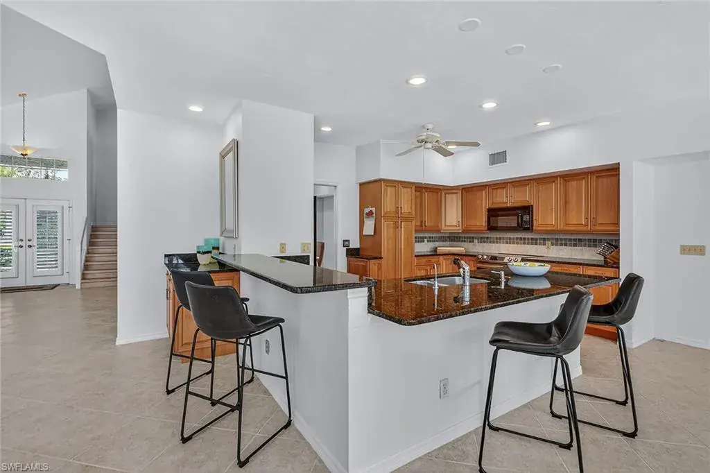 Golf membership available! Positioned on a picturesque corner lot within the private gates of Eagle Creek Golf and Country Club, this spacious and turnkey furnished estate home invites a lifestyle of leisure and stands ready for your personalization. The bright and open floor plan creates an effortless flow between living, dining and kitchen spaces—designed for everyday enjoyment and entertaining. A large kitchen offers abundant cabinetry, ample counter space, and seamless integration with the home’s gathering areas. The first-floor primary suite provides a peaceful retreat with two walk-in closets and a generous bath featuring dual vanities, a soaking tub and a separate shower. Upstairs, two guest suites with private baths and a versatile loft offer comfort and privacy for family and friends. Outdoors, the inviting covered lanai extends to a large pool and spa framed by mature landscaping and serene water views—an ideal setting for sun-filled afternoons or evening gatherings under the stars. Recent updates bring added peace of mind, including a roof and air conditioning systems under six years old and a new water heater. A desired golf membership is available, offering immediate access to Eagle Creek’s championship course and vibrant social calendar. Eagle Creek Golf and Country Club is one of Naples intimate and established golf communities, limited to just 458 residences. The newly reimagined clubhouse offers fine and casual dining venues, a member bar, and social spaces for events and gatherings. The nearby Crystal Lake clubhouse features outdoor dining, a resort-style pool, a fitness center, and courts for tennis and pickleball—an unparalleled blend of recreation and relaxation.
