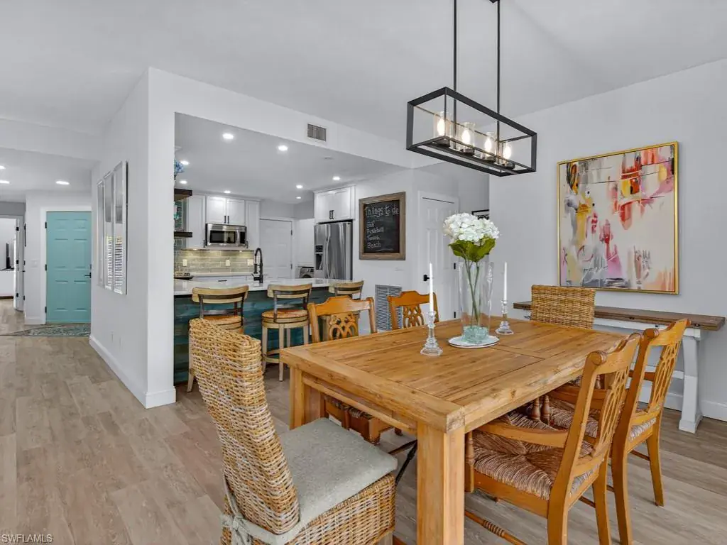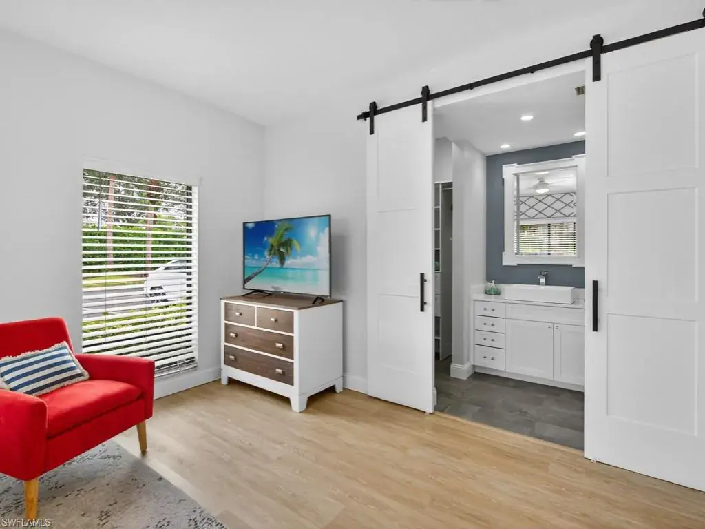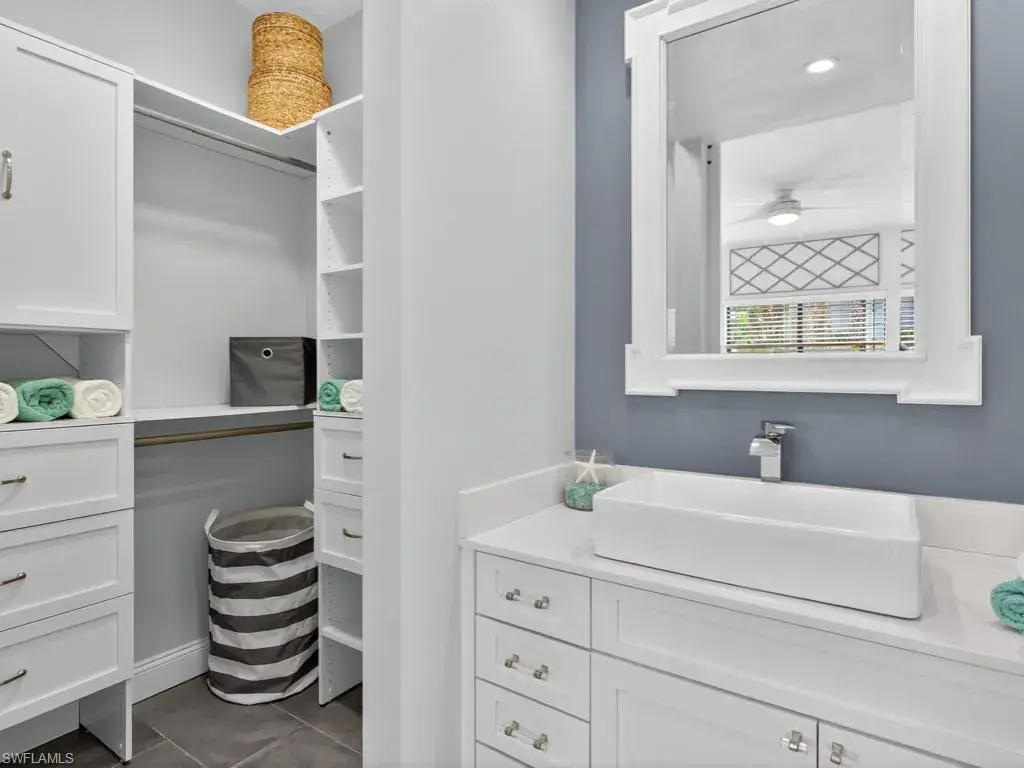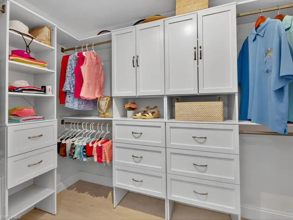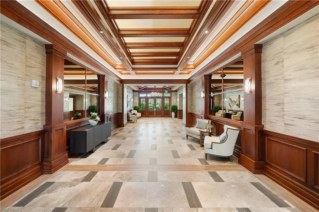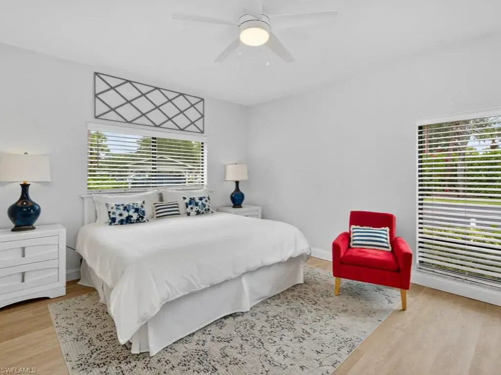 Experience the best of Naples living in this 3 BR, 3 BA (all en-suite) residence in Eagle Creek Golf & Country Club. Nearly 2,000 SF of open living blends effortless style with everyday comfort—lives like a single-family home. Thoughtfully renovated with quality finishes, stylish furnishings, and updated systems throughout. Primary suite and second master suite feature custom closets, designer walk-in showers showcasing custom glass and mosaic stone, DBL sinks, quartz tops. The third bedroom—a sun-filled guest suite—includes a gorgeous designer bathroom highlighting Merola porcelain floor tile and tub. A fabulous gourmet kitchen shines with quartz countertops, imported aqua tile backsplash, and stainless appliances, while a custom wet bar with Brazilian granite and dual-zone beverage fridge elevates entertaining. Step out to an expansive 500 sf screened lanai showcasing a 20-ft opening with brand-new, storm impact sliders (California-style), 30 x 30 Arctic-white porcelain tile, all-new screening—framing spectacular golf-course views of the coveted 4th hole. Additional highlights: newer A/C, designer lighting & hardware, abundant storage (separate outdoor storage), and covered parking. Enjoy resort-style amenities—NEW clubhouse for dining & entertainment, pickleball, tennis, bocce, pool, fitness center, and yoga studio—minutes to Naples beaches, Olde Naples, and Marco Island. Social or Golf Membership required.