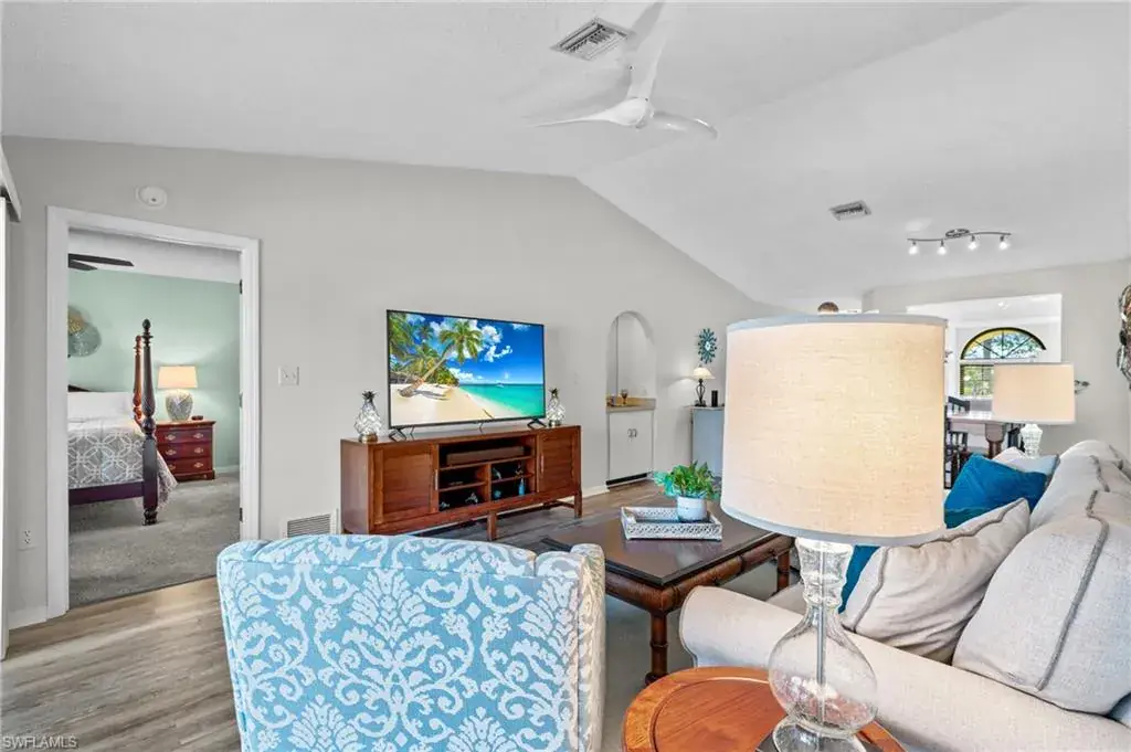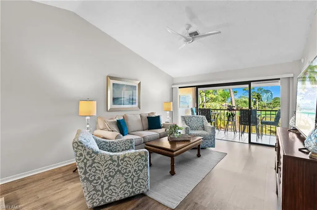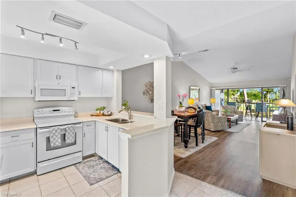 This tastefully updated 2-bedroom, 2-bath condo is located in the desirable Community of Lely and is being offered “Turnkey”. The spacious layout features cathedral ceilings, creating an open and airy ambiance filled with natural light. The kitchen has been beautifully updated with modern touches such as quartz and shaker style cabinetry providing both style and functionality. Flooring in main living area has been renovated w/warm neutral tones in low maintenance type material. Step out into the screened lanai offering an expansive and magnificent view of Royal Palm Golf Course and pool area! For added protection and peace of mind, the lanai has a newly installed STORM SMART SCREEN and the windows are all IMPACT GLASS. The laundry area is spacious enough for extra storage and in-unit full size washer and dryer allowing for everyday convenience. Condo is situated in a prime Naples location, offering easy access to everything the area has to offer. You’re just minutes from I-75, the US Open Pickleball Center, downtown 5th Avenue, and Naples magnificent beaches. Enjoy the vibrant downtown scene with its rich culture, diverse restaurants, nightlife, and lots of shopping. Residents can enjoy the beautifully maintained grounds and the community pool and spa that was updated in 2024. Whether you’re looking for a full-time residence, vacation getaway, or investment property, this is an exceptional opportunity to experience the Naples lifestyle.