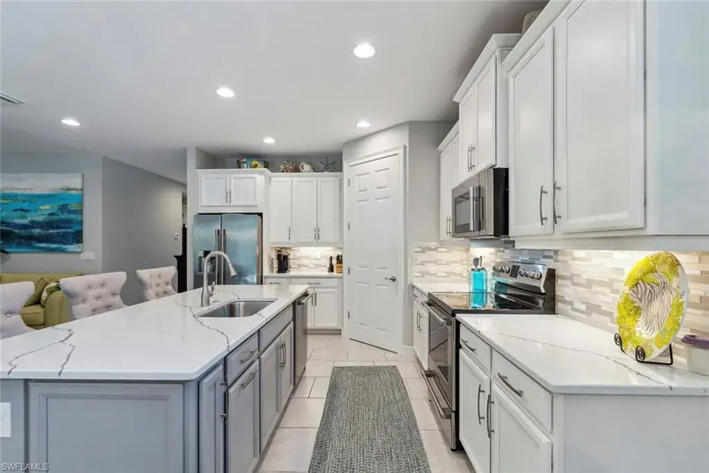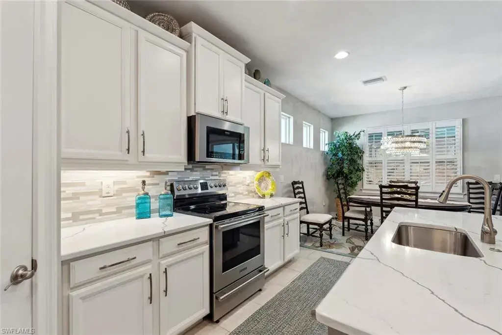 Welcome to this beautiful 4-bedroom, 2-bath pool home in the sought-after Egret’s Landing of Naples Reserve community. The builder’s glass front door opens to an inviting open floor plan with ceramic tile throughout, custom cabinetry in the laundry room, and high-end appliances in the kitchen. The gourmet kitchen showcases stunning quartz countertops, under-cabinet lighting, and a spacious layout perfect for entertaining. Convenient extra outlets in the bedrooms add versatility for home office setups.