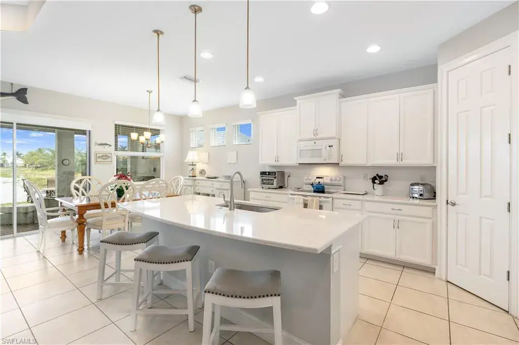 Lakefront Luxury Living with Breathtaking Long Lake Views Welcome to this rarely available, highly sought-after Ashbury floorplan, offering 4 spacious bedrooms, 3.5 baths, and a flex room, all situated on an OVERSIZED LOT with stunning, uninterrupted LONG LAKE VIEWS. This exceptional home, nestled on the water’s edge, is truly a rare find. With 2,431 sq. ft. of thoughtfully designed living space, this home features luxury upgrades throughout. The open-concept layout boasts upgraded cabinetry, pristine quartz countertops, and tile flooring throughout the main living areas, while all bedrooms are outfitted with stylish and durable luxury vinyl flooring. The home is prepped for a gas range, with a future gas line in place to suit your culinary needs. A 1000-GALLON PROPANE TANK and top-of-the-line GENERATOR offer peace of mind, ensuring you’re never without power. The extended lanai is an entertainer’s dream, with a pool bath for convenience and panoramic water views that stretch across the long lake. Imagine relaxing by the water or hosting gatherings with a built-in kitchen—already prepped with a gas rough-in. Inside, the master bath offers an expansive walk-in shower and premium tile upgrades, creating a true spa-like retreat. Community amenities include a guarded gate for added security, 22 scenic lakes, a boat ramp, and the Island Club featuring a fitness center and social spaces. Enjoy two Bocce ball courts, outdoor fitness stations, a beach volleyball court, and a Tiki bar & café with food and beverage service (no minimum spend). Relax at the resort-style pool with lap lanes and fire pit, or take advantage of access to electric boats, kayaks, tennis, and pickleball courts. The community also offers two large dog parks, miles of walking and biking paths, a children’s play area, and a basketball court. With onsite property management and a dedicated Lifestyle Director, there’s always a full calendar of fitness, social, and community events, and golf carts are allowed for easy access to everything the neighborhood has to offer. Don’t miss out on the chance to own this exceptional lakefront home with unparalleled views.