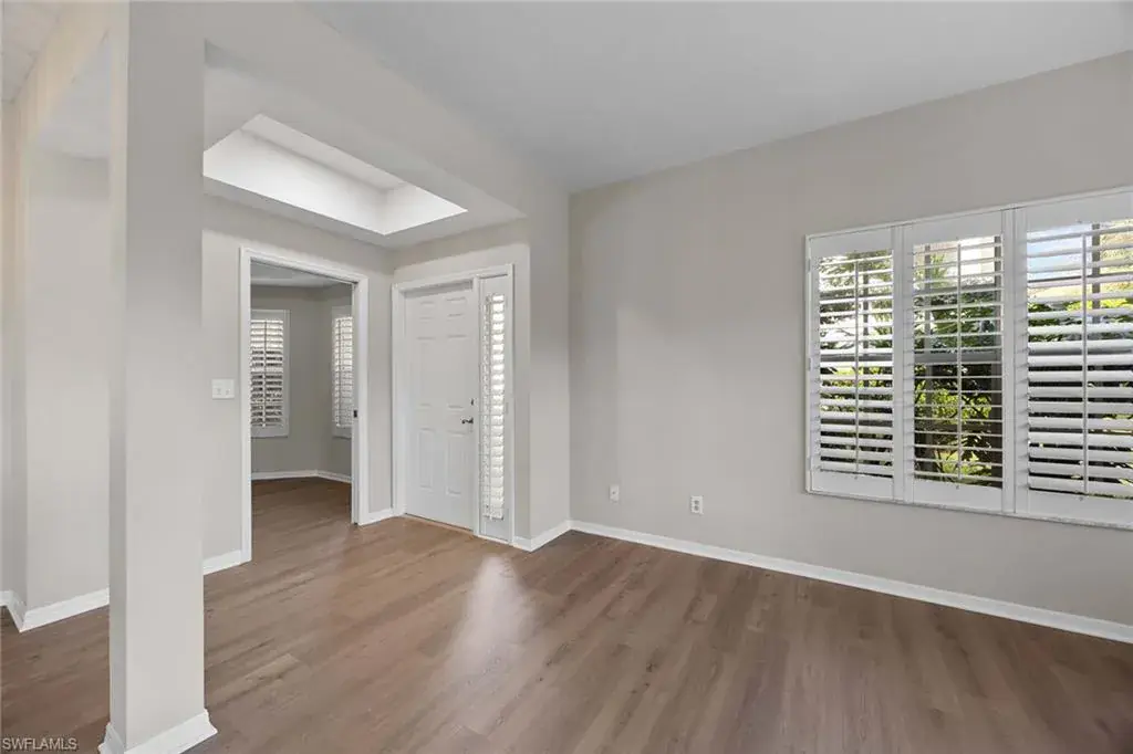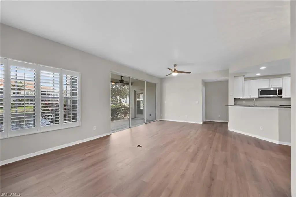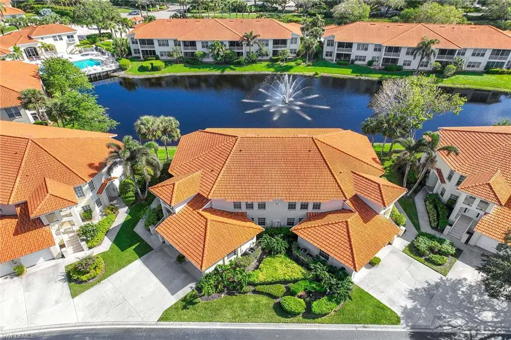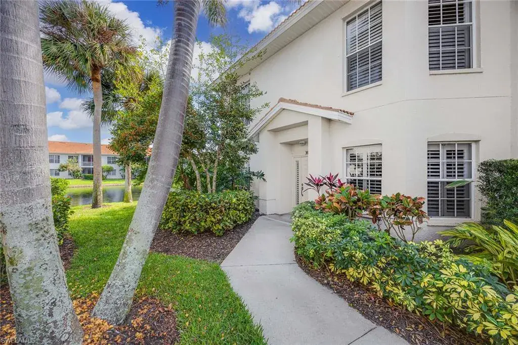 This charming first-floor coach home has a wonderful view of the fountain and lake. This three-bedroom, two-full-bath coach home offers a versatile floor plan with an open great room, dining area and updated kitchen, a large primary suite with dual walk-in closets, a spacious guest bedroom and a third bedroom that can easily be used as a den/office. Some of the many features include fresh paint, new flooring, new black stainless steel refrigerator, convection oven, and stove and microwave, granite countertops and plantation shutters. The home also includes a one-car attached garage. Pelican Marsh/Egrets Walk is just 1.5 miles from Vanderbilt beach and is a short distance from Mercato, Whole Foods, shopping, dining and entertainment. The Egrets Walk clubhouse is close by and has a swimming pool, exercise room and community room. Additionally, Pelican Marsh offers fantastic amenities, including a remodeled community center, pickleball, tennis, bocce, fitness center and recently opened courtside restaurant.