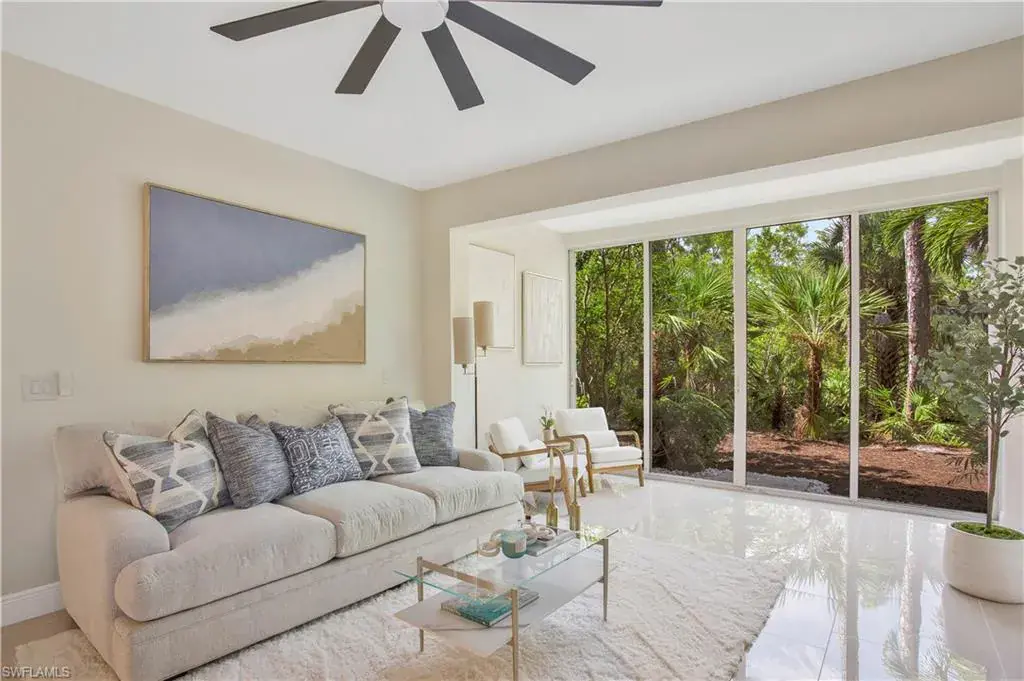 Elevate your lifestyle in Naples’ coveted Pelican Marsh community. Presenting a luxurious ground floor 2BD+den, 2BA condo w/ lush preserve views. This sought after floor plan is one of the largest ground floor units in Egrets Walk and rarely comes on the market due to its size, preferred enclosed lanai, tons of windows, large bedrooms w/ 1724 sq ft under air & total sq ft is 2014 w/attached 1 car garage. Tastefully renovated unit that features a brand new kitchen w/ shaker style white cabinets, halcyon quartz countertop, marble mosaic backsplash & brand new stainless steel appliances. Bianco porcelain 12×24 tiles throughout, brand new vanities w/ carrera marble tops, brand new fixtures, brand new hvac & hot water heater…the list goes on. Egrets Walk has its own two community pools (Not to Mention, this unit is perfectly situated between the two pools) or you can head over to the Main Community Center & enjoy its amenities. Amenities include tennis, pickleball, fitness center, tennis pro shop, spa services, bar & grill. If that is not enough then feel free to walk to infamous Mercato using the Private Entrance Gate only for Egrets Walk Residents. Golf membership optional.