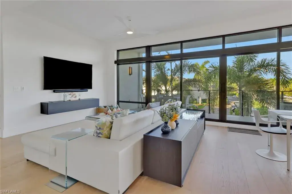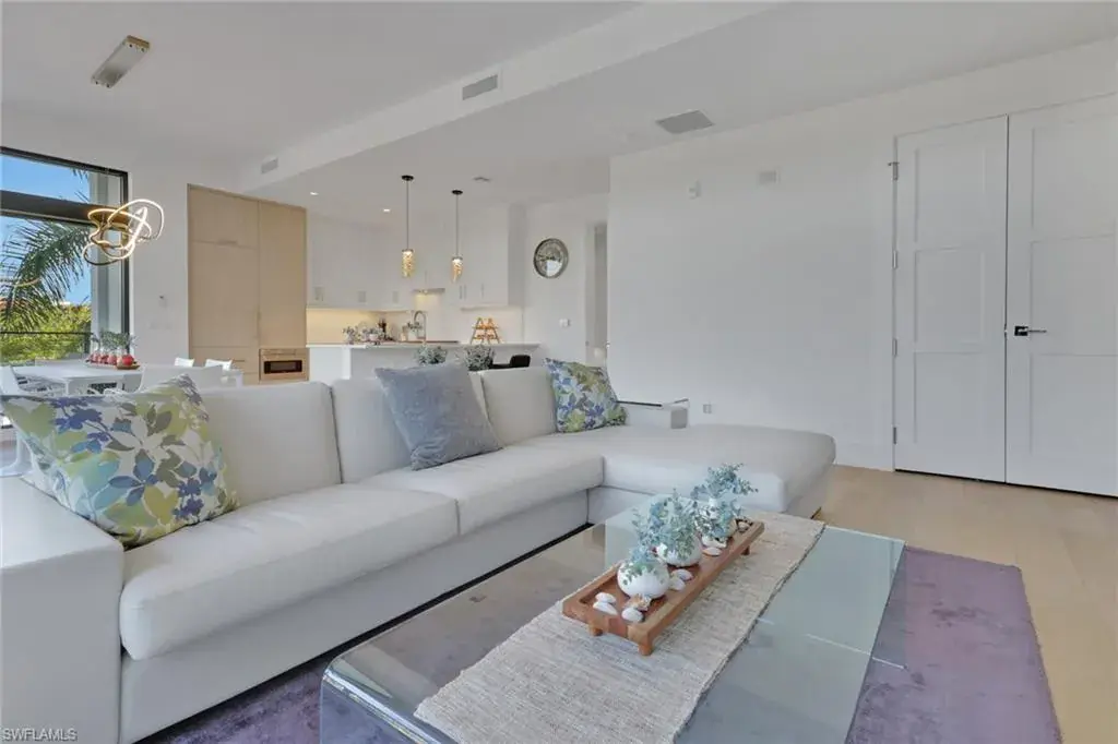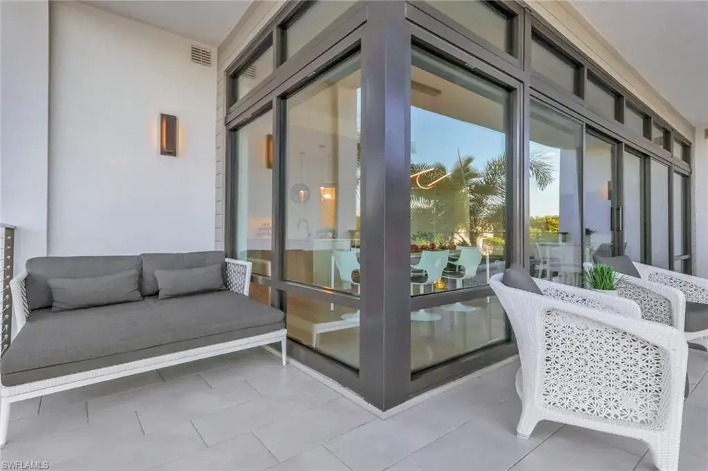 Experience refined Olde Naples living in Residence #205 at Eight Fifty Central, a boutique condominium community perfectly positioned in the heart of Old Naples. This corner residence features two bedrooms plus a den and two bathrooms, combining thoughtful design with contemporary style. Expansive floor-to-ceiling windows bathe the interiors in natural light, while the extended wraparound balcony—capturing both west and north exposures—creates an inviting space for relaxation or entertaining. A private balcony off the primary suite provides an intimate retreat. The gourmet kitchen is appointed with luxury appliances, sleek cabinetry, and elegant finishes that complement the home’s modern aesthetic. Residents enjoy premium amenities including a sparkling pool and spa, outdoor grilling area, covered parking, and secured entry for peace of mind. Just moments from the world-class shopping and dining of Fifth Avenue South and the white-sand beaches of Naples, this residence embodies contemporary elegance in one of the city’s most desirable locations.