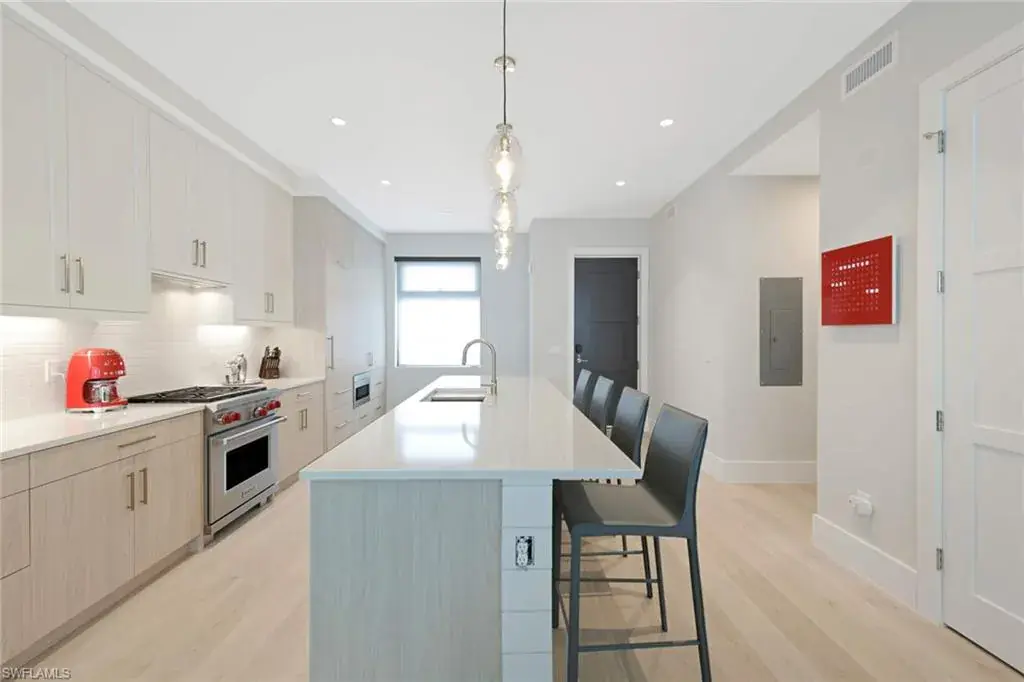 PRICING ALERT: LOWEST PRICE PER SQ FT IN EIGHT FIFTY CENTRAL! A fresh, upscale condo with 2021 construction in this boutique community is PRICED TO SELL NOW, THIS SEASON! This impressive 2 bedroom/2 bath unit is 1,357 SF and has an expansive lanai looking out to a peaceful courtyard, ONE OF THE BEST VIEWS IN THE DEVELOPMENT! The open floor plan offers 10-foot ceilings, Duchateau wood flooring, Raywal cabinetry, Brizo fixtures, gas cooking, Wolf/Sub Zero appliance package and quartz countertops. Amenities include a pool just steps from this unit, lawn area directly in front of unit and a beautiful rooftop outdoor fire pit/grill/seating area w fabulous views of the sunset and Olde Naples. Located in the heart of this highly sought after zip code and just steps away from it all…5th Avenue South, shops, restaurants and pristine beaches!