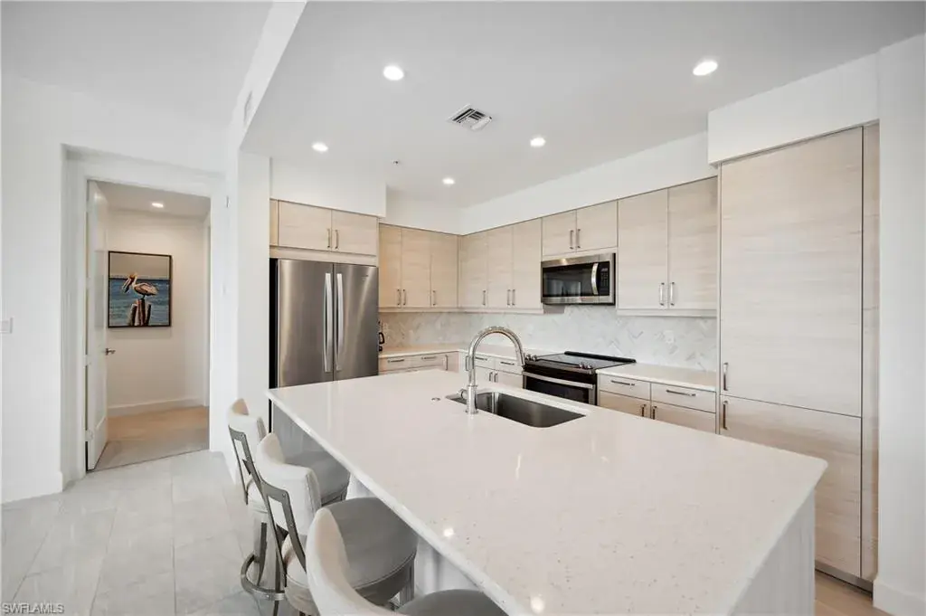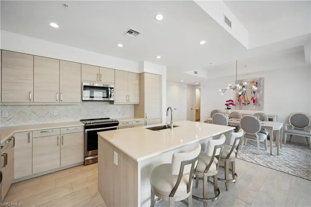 Living the Naples lifestyle at 1111 Central Ave is simply unmatched! This turnkey penthouse condo boasts 2 bedrooms, 2 bathrooms, and stunning southern exposure, flooding the space with natural light. With 10-foot ceilings, quartz countertops, and a beautiful city view, this condo offers both luxury and comfort. Key features include under-building secured parking and a beach shuttle available November through May. The building offers fabulous amenities such as a large lap pool, fun cabanas, a game room, a media room, a dog park, and a state-of-the-art fitness center.