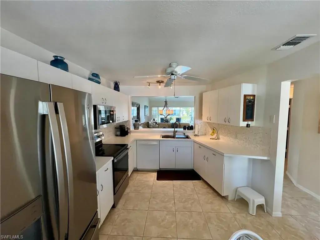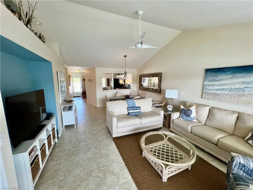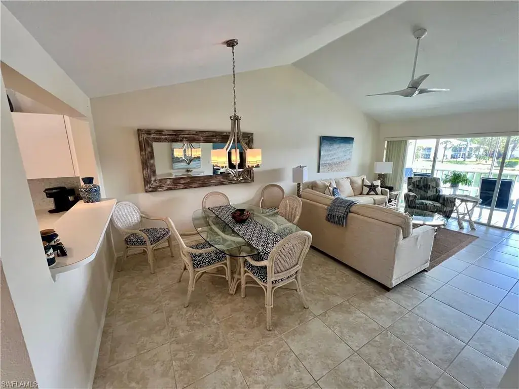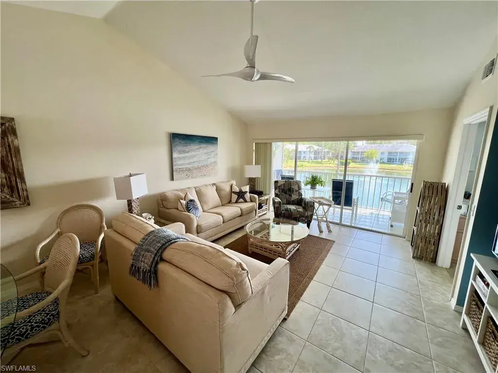 Best deal in Sapphire Lakes! This meticulously maintained unit offers a premium location, beautiful lake view and a garage! This home has large tile throughout, neutral colors and decor, a spacious eat-in kitchen and a full laundry room with sink. It is being sold turnkey furnished and will be ready for immediate use. It is a perfect opportunity for a personal residence or a ready to go rental. Sapphire Lakes is a gated and lushly landscaped community with low fees. It offers 4 pools, tennis, pickleball, bocci and more. The community also has a full social calendar with many activities an events. Garage units move fast, hurry and take a look!