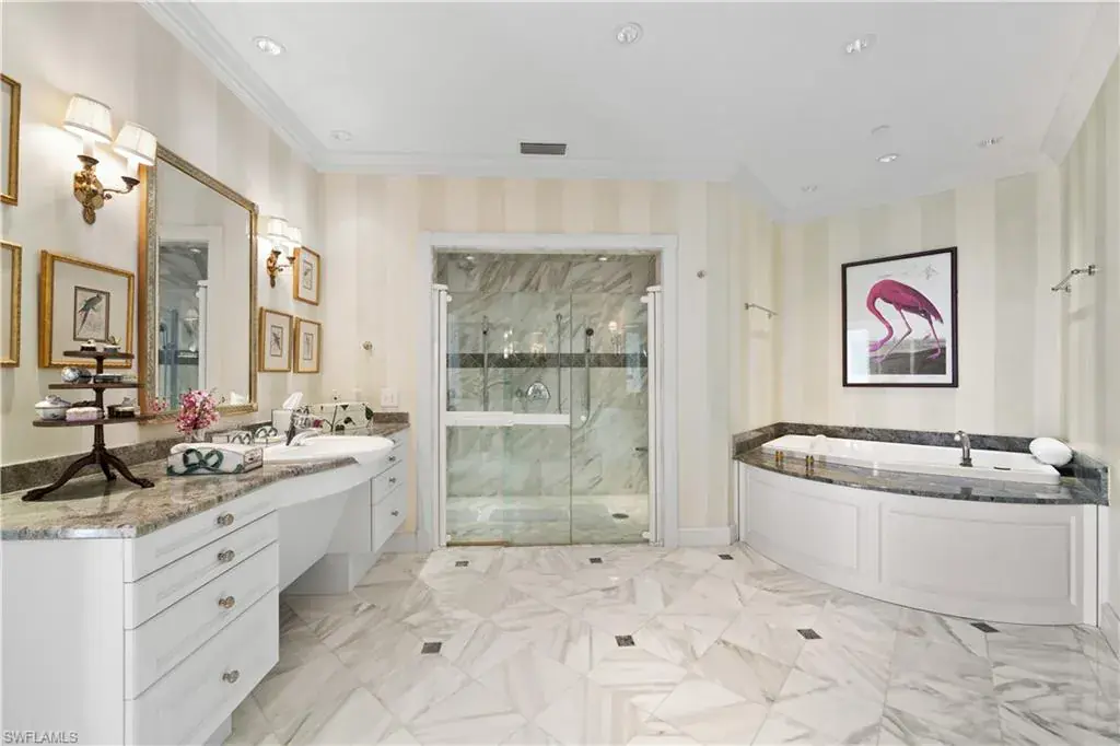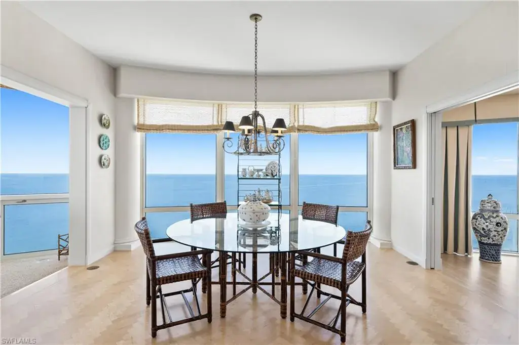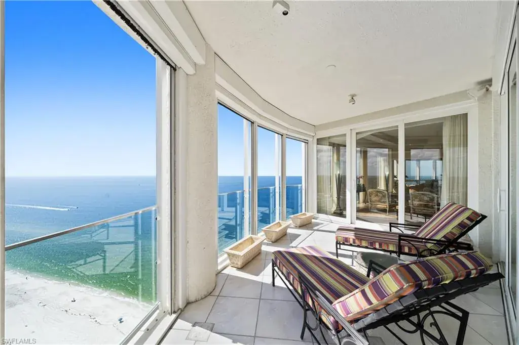 Perched on the 23th floor of the Enclave this remarkable penthouse spans an entire floor, offering breathtaking 360-degree views of the Gulf, city, and Bay, capturing Naples’ most stunning vistas. A split floorplan with four spacious bedrooms, a versatile den, and four and a half baths, this residence provides space and privacy for all. With countless floor to ceiling windows and each room thoughtfully designed to showcase sweeping coastal and city views, there is an unparalleled sense of space and natural light. The kitchen and family room areas are the ideal space to entertain family and friends while watching the sunset across the pristine coastline and dinner parties are a must with the spacious dining area, fit for families of all sizes. Additional features such as a full mechanical room, in unit trash chute, spacious laundry room and a private 3 car garage, this penthouse truly lives like a beach home. Residents will also enjoy direct beach access and The Enclave’s exceptional amenities, with planned renovations to the lobby, social room, pool, and fitness room set to enhance the building’s sophistication. This rare opportunity is perfect for those seeking an elevated lifestyle in Naples’ finest beachfront setting.