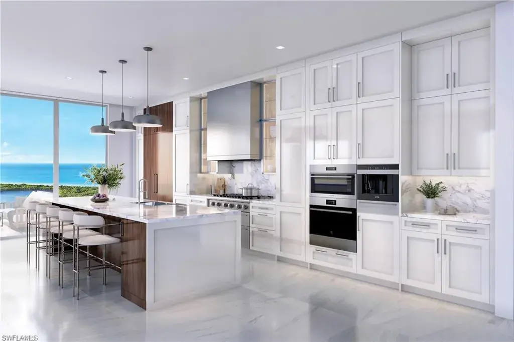 NEW CONSTRUCTION – Epique, a boutique tower, is 19 stories offering 68 spacious residences and is being created for those who appreciate luxurious residences with exquisite design and technological innovations. This estate 5 bedroom (one room also perfect for an office) residence offers 5200 sq. ft and boasts 10ft. ceilings with floor-to-ceiling glass windows creating breathtaking views. Located in prestige Pelican Bay, Epique is the final iconic tower to be completed. Epique, quite simply, is like no other high rise in Naples, it represents the very definition of relaxed luxury. Ideally located near the beach tram station, for quick shuttle to the beach club or enjoy a beautiful nature walk in just minutes. The gourmet kitchen includes wolf cook tops w/natural gas and subzero appliances. Epique, a state-of-the-art building, offers concierge services, 24-hr staff, a private Dining Club and outdoor lounge area. The latest fitness equipment and peloton bikes, steam, sauna, and cold plunge bath. Handsomely appointed gaming lounge, theater room, conference room and more. Enjoy state of the art amenities within the community of Pelican Bay; 2-private beach clubs with dining, chairs, and umbrellas, 2- tennis centers, Fitness, Pickleball (being built), wellness center and more…. Enjoy shopping, dining all within minutes of Epique. All photos are renderings of Epique.