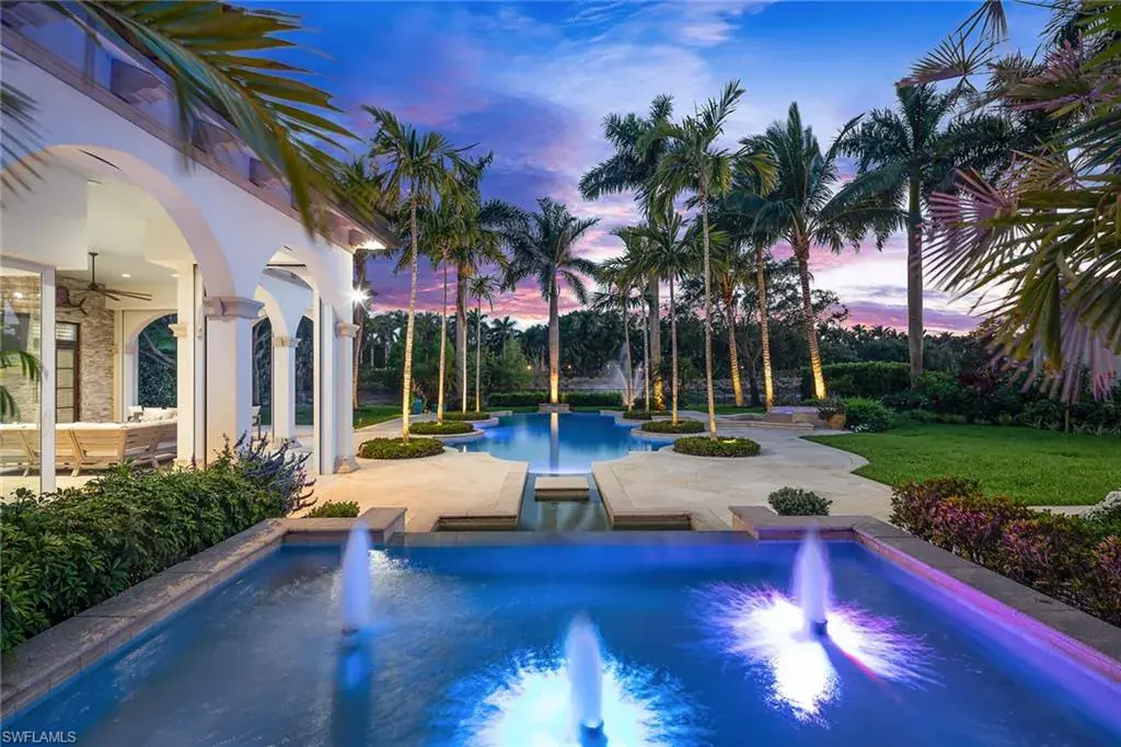 On one of the most desirable lots in Escada at The Ritz-Carlton Tiburón, this is a rare opportunity to own a thoughtfully updated luxury estate with sweeping lake and golf course views. Move-in ready, this light and bright residence offers an expansive floor plan all on one level, featuring soaring ceilings, European white oak flooring, custom millwork and designer lighting that create a refined ambiance throughout. Multiple living areas are designed for relaxation and entertaining, including a stunning open-concept gourmet kitchen with neutral finishes, custom cabinetry, a large island, gas cooking, and top-of-the-line Wolf and Sub-Zero appliances. The expansive primary suite is a private retreat with spa-like finishes, dual closets, dual baths and French doors opening to the covered lanai. Three generously sized guest suites, a large den, and a separate study provide flexible space for comfort and functionality. Outdoors, enjoy a resort-style setting with an impressive gas-heated saltwater pool and spa, water features, summer kitchen, fireplace, covered living areas, upgraded lush landscaping, and a spacious patio overlooking the 14th fairway with preferred southwestern exposure. Additional highlights include impact glass with electric shutters and screens, whole-house generator, newer roof, updated pool equipment, newer HVAC systems 2020–2025 and more. A three-car garage with circular drive and a double-gated entrance complete this exceptional offering. Tiburón membership is optional for access to championship golf, beach privileges and world-class resort amenities. This property represents the pinnacle of Naples living, where timeless luxury meets everyday comfort in a premier gated community.