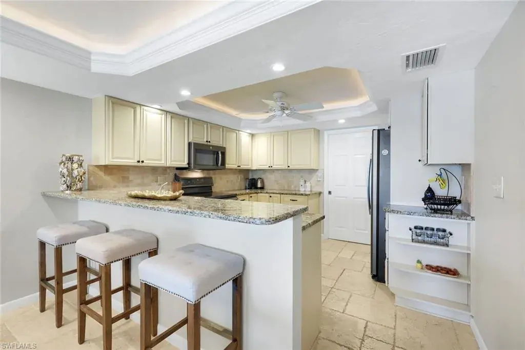 Location meets elegance and charm in this incredibly spacious 2 bedroom, 2.5-bathroom, 2 floor condo in highly desirable, Royal Harbor.The entire building has just been freshly painted! Step inside this bright and airy condo featuring a gorgeous balcony with southern exposure overlooking a canal, along with a new 28 foot boat dock and deeded boat slip. Enjoy direct gulf access with no bridges to the bay and numerous waterfront restaurants via boat or car. Entertain inside with an open concept kitchen complete with recessed lighting, tray ceiling, stainless steel appliances, perfectly appointed cabinetry finished off with granite countertops. An abundance of storage awaits in the laundry room adjacent to the kitchen while the main living space showcases the amazing views through picturesque sliders. Escape upstairs to a couple of ensuite bedrooms that boast large walk-in closets, private balconies and an exorbitant amount of space. Cool off in the refreshing newly renovated pool with views of the canal under giant, majestic palms. Just minutes to 5th Ave, downtown Naples, featuring world-class restaurants, shopping, and the pristine beaches of the gulf of Mexico, your permanent vacation awaits!