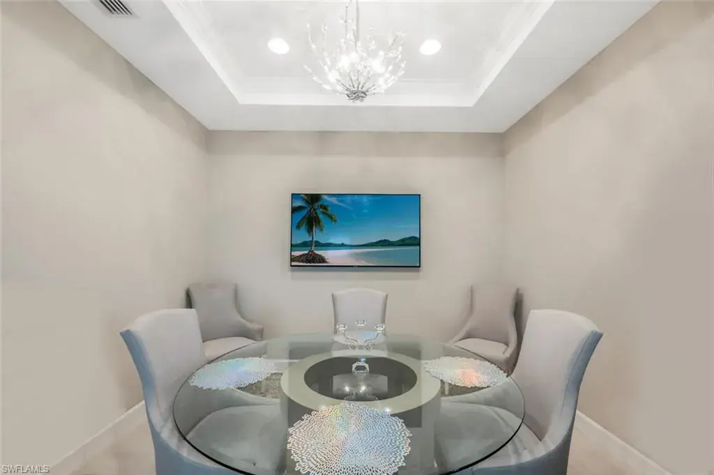 Private, peaceful setting at the end of cul-de sac sits this brand new furnished villa with screened-in lania over looking the preserve. One story living, hassle free lifestyle, with 2 bedrooms, den/office, 2 baths, and 2- car garage. The decor is sleek with tones of grey and white contemporary lighting and fixtures gives a high energy “Vibe”. Enjoy the Resort lifestyle here at Esplanade of Hacienda Lakes which includes 6,500 Sq. Ft. Club house, 24/7 Fitness gym, circular resistance pool and spectacular lap pool, hot tub,fire-pit ,Umbrellas by the pool, and music, PICKLEBALL, Tennis, Bocce Courts , playground dog park. Fun social events social & card room plus billiards. Everyone is raving about the amazing “over the top events “ the club put on.