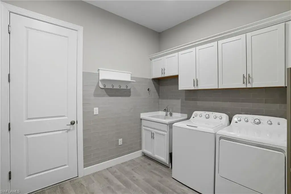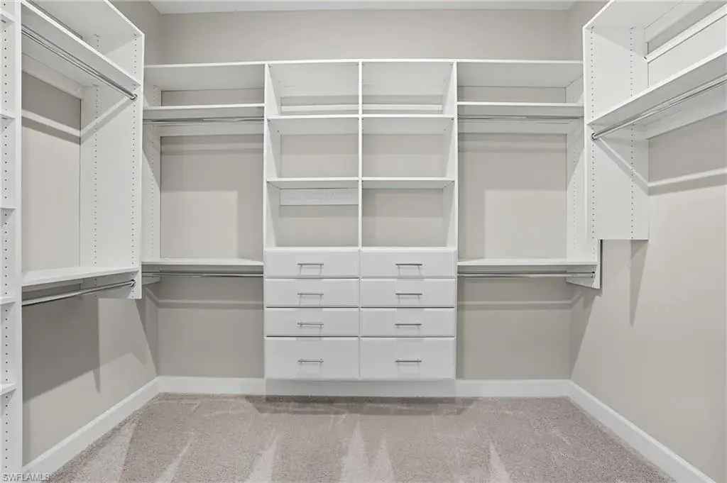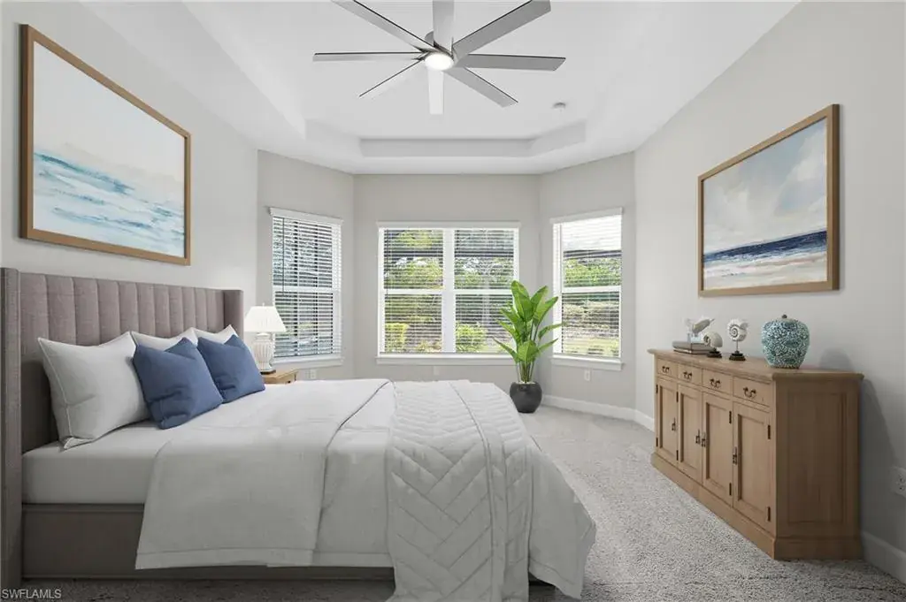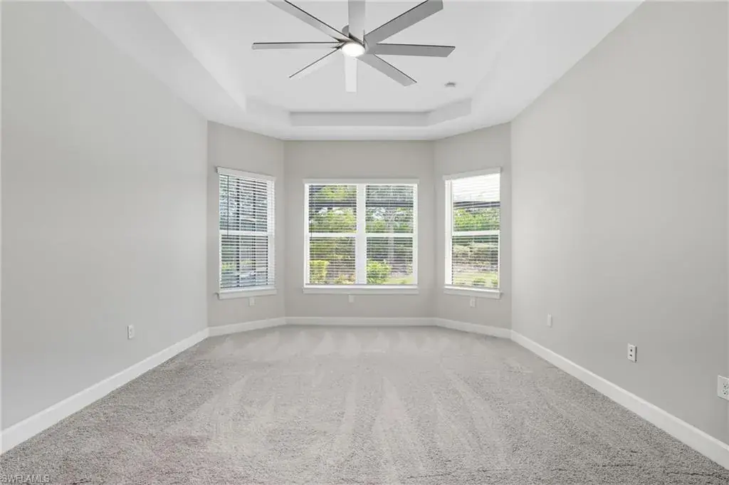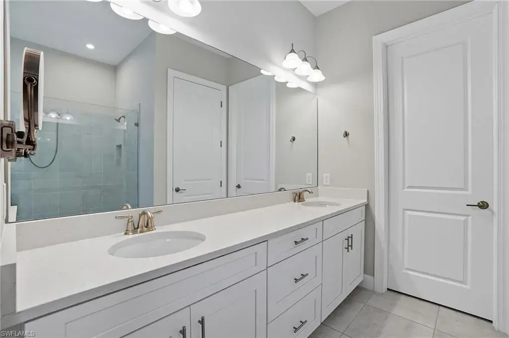 Built in 2022, this barely lived-in, 3+den/3 bath Lazio floorplan home blends thoughtful upgrades with timeless style. Nestled on a private cul-de-sac with sought-after southeastern exposure, the property is designed for both relaxed living and elegant entertaining. Inside you’ll find custom light fixtures and fans throughout, beautiful porcelain tile in the main areas, complemented by custom millwork in every room of the house including crown molding, custom shelving and closet systems in all bedrooms, custom built-ins in the den & family room, tray ceilings and 8ft interior doors throughout the home. The chef’s kitchen is as functional as it is beautiful, featuring quartz countertops, custom plumbing fixtures, upgraded GE appliances with gas cooktop, 42” upper cabinets, reverse osmosis system and a walk-in pantry with custom shelving. The primary suite is designed for relaxation with large custom closets, dual vanities, and a spa-inspired bath boasting dual shower heads and a frameless glass shower. Even the expansive laundry room is elevated with custom cabinetry, a sink and tiled walls, while the extended lanai offers a retreat of its own with a picture-framed screen, pool & spa with upgraded tile, lights and bubblers and a full outdoor kitchen—complete with sink, beverage cooler, integrated built-in grill with hooded vent, and granite countertops. Additional features include upgraded 10 ft. ceilings, generator hook-up, bay windows in guest and primary suites, a tankless water heater, a two and a half car garage (room for the golf cart!) with epoxy floors, and new landscaping on a 150 foot deep lot —— deeper than the new construction offerings in the community. Every detail of this home was carefully chosen to enhance style, comfort, and convenience. Esplanade by the Islands is fast becoming the pinnacle of resort-style living in Naples, with its full amenity campus including resort pool, full service spa, fitness center, Toasted Cafe & Bahama Bar, Pickleball, Tennis & Bocce courts, Nature Trails and so much more. Conveniently located near downtown Naples and Marco Island, don’t miss your chance to make this home as well as this lifestyle yours!