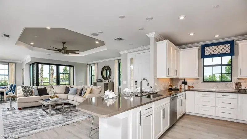 What’s Special: Water View | Lake View | Dedicated Study | Flex Room | Covered Lanai. New Construction – Ready Now! Built by America’s Most Trusted Homebuilder. Welcome to the Marano at 15339 Giardino Dr Unit 101 in Esplanade by the Islands Coach Homes. This beautiful floor plan offers 1,956 square feet of thoughtfully designed living space. Inside, you’ll find 2 bedrooms, 2 full bathrooms, a half bathroom, and a versatile study. Step into the open central living area, where the gathering room flows seamlessly into the designer kitchen and dining space. It’s perfect for cozy evenings or lively get-togethers with friends. The kitchen shines with upgraded quartz countertops and elegant shaker cabinets. Just off the gathering room, the serene owner’s suite features dual sinks, a corner shower, and a spacious walk-in closet. The secondary bedroom and full bathroom provide comfort for guests, while the study offers a quiet spot to work or relax. A convenient laundry room and half bathroom complete the layout. Additional Highlights Include: Tray ceilings, impact windows, a fireplace, upgraded quartz countertops, and shaker cabinets. Photos are for representative purposes only.