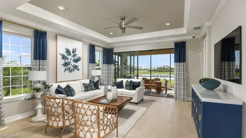 What’s Special: Single Level Living | Extended Patio | Water View. New Construction – December Completion! Built by Taylor Morrison, America’s Most Trusted Homebuilder. Welcome to the Ceretti at 15689 Gavello Street in Esplanade by the Islands. This thoughtfully designed twin villa offers 3 bedrooms, 2 baths, a study, and an open-concept layout that makes everyday living feel effortless. The kitchen flows seamlessly into the gathering and dining rooms, creating a warm space for entertaining. A sunlit lanai at the back of the home is perfect for enjoying Gulf Coast evenings, while the private primary suite features a bay window, dual sinks, and a spacious walk-in closet. Additional highlights include a laundry room, two-car garage, and inviting secondary bedrooms. Additional highlights include: pocket doors at study, rough in plumbing for future outdoor kitchen, extended screened patio, laundry sink. Photos are for representative purposes only. MLS#225079037