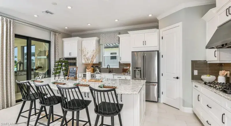 MLS#225025005 REPRESENTATIVE PHOTOS ADDED. July Completion. Esplanade by the Islands offers a vibrant, resort-inspired lifestyle with endless ways to enjoy your days. Take advantage of a resort-style pool, state-of-the-art fitness and wellness center, The Spa at Esplanade, and sports courts for tennis, pickleball, and bocce ball. From wine tastings and culinary experiences to concerts, excursions, and a bark park, this Taylor Morrison community truly has it all. The Lazio is a beloved Taylor Morrison floor plan, offering 2,275 square feet of thoughtfully designed living space. This home features 3 bedrooms, 3 full bathrooms, a private study, and a two-and-a-half-car garage. Step inside through the foyer to find a beautifully appointed dining area that flows into a spacious gathering room. The designer kitchen, complete with a large island, overlooks the main living space, while sliding glass doors lead to a generous lanai—perfect for enjoying the outdoors with your own pool. The primary suite is a serene retreat, boasting dual vanities, an oversized walk-in shower, a private water closet, and a spacious walk-in closet. With its open layout and stylish design, the Lazio is the perfect blend of comfort and sophistication. Structural Options Added Include: Gourmet Kitchen, Casual Dining Extension, Tandem Garage, and Covered Outdoor Living with Lanai and pool.