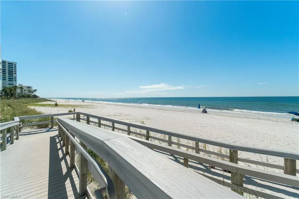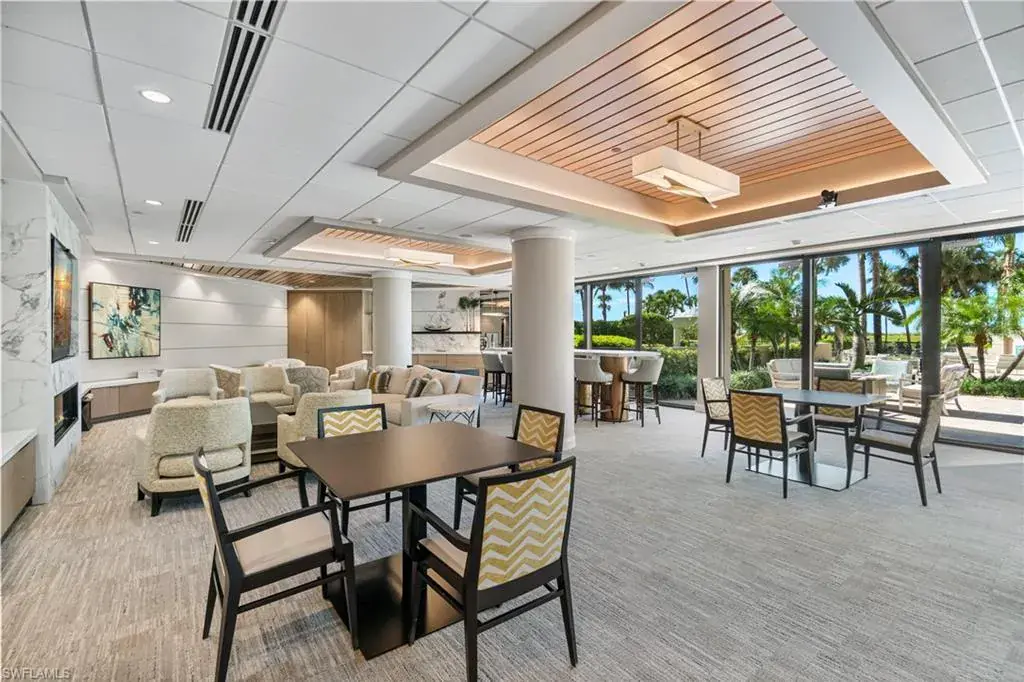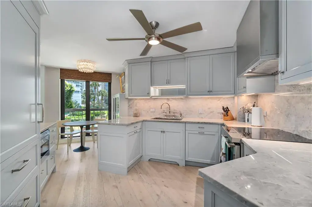 Experience elevated coastal living in this beautifully remodeled two-bedroom, two-bath residence with over 1,800 square feet of living space at the Esplanade Club in Park Shore. A high-end renovation brings a modern sense of elegance with a brand-new kitchen completed in 2024 featuring custom cabinetry, premium quartzite countertops, and top-of-the-line appliances including a Wolf range and Sub-Zero refrigerator, while the bathroom renovations showcase refined finishes and spa-inspired design. The open living and dining areas flow seamlessly onto a wraparound balcony capturing sweeping Gulf views, and a custom-lit granite bar adds ambient warmth perfect for entertaining. The primary suite offers his-and-hers closets, dual sinks, and a walk-in shower with multiple showerheads. Esplanade Club provides resort-style amenities including a beachfront pool and spa, modern fitness center, tennis and pickleball courts, and a dedicated dog park. With direct beach access, 24-hour security, and a vibrant social atmosphere, this move-in-ready residence embodies the essence of Naples beachfront living. Residents also enjoy the opportunity to lease or purchase a boat slip at the nearby Venetian Bay Yacht Club, offering ideal access to boating and the open waters of the Gulf.