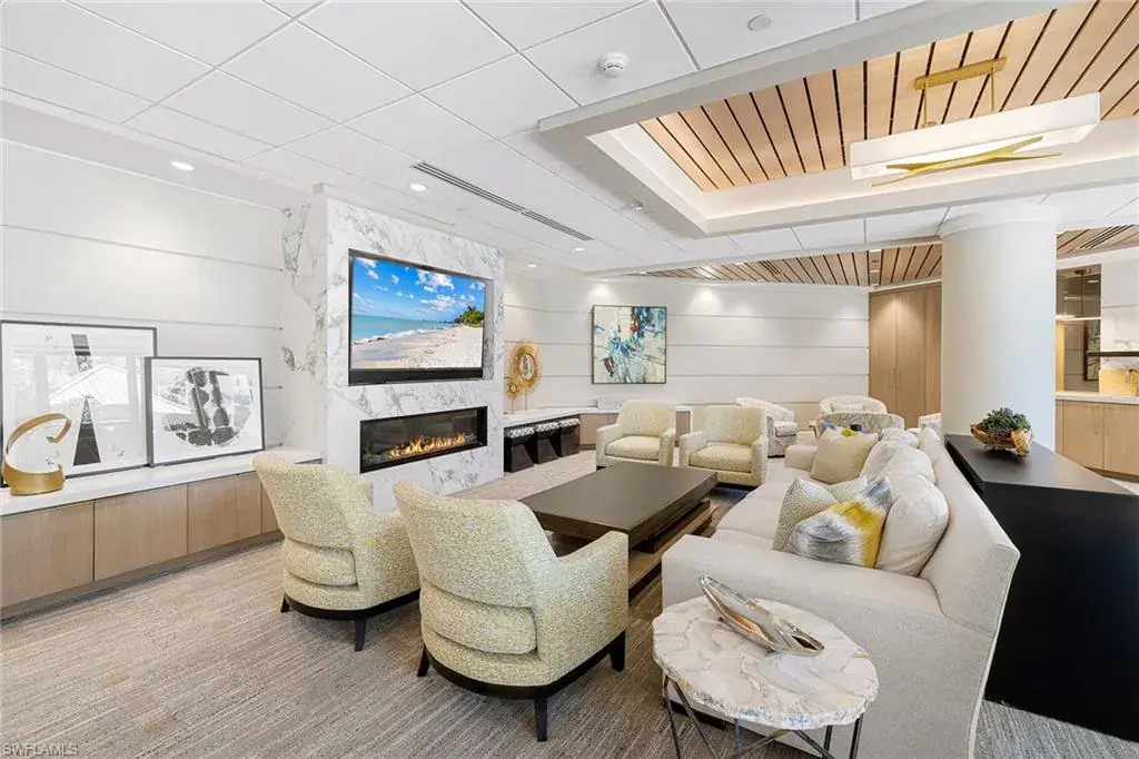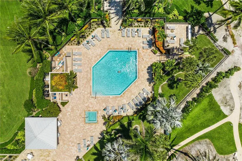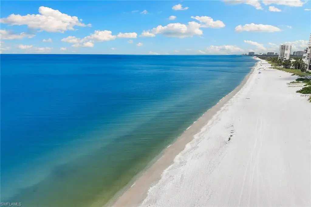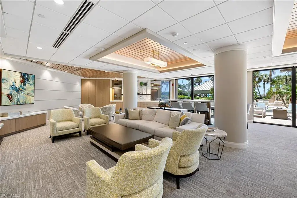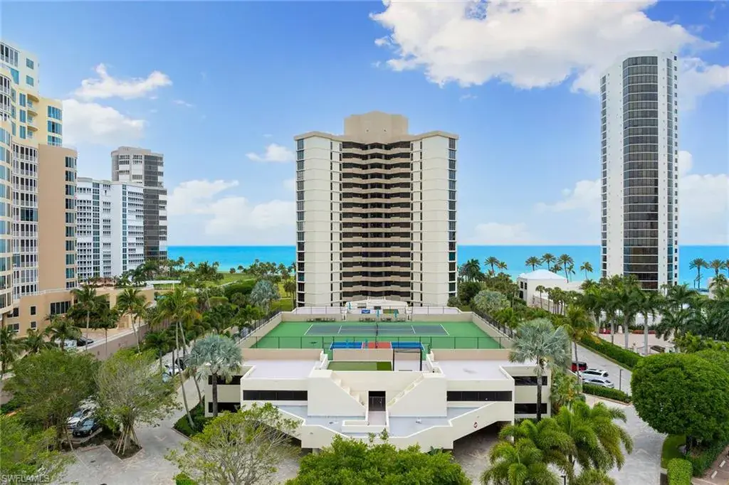 Experience refined beachfront living at the Esplanade Club on Park Shore, where timeless elegance meets coastal luxury. This updated two-bedroom, two-bath residence captures serene northwest Gulf views and features travertine flooring, granite countertops, stainless-steel appliances, impact glass and custom Hunter Douglas electric blinds. The open-concept design with split bedrooms offers effortless flow for relaxing or entertaining. Enjoy resort-style amenities including a beachfront pool and spa, outdoor kitchen and fire pit, sundeck, fitness center, steam room and a redesigned social lounge with full kitchen. The rooftop sports deck offers pickleball, tennis, bocce and shuffleboard with panoramic views. Additional conveniences include 24-hour security, on-site management, EV charging, kayak and bike storage and pet-friendly living. Moments from Venetian Village and minutes to downtown Naples, this move-in-ready retreat defines sophisticated Gulf-front living.
