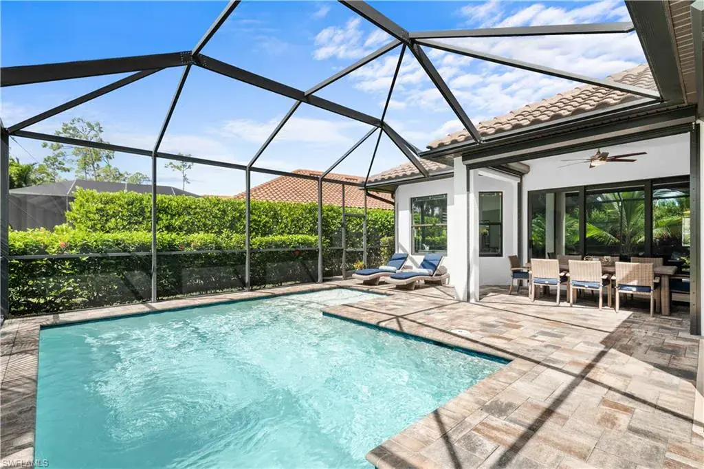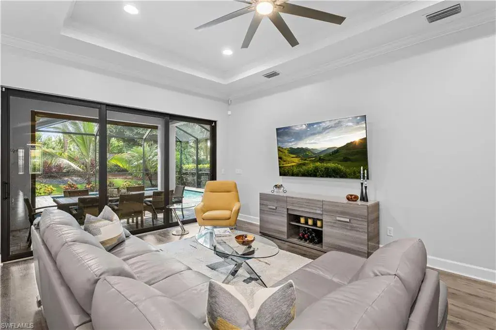 This property also comes with a Club/Sports Membership, granting full access to all the amenities of Esplanade Golf & Country Club (limited golf opportunities all year round!). These include the resort pool with cabanas and a poolside Bahama Bar, tennis and pickleball courts, bocce, a Koquina Day Spa, a fitness center, and a dog park. There are also 14 miles of trails and an 18-hole private golf course. On-site dining options include a restaurant, bar, wine tasting room, and a Starbucks-style café. The total quarterly fee of just $2,327 include property landscaping maintenance and full access to all the resort-style living amenities at Esplanade. This home offers a perfect blend of comfort, luxury, and active living, making it a truly unique and appealing option in Naples. COMING SOON TO ESPLANADE (2026): Fully renovated and expanded poolside Bahama Bar; expanded outdoor bar at the Barrel House; expanded golf practice range; and an AIR CONDITIONED INDOOR PICKLEBALL COMPLEX with four indoor courts.