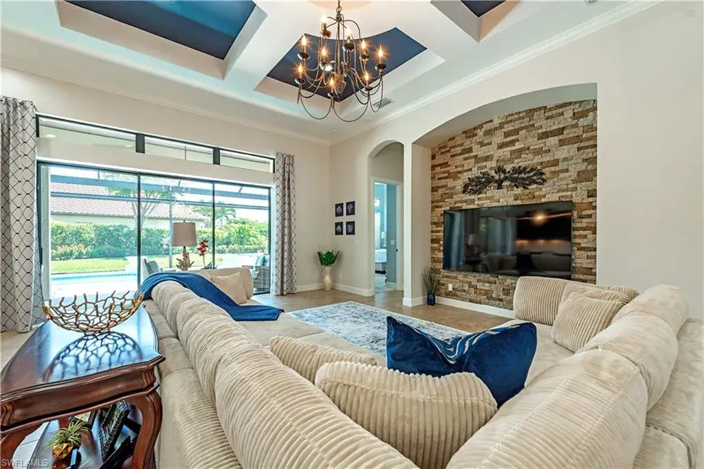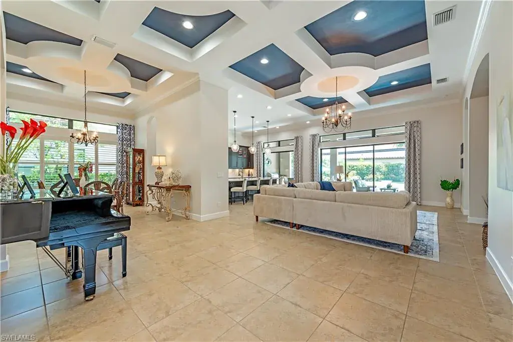 Experience unparalleled luxury in this immaculate Francheso model home, nestled in the prestigious Esplanade Golf and Country Club of North Naples. With the purchase of this home, enjoy a full golf club membership, granting you access to an 18-hole golf course and an array of resort-style amenities, including formal dining, a TIKI bar by the resort-style pool, bocce ball, pickleball, tennis, a spa, and a fully staffed exercise facility.