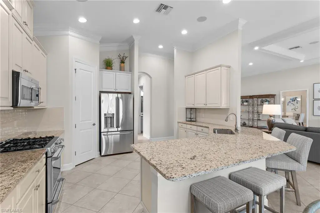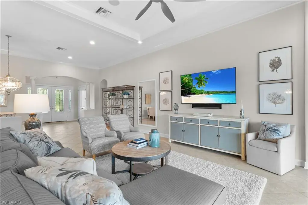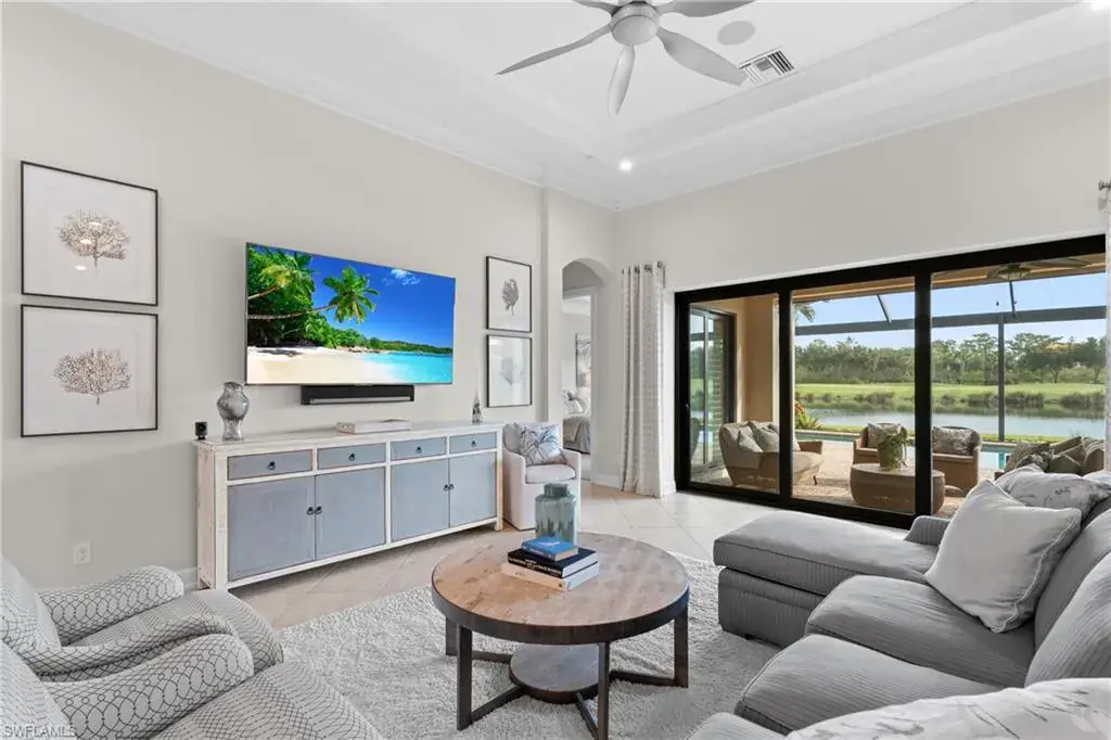Additional enhancements include a whole-house water filtration system, an AIR CONDITIONED GARAGE with ceiling storage, professionally designed landscaping with accent lighting, an indoor/outdoor SONOS system with mounted TVs, CUSTOM CLOSETS built-ins, and meticulously curated furnishings and décor. Together, these upgrades reflect an additional investment of more than $100,000 over the past two years, further elevating the home’s sophistication and comfort. Perfectly positioned on a QUITE STREET just steps from the community mailboxes, this residence embodies a seamless blend of refined elegance and modern luxury. As a resident of Esplanade, you’ll enjoy an unmatched lifestyle with access to world-class amenities, including a championship golf course, state-of-the-art clubhouse, resort-style pool with food and beverage service, private cabanas, tennis and pickleball courts, walking and biking trails, a dog park, fitness center, full-service salon and spa, wellness center, tiki bar, and more. Ideally located in North Naples, Esplanade Golf & Country Club offers convenient access to I-75, the airport, top-rated restaurants, premier shopping, and the stunning beaches of the Gulf Coast. Known for its vibrant, active social scene, the community delivers the perfect blend of luxury, recreation, and lifestyle. Don’t miss the opportunity to make this exceptional home yours—and start living the Esplanade dream.