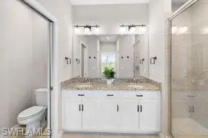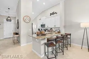 OWNER WILL PAY THE 10,000 TRANSFER FEE. BEAUTIFUL SECOND FLOOR GARDEN HOME WITH LAKE VIEW and golf course view. READY FOR YOU TO MOVE IN (TURNKEY), 2 BD + den, 2 BA, 1 car detached garage. Vaulted ceilings makes this unit feel like a home, open living w/ eat-in kitchen, granite countertops, white shaker cabinets. Master suite including his/her walk in closets, dual sinks & shower. Relax on your outdoor screened lanai. Amenities include golf privileges from May 1 to Oct 31, State of the art clubhouse, magnificent 18-hole golf course, resort style swimming pool, Bahama bar, cabanas, café, Bistro and Pub, wine room, pickle ball, tennis courts, Bocce ball. 5 mile Nature Trail for walking and biking, dog park, fitness center, wellness center & full-service salon. Close to shopping and I-75.