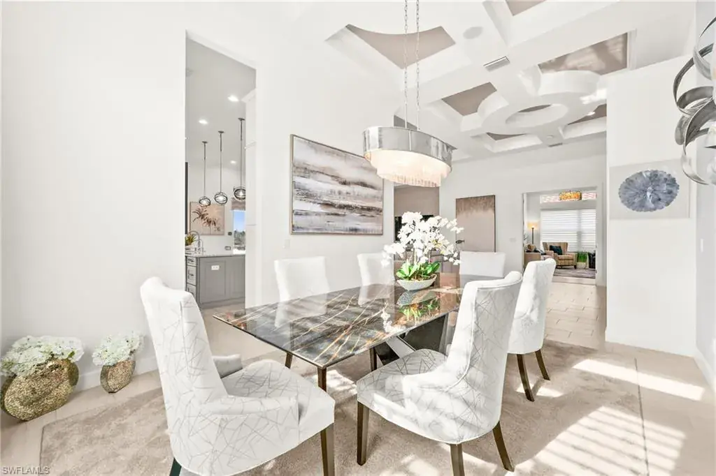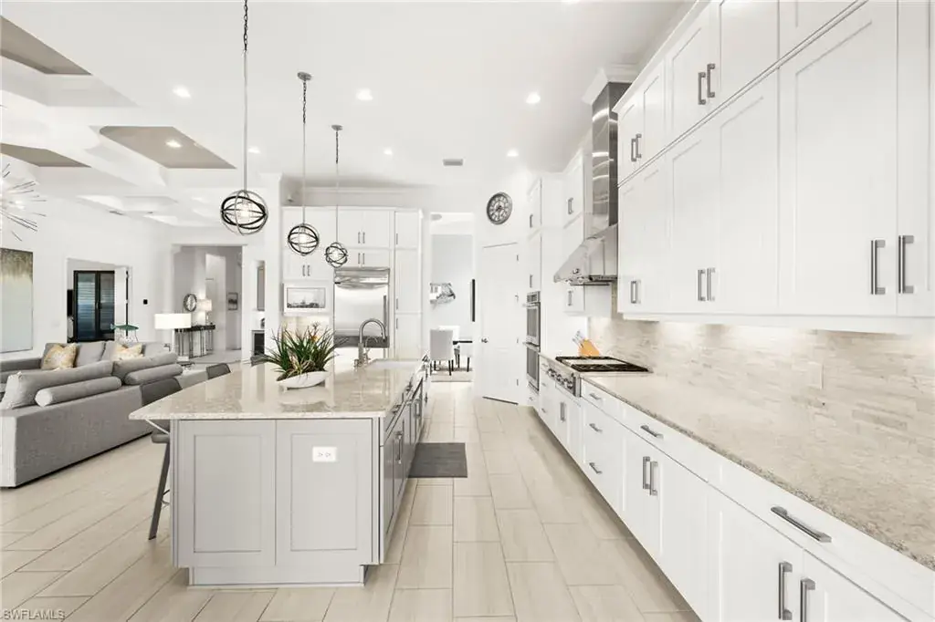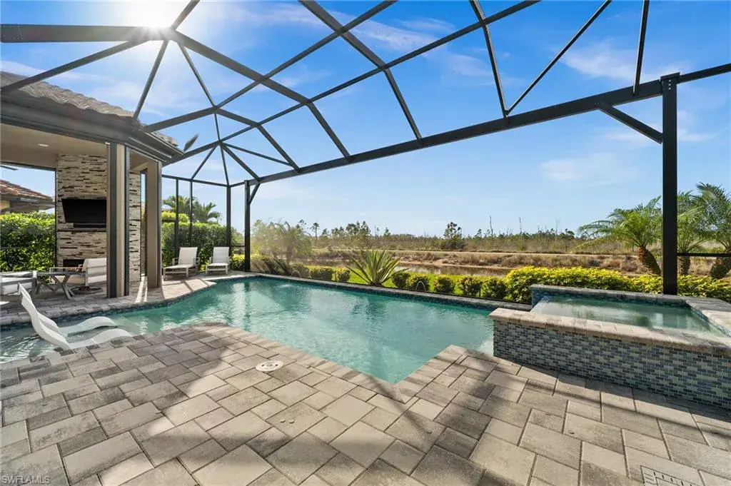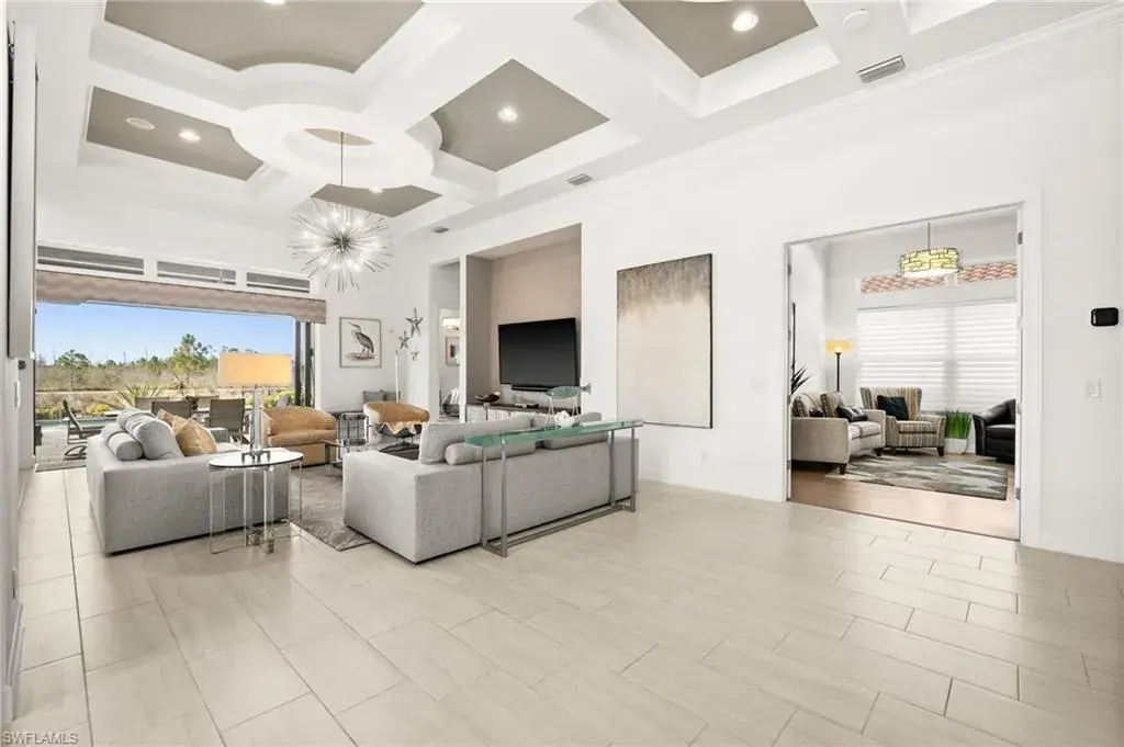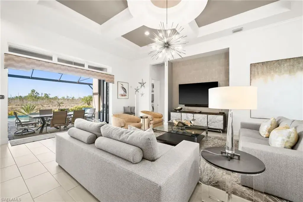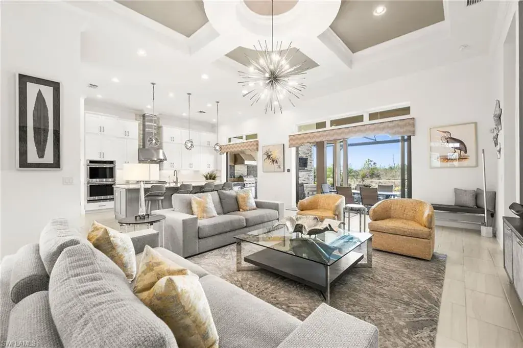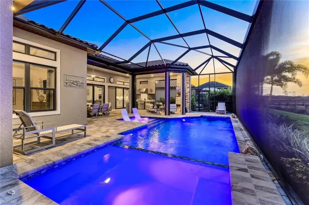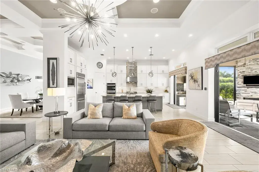 This home INCLUDES GOLF membership at Esplanade Golf & Country Club, with no waitlist or high initiation fees. Everything in this 2020-built “Francesco” is premium. All fine furnishings, art, rugs, lamps, and more are included with this home. One of the most luxuriously appointed homes in Esplanade Golf & Country Club. STRUCTURAL UPGRADES: Pocketing sliding doors (both sets), pool bath, outdoor shower, fireplace (refaced with marble in 2023), extended outdoor covered living area, 3rd stall garage, A/C in garage, hurricane impact windows & doors, electric roll-down screens on lanai + roll down screens over front entryway, all interior doors are solid core, Crystalline glass front doors, outdoor kitchen equipped with grill, sink, refrigerated drawers, & externally vented hood. Pool includes fountains, spa, and sunshelf w/ ledge loungers. SYSTEM UPGRADES: Whole house generator, water softener, upgraded thermostat, security system, doorbell camera, Sonos Surround Sound indoors & outdoors, TV in every room + outdoor living area. EXTRAS: Closets (bedrooms, broom, linen & pantry) are beautifully designed for storage & organization, owner’s bath has a cabinet tower & bank of drawers in lieu of a tub. The air-conditioned garage is equipped with ample storage for tools, luggage, holiday decor, and more. KITCHEN UPGRADES: Monogram appliances, which include a double oven, a gas cooktop, a built-in refrigerator, a third row of cabinetry + exterior under-island cabinetry added, reverse osmosis, a beverage center with upgraded cabinetry & lighting, sink, and beverage refrigerator. Additional landscaping & potted plants are watered w/ dedicated, timed irrigation to ensure they’re always thriving. Professionally designed lighting, sleek motorized Hunter-Douglas Silhouettes, custom drapery & valances, custom paint on walls & coffered ceilings, and premium wallpaper. Esplanade offers an active lifestyle with dining options, golf, a racquet sports program (including pickleball), premier sports facilities, a full salon and spa, and a vibrant social calendar. This home is the perfect fit for those who appreciate quality, details, and convenience. This turnkey home is priced to include high-end furnishings, elegant rugs, wall art, kitchenwares, lux bedding, linens, and more.  For the benefit of the buyer, a Personal Property Sales Contract will be used for the furnishings, art, rugs, lamps, decor, housewares, etc.