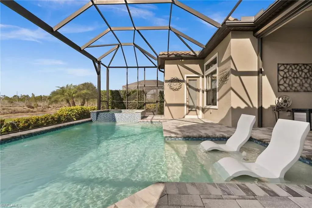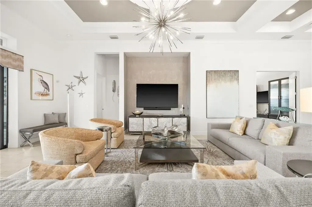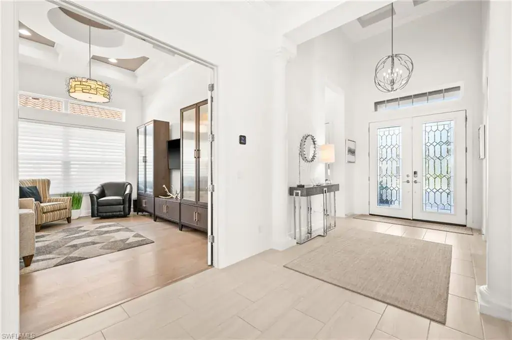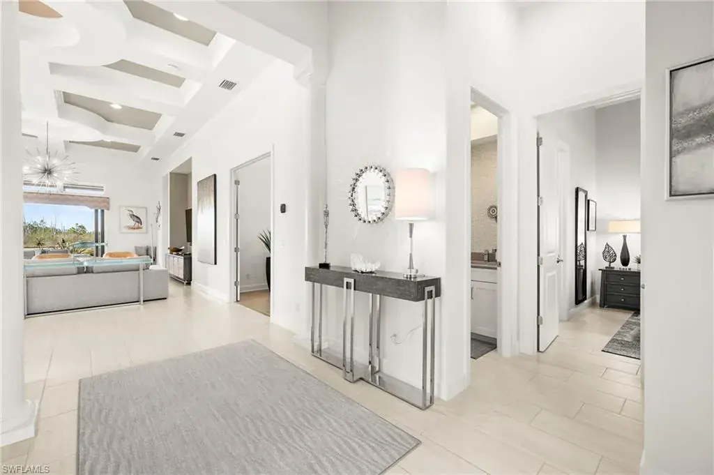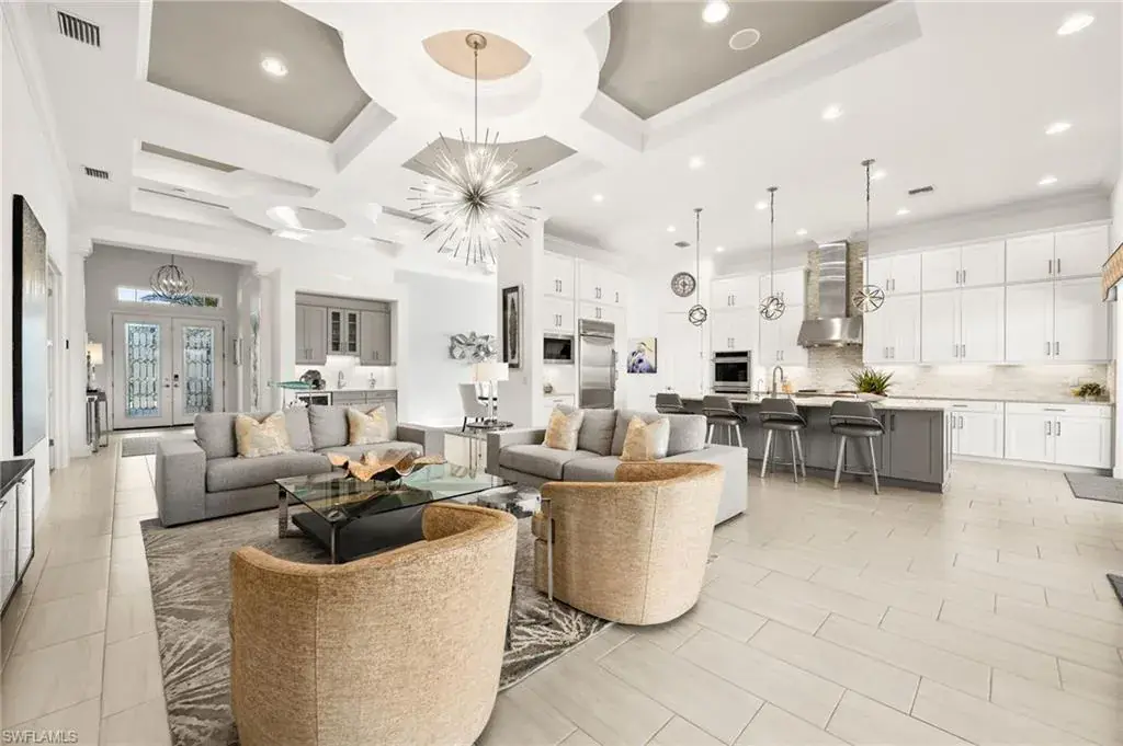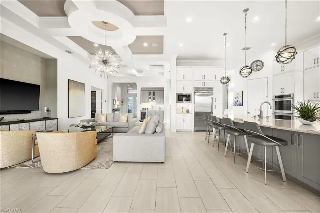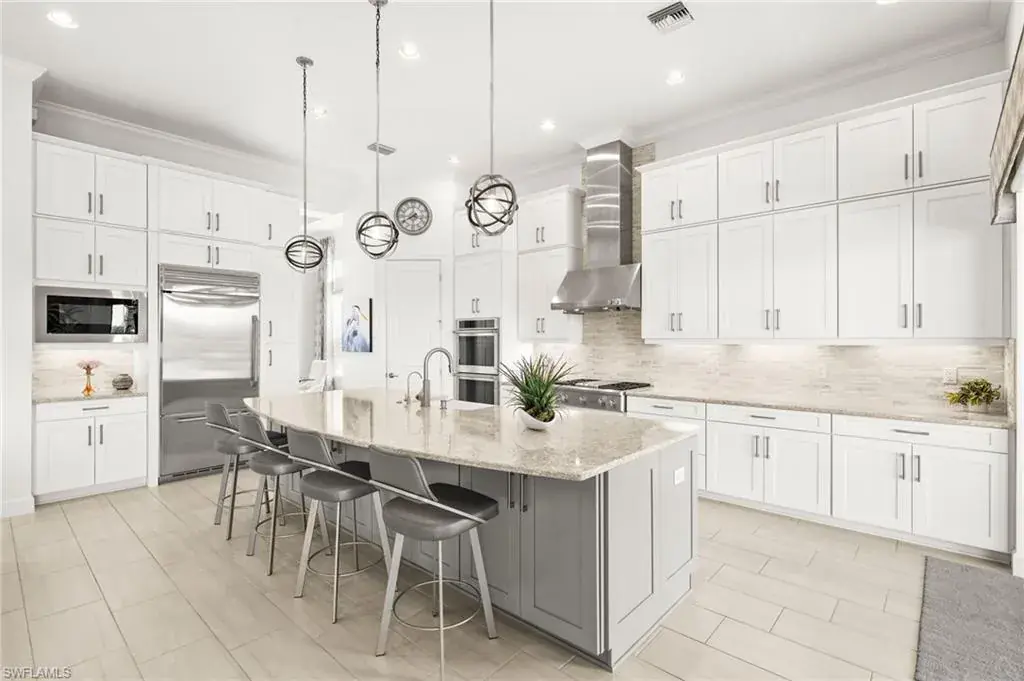 This home INCLUDES GOLF membership at Esplanade Golf & Country Club, with no waitlist or high initiation fees. Everything in this 2020-built “Francesco” is premium. All fine furnishings, art, rugs, lamps, and more are included with this home. One of the most luxuriously appointed homes in Esplanade Golf & Country Club. STRUCTURAL UPGRADES: Pocketing sliding doors (both sets), pool bath, outdoor shower, fireplace (refaced with marble in 2023), extended outdoor covered living area, 3rd stall garage, A/C in garage, hurricane impact windows & doors, electric roll-down screens on lanai + roll down screens over front entryway, all interior doors are solid core, Crystalline glass front doors, outdoor kitchen equipped with grill, sink, refrigerated drawers, & externally vented hood. Pool includes fountains, spa, and sunshelf w/ ledge loungers. SYSTEM UPGRADES: Whole house generator, water softener, upgraded thermostat, security system, doorbell camera, Sonos Surround Sound indoors & outdoors, TV in every room + outdoor living area. EXTRAS: Closets (bedrooms, broom, linen & pantry) are beautifully designed for storage & organization, owner’s bath has a cabinet tower & bank of drawers in lieu of a tub. The air-conditioned garage is equipped with ample storage for tools, luggage, holiday decor, and more. KITCHEN UPGRADES: Monogram appliances, which include a double oven, a gas cooktop, a built-in refrigerator, a third row of cabinetry + exterior under-island cabinetry added, reverse osmosis, a beverage center with upgraded cabinetry & lighting, sink, and beverage refrigerator. Additional landscaping & potted plants are watered w/ dedicated, timed irrigation to ensure they’re always thriving. Professionally designed lighting, sleek motorized Hunter-Douglas Silhouettes, custom drapery & valances, custom paint on walls & coffered ceilings, and premium wallpaper. Esplanade offers an active lifestyle with dining options, golf, a racquet sports program (including pickleball), premier sports facilities, a full salon and spa, and a vibrant social calendar. This home is the perfect fit for those who appreciate quality, details, and convenience. This turnkey home is priced to include high-end furnishings, elegant rugs, wall art, kitchenwares, lux bedding, linens, and more.  For the benefit of the buyer, a Personal Property Sales Contract will be used for the furnishings, art, rugs, lamps, decor, housewares, etc.