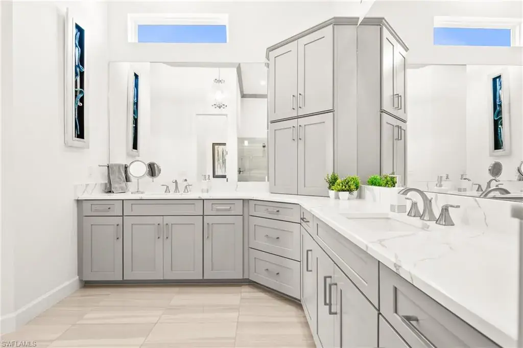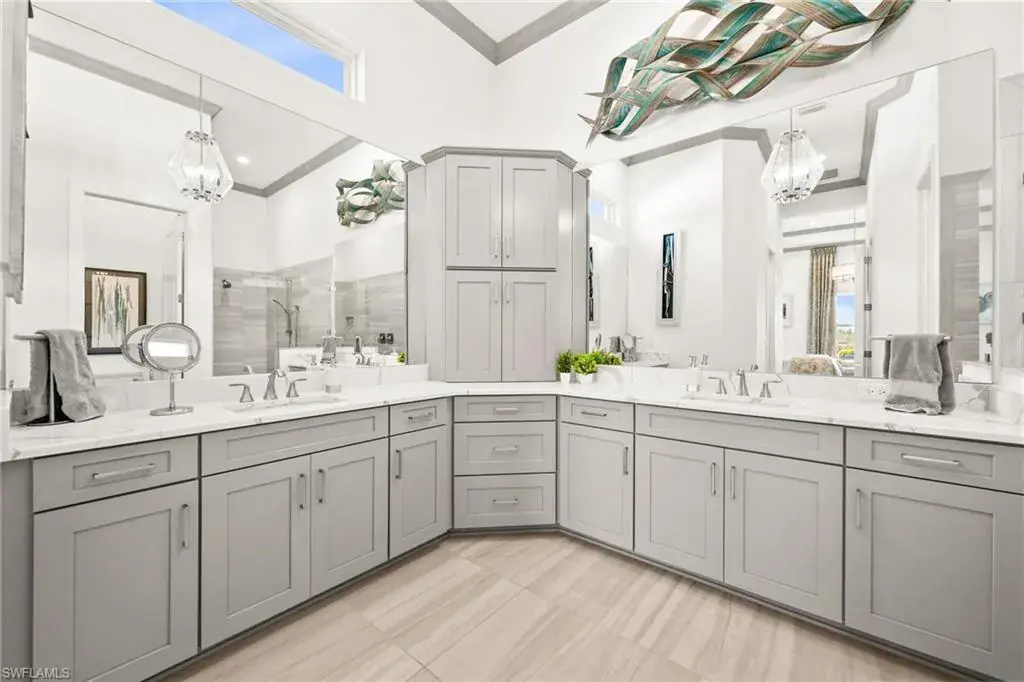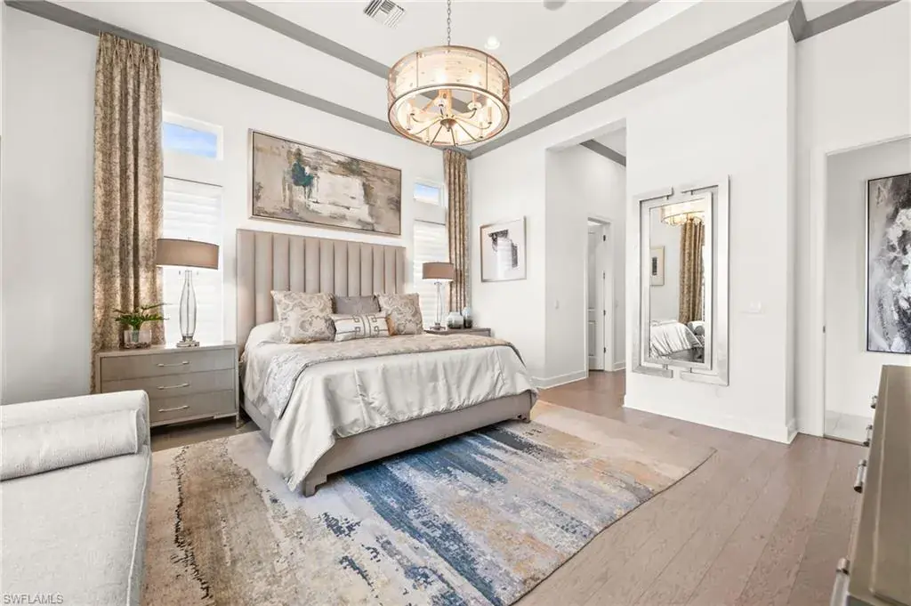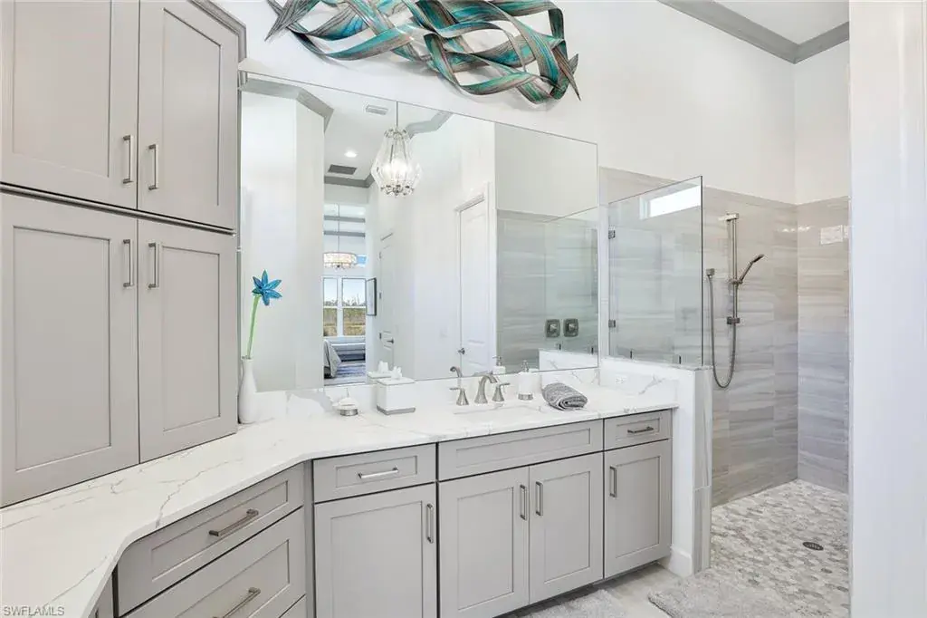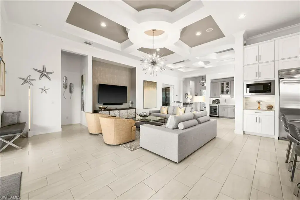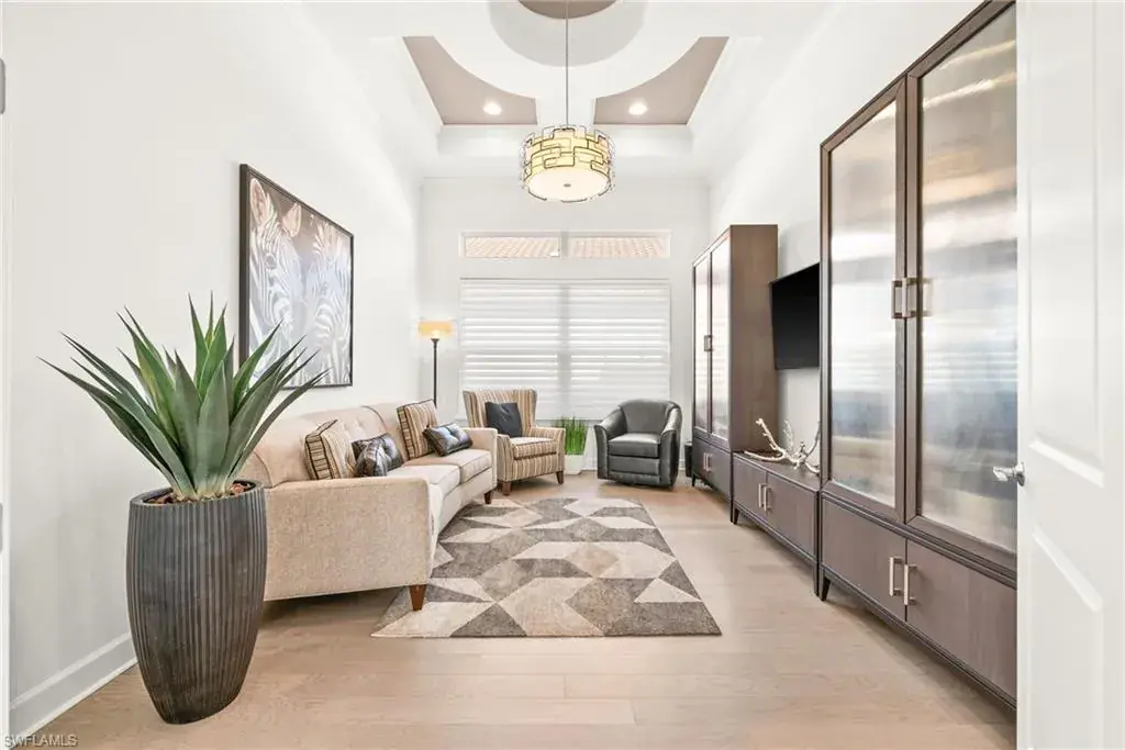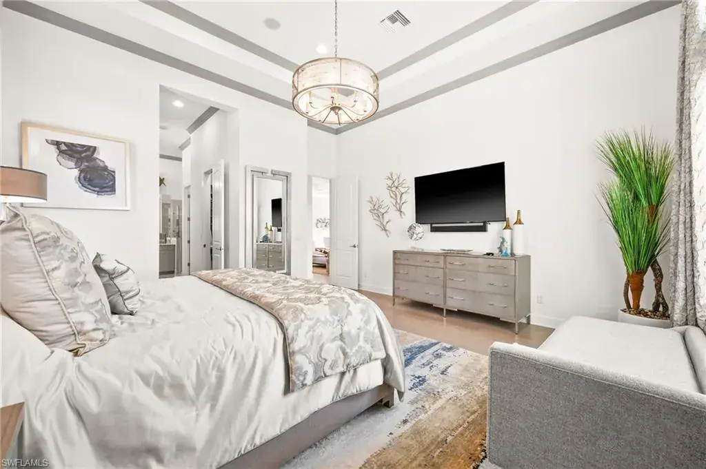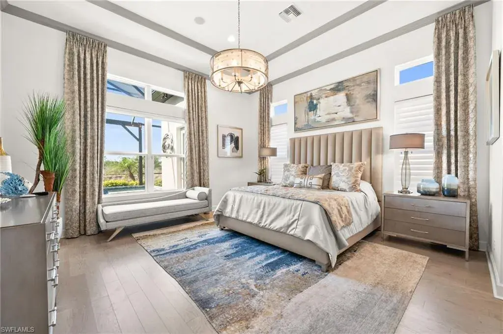 This home INCLUDES GOLF membership at Esplanade Golf & Country Club, with no waitlist or high initiation fees. Everything in this 2020-built “Francesco” is premium. All fine furnishings, art, rugs, lamps, and more are included with this home. One of the most luxuriously appointed homes in Esplanade Golf & Country Club. STRUCTURAL UPGRADES: Pocketing sliding doors (both sets), pool bath, outdoor shower, fireplace (refaced with marble in 2023), extended outdoor covered living area, 3rd stall garage, A/C in garage, hurricane impact windows & doors, electric roll-down screens on lanai + roll down screens over front entryway, all interior doors are solid core, Crystalline glass front doors, outdoor kitchen equipped with grill, sink, refrigerated drawers, & externally vented hood. Pool includes fountains, spa, and sunshelf w/ ledge loungers. SYSTEM UPGRADES: Whole house generator, water softener, upgraded thermostat, security system, doorbell camera, Sonos Surround Sound indoors & outdoors, TV in every room + outdoor living area. EXTRAS: Closets (bedrooms, broom, linen & pantry) are beautifully designed for storage & organization, owner’s bath has a cabinet tower & bank of drawers in lieu of a tub. The air-conditioned garage is equipped with ample storage for tools, luggage, holiday decor, and more. KITCHEN UPGRADES: Monogram appliances, which include a double oven, a gas cooktop, a built-in refrigerator, a third row of cabinetry + exterior under-island cabinetry added, reverse osmosis, a beverage center with upgraded cabinetry & lighting, sink, and beverage refrigerator. Additional landscaping & potted plants are watered w/ dedicated, timed irrigation to ensure they’re always thriving. Professionally designed lighting, sleek motorized Hunter-Douglas Silhouettes, custom drapery & valances, custom paint on walls & coffered ceilings, and premium wallpaper. Esplanade offers an active lifestyle with dining options, golf, a racquet sports program (including pickleball), premier sports facilities, a full salon and spa, and a vibrant social calendar. This home is the perfect fit for those who appreciate quality, details, and convenience. This turnkey home is priced to include high-end furnishings, elegant rugs, wall art, kitchenwares, lux bedding, linens, and more.  For the benefit of the buyer, a Personal Property Sales Contract will be used for the furnishings, art, rugs, lamps, decor, housewares, etc.