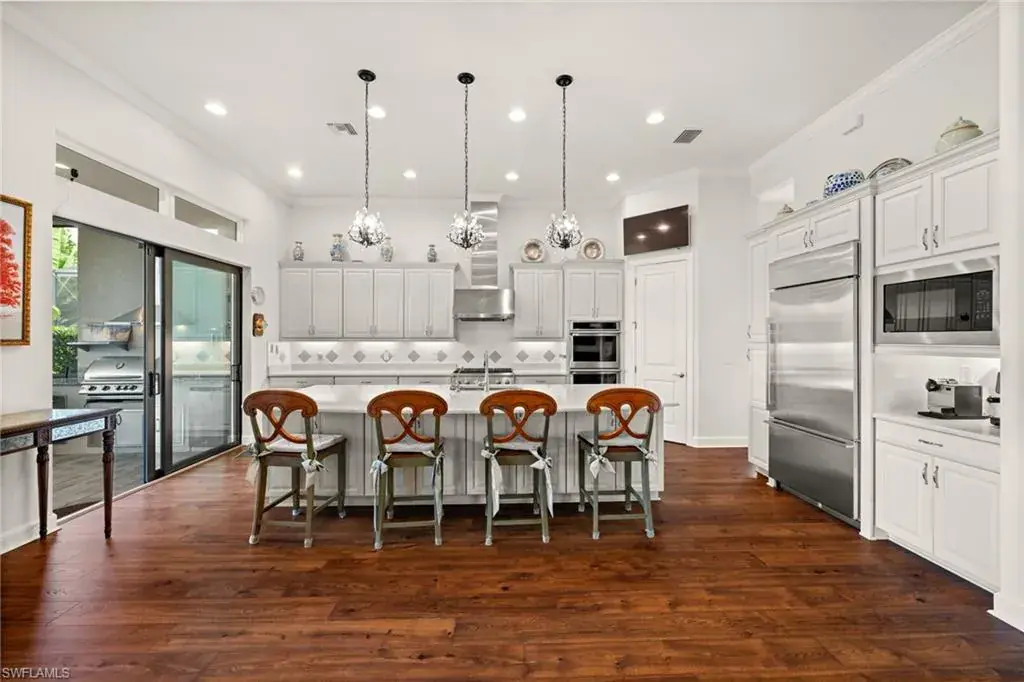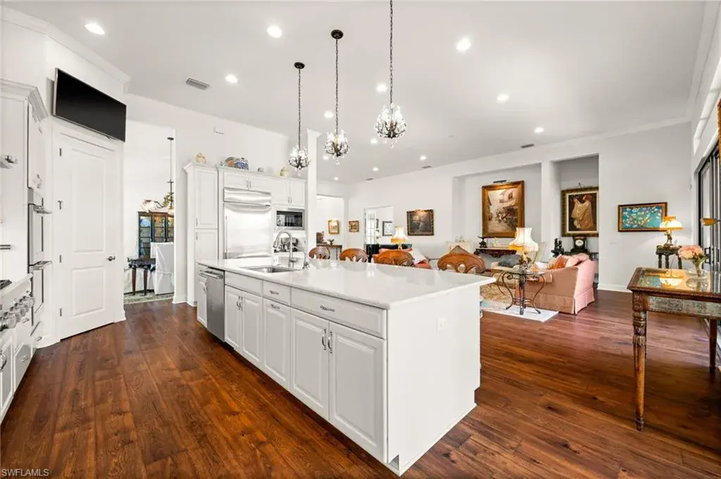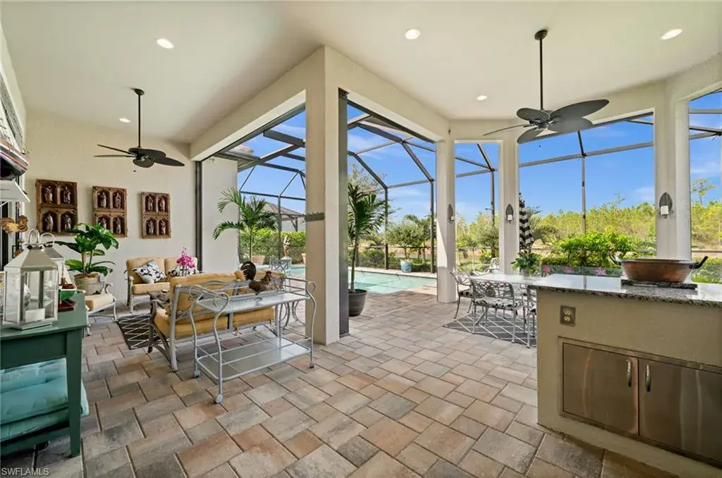 Experience resort-style living in this rarely available Francesco model at 9509 Montelanico Loop in the exclusive Esplanade Golf & Country Club. This spacious, 2878 sq, 3-bedroom plus den, 3 1/2 bath home offers lake views, impact windows, Storm Smart screen, and a full golf membership. The open-concept design features a gourmet kitchen with gas cooktop, stainless appliances, and a large island flowing into a spacious great room filled with natural light. The primary suite includes dual walk-in closets. Step outside to the covered lanai with outdoor kitchen and electric hurricane screen, perfect for relaxing or entertaining while taking in peaceful water views. Enjoy the Esplanade lifestyle with championship golf, tennis, pickleball, resort-style pools, fitness center, spa, fine dining, and vibrant social events. This home perfectly combines luxury, comfort, and the ultimate Florida lifestyle.