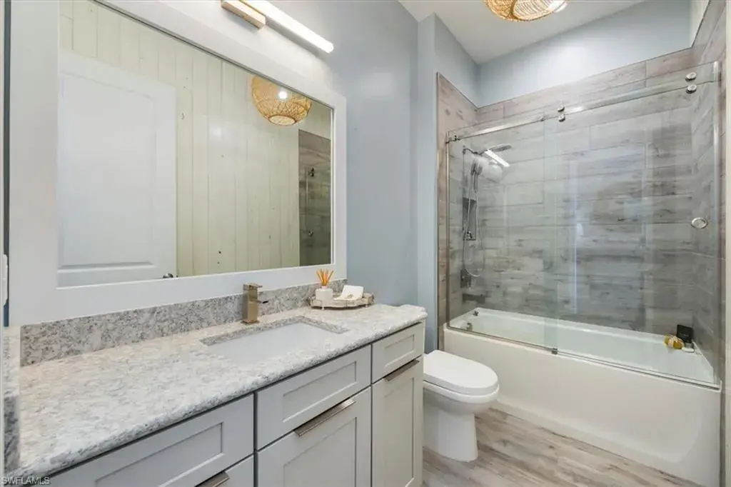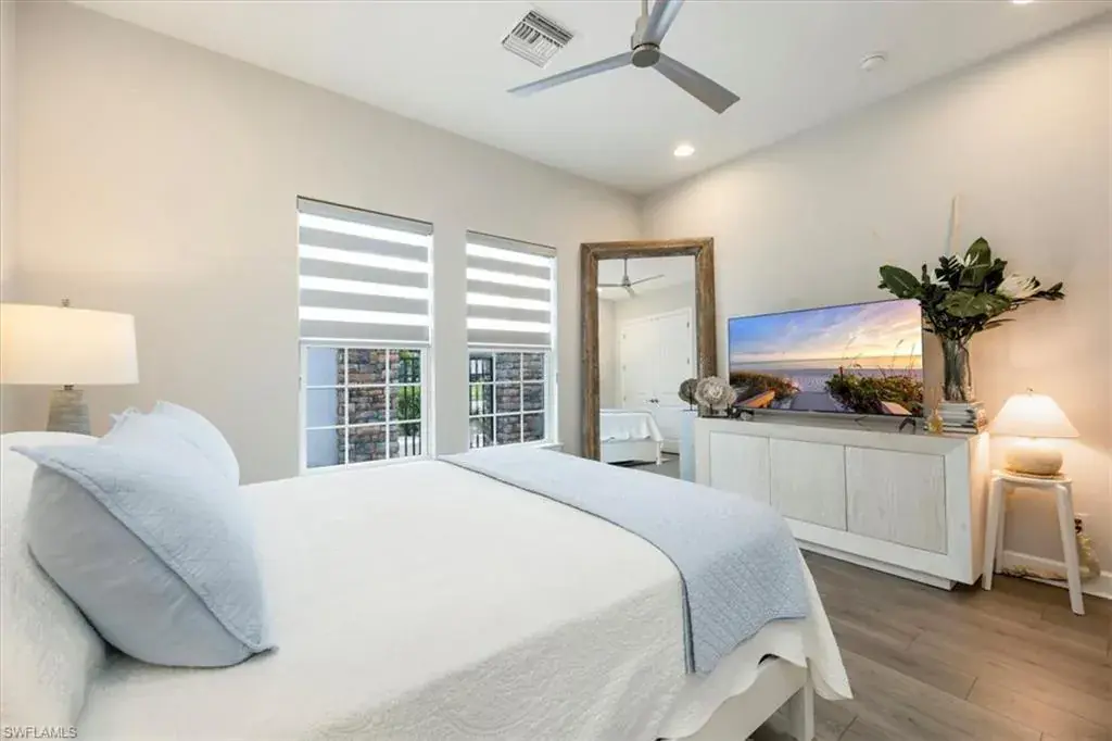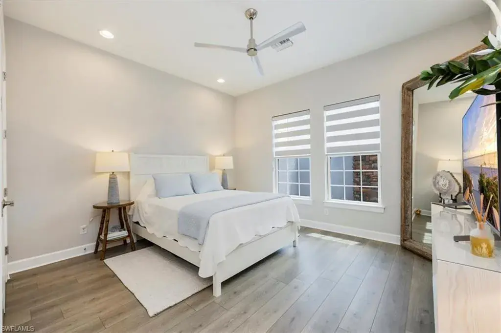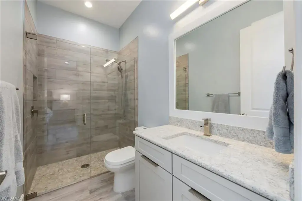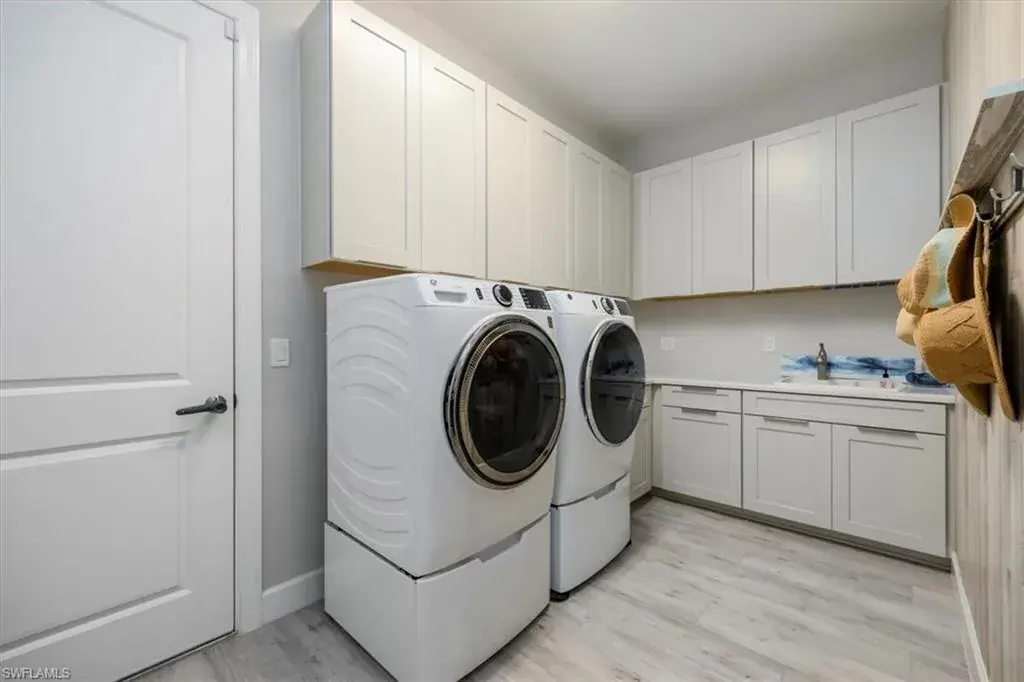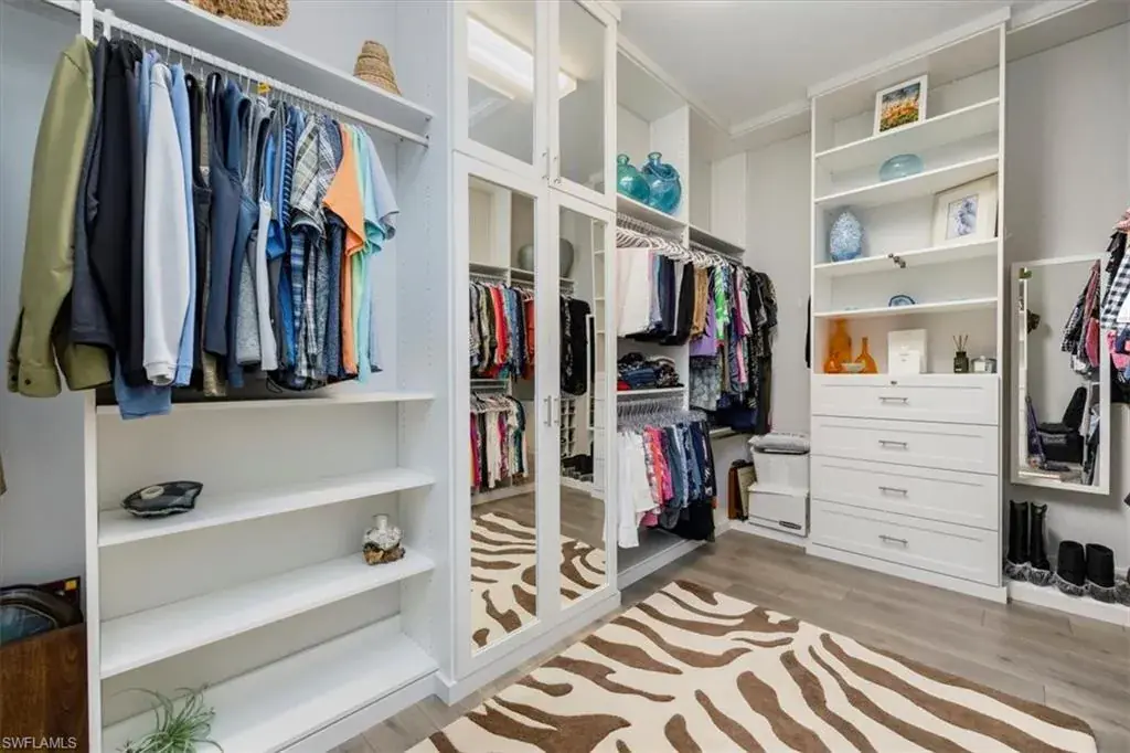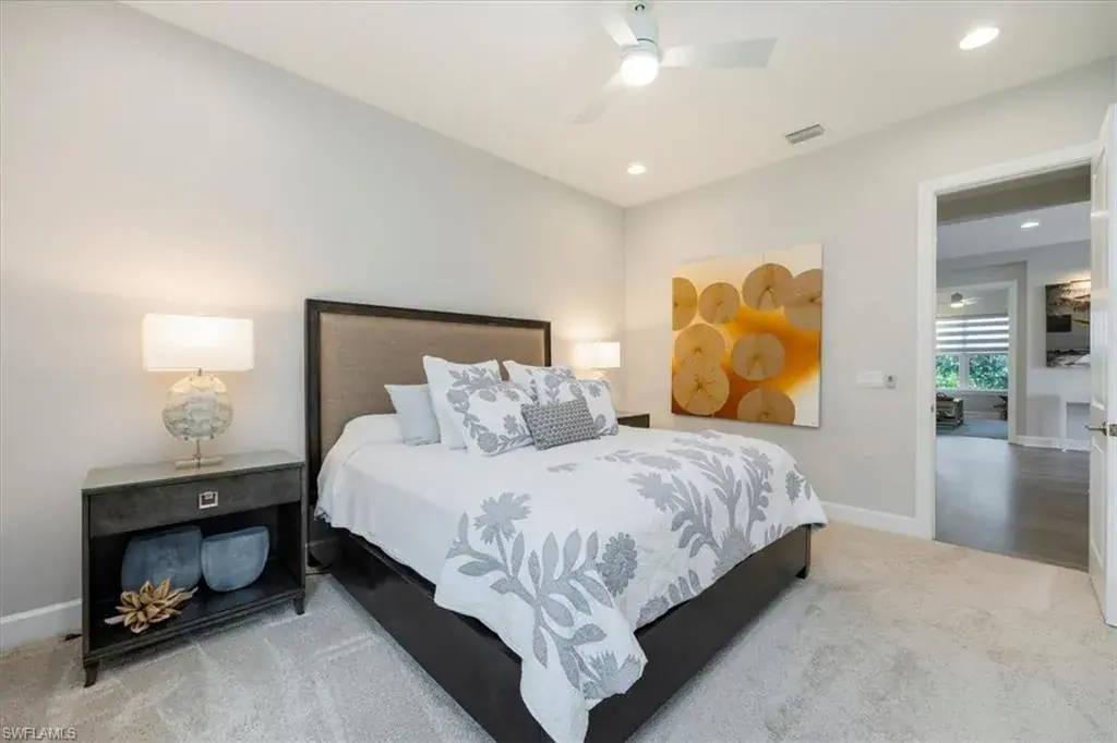 This stunning Pallazzio floor plan offers over 3,000 square feet of elegant living space, complete with three bedrooms, a den, and three full baths. Designed for both comfort and sophistication, the home includes an immediate full golf membership, making it an ideal choice for those seeking a vibrant lifestyle with world-class amenities at their fingertips. Thoughtful upgrades are found throughout the residence, starting with hurricane-rated windows, sliders, and doors, a new hurricane impact front door with matching side panels, and Storm Smart motorized shutters for peace of mind. A whole-house gas generator, tankless hot water heater, and a full water filtration and reverse osmosis system ensure modern convenience and efficiency. Inside, 10-foot ceilings, 8-foot doors, and Synergy cypress wood accents in the entryway, lanai, foyer, great room, primary suite, powder room, and laundry add warmth and architectural character. The extended gourmet kitchen is a true centerpiece, featuring GE Monogram appliances, a natural gas cooktop with wall oven, wine and beverage coolers, glass display cabinetry, and under-cabinet lighting. A SONOS sound system with in-ceiling speakers, custom designer lighting, and professionally designed draperies and blinds elevate the home’s interior design. The spacious primary suite offers a walk-in closet with custom shelving, a luxurious bath with double sinks, makeup area, and a frameless glass shower, while guest suites feature their own stylishly appointed bathrooms. Step outside to a private retreat on the oversized lanai, enhanced by a feature shell wall, bar seating, and a fully equipped outdoor kitchen. The gas-heated saltwater pool and spa with waterfall features are surrounded by picture window screens, mature native landscaping, and front and rear landscape lighting, creating a serene backdrop of preserve views and glowing sunsets. Additional highlights include an extended two-car garage with epoxy flooring, built-in storage, insulation, air conditioning, and a refrigerator, as well as ceiling fans in every bedroom, the den, great room, and lanai. High-end furniture is negotiable, allowing for a seamless move-in experience. Every detail of this property has been carefully curated for luxury, comfort, and peace of mind—ideal for both entertaining and quiet enjoyment.