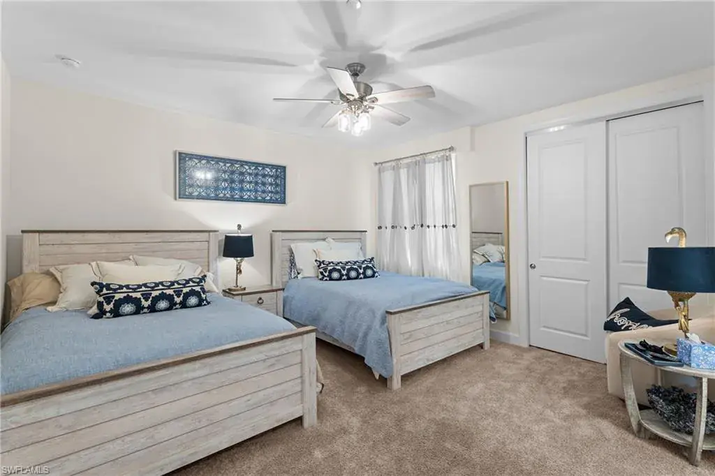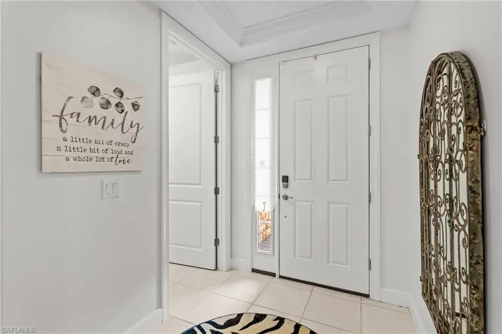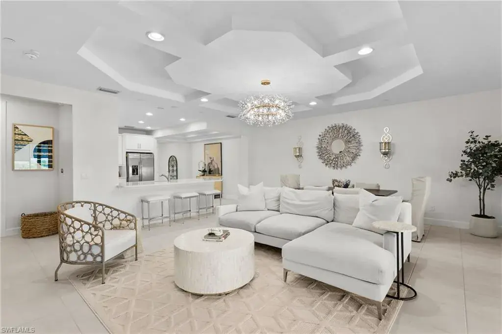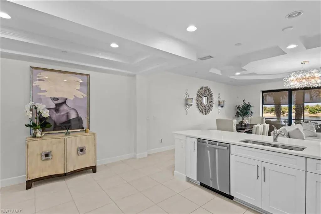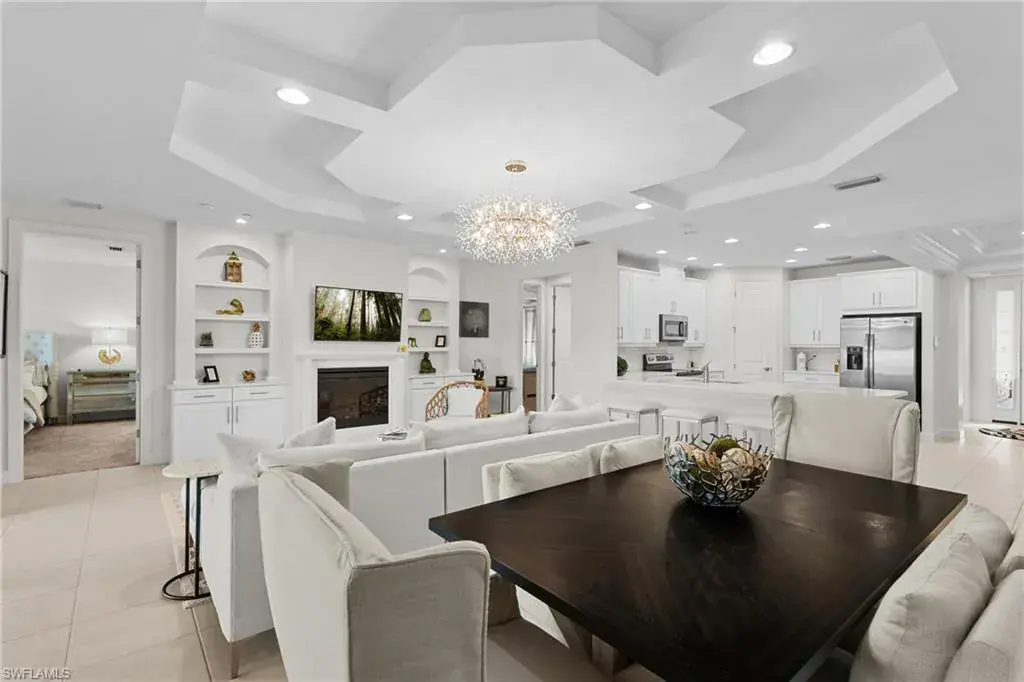 This professionally decorated Vitale open-floorplan offers 2 bedrooms, 2 baths, and a one-car garage. This former model is offered with furnishings and features a gourmet kitchen with a large Quartz island, white cabinetry and subway tile backsplash. The light-filled primary suite includes a walk-in shower, double vanities and quartz counters. The private guest suite has its own en-suite bath. Additional features include a family room with fireplace and built-ins, tray ceilings, impact-resistant windows/doors, Uxari security system, radon monitoring, and a transferrable Home Tech warranty. Step outside to the spacious lanai with serene lake views, or stroll to nearby satellite pools with BBQ grills and guest parking. A social membership (with golf privileges May–Oct) is included, giving access to the 18-hole course, pickleball, tennis, walking trails, dog park, fitness center, spa, salon, Bahama Bar, Barrel House dining, and year-round events. Live the resort lifestyle at Esplanade Golf & Country Club.