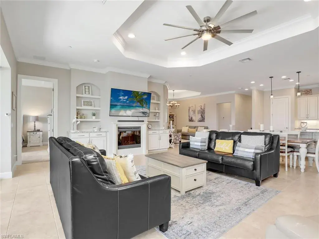 Step into luxury with this beautifully appointed 3 bedroom + den, 2 1/2 bath residence offering over 2,300 square feet of open-concept living. Designed for both style and elegance, the home features hurricane-impact windows and doors throughout and is thoughtfully decorated in a coastal beach-style theme, blending airy tones, natural textures, and a relaxed yet sophisticated ambiance that perfectly compliments the Naples lifestyle.