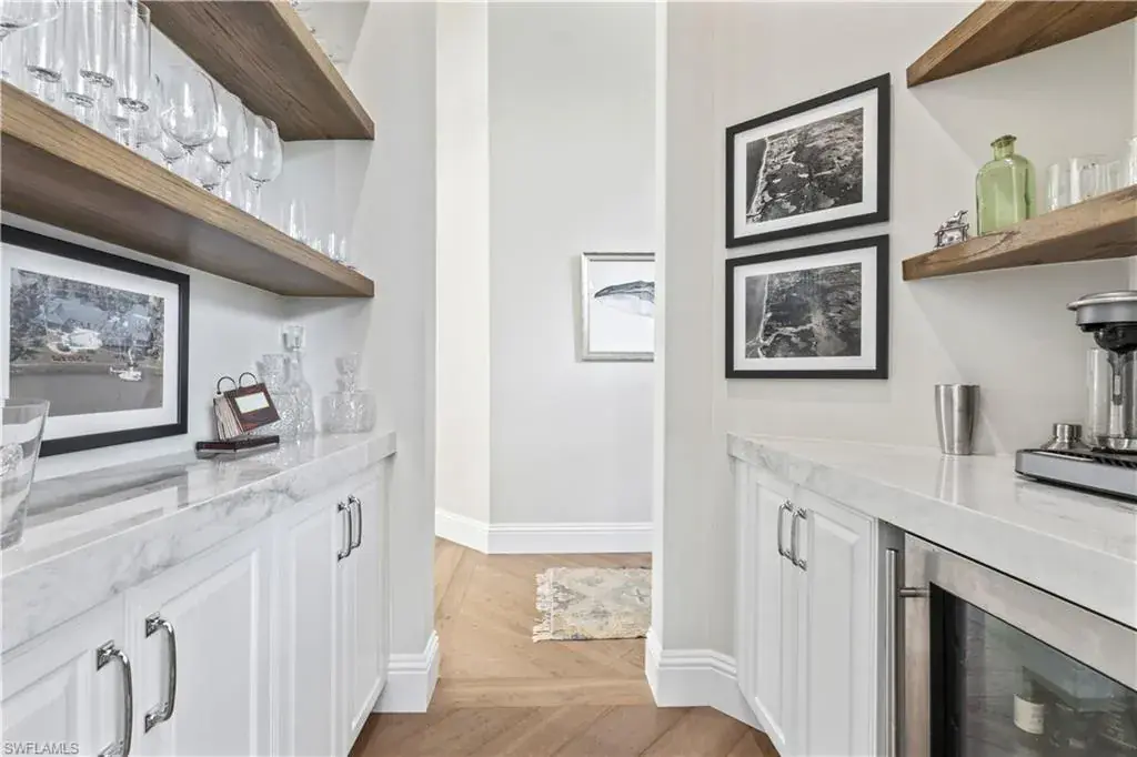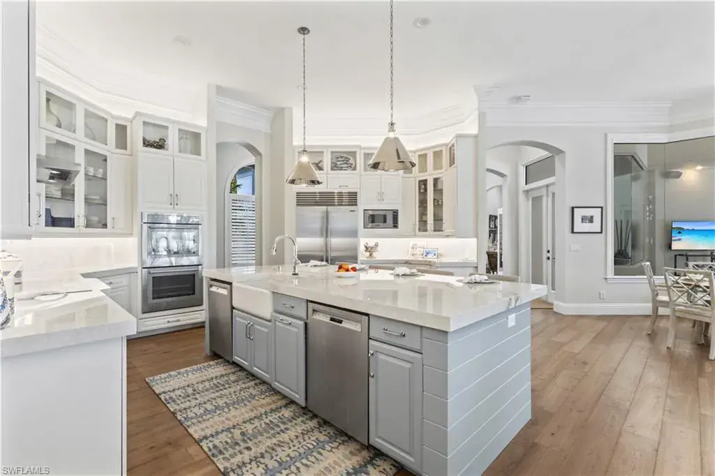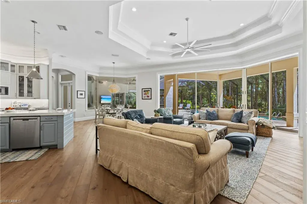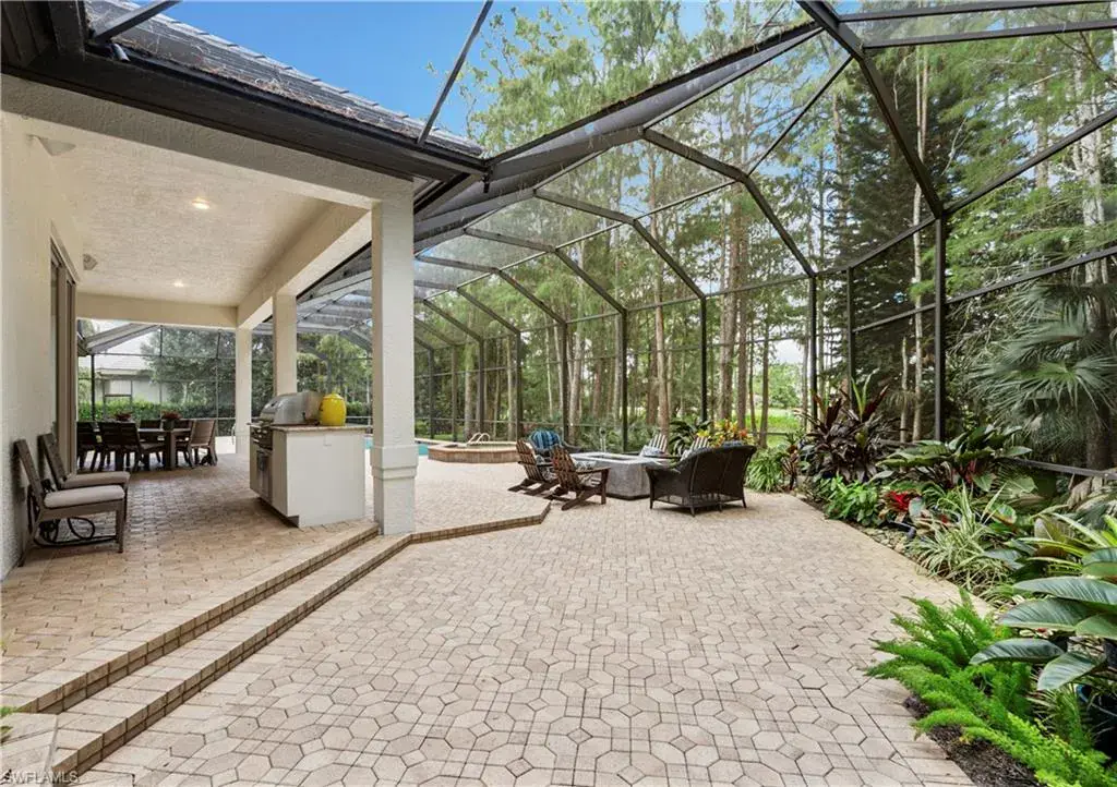 This completely reimagined estate spans over 6,000 square feet of redesigned living space, offering exceptional privacy with panoramic vistas stretching toward the picturesque 16th hole of the Pine Course—a setting that epitomizes the elegance and tranquility of Grey Oaks living. The floor plan features a spacious first-floor primary suite, three generous guest suites each with en-suite bathrooms, and a private office can flex to a comfortable guest room. An expansive upstairs loft serves as a separate living area perfect for extended family or visitors, giving them privacy and comfort. Culinary enthusiasts will appreciate the chef’s kitchen, elegantly redesigned with Quartzite countertops, an oversized island, Sub-Zero refrigerator/freezer, and Thermador appliances, dual Bosch dishwashers, and a porcelain farmhouse sink. Entertaining is effortless in the sophisticated passthrough bar, and dedicated wine storage and display. An expansive covered outdoor living area sets the stage for resort-style gatherings, offering both lounging and dining spaces along with a built-in gas grill. The oversized screened sundeck with a designer pool and spa invites relaxation in the warmth of the Florida sun, while lushly landscaped borders create a tranquil private oasis with long lake views framed by lush landscaping, towering cypress, and pine. Additional updates include a new roof in 2023 and updated air conditioning / systems for peace of mind. Residents of Grey Oaks Country Club enjoy an unparalleled lifestyle with 54 holes of championship golf, two clubhouses, multiple dining venues, tennis, pickleball, and bocce courts, a resort-style pool, and a 30,000-square-foot wellness center and spa. Perfectly situated in the heart of Naples, this residence offers quick access to downtown shopping, fine dining, and the world-renowned beaches of Naples. With a vibrant social calendar and a welcoming community, Grey Oaks offers the perfect blend of sophistication, recreation, and tranquility—making it a truly exceptional place to call home.