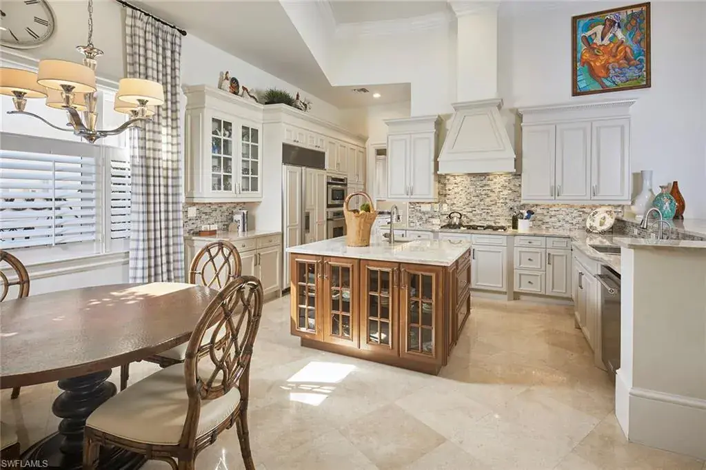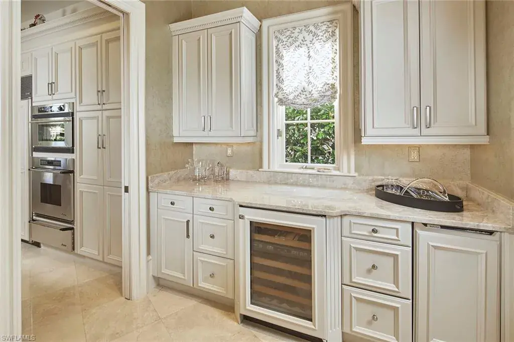 Immediate Grey Oaks full golf membership available. This former Magnolia II model is a fantastic opportunity to own a well-appointed three-bedroom plus study, low-maintenance home in the quaint neighborhood of Noble Heron in Estuary at Grey Oaks. Features include a new roof in 2021, natural gas generator, neutral Saturnia stone flooring throughout main living areas, authentic wood beam living room ceiling, updated white gourmet kitchen with Taj Mahal quartzite countertops, Sub-Zero refrigerator and a central butler’s pantry with a wine refrigerator. Large impact-resistant picture windows and doors flood the heart of the home with natural light. The owner’s suite features a morning bar with sink and under-counter refrigerator, two walk-in closets, dual vanities, large marble lined shower and soaking tub. The spacious outdoor living area is ideal for entertaining family and friends in the mild Naples climate and includes two covered living areas, one screened with a natural gas fireplace and the other with a dining area and summer kitchen which includes a refrigerator and natural gas grill. Additional features include Brazilian cherry wood flooring in the study, natural gas-heated pool with raised spa, natural gas generator, a private entry courtyard with stone fountain and an elegant Mahogany entry door. A world of luxury awaits you in the modern, award-winning Grey Oaks Country Club community minutes from world-class dining and beaches of Old Naples.