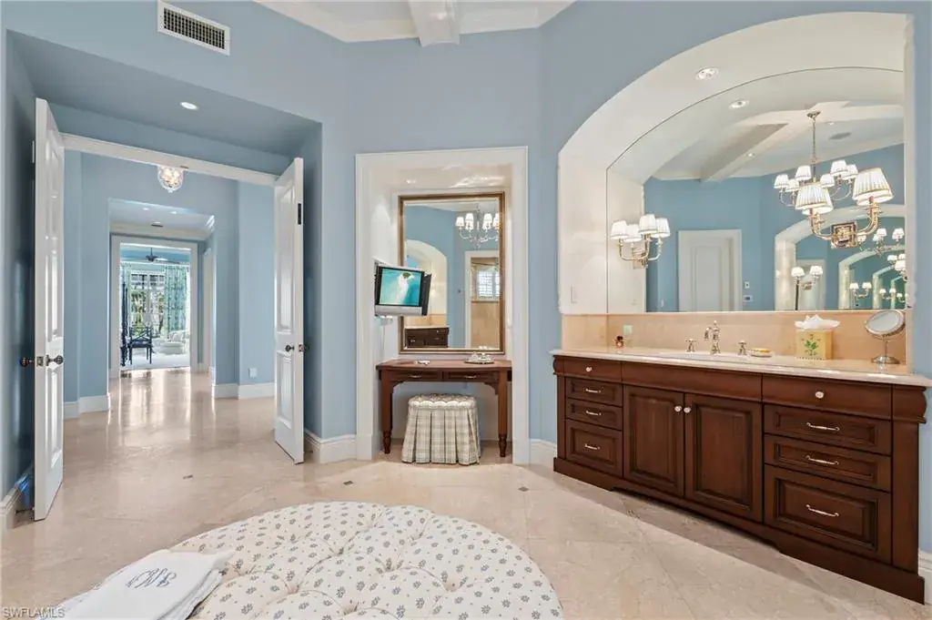 IMMEDIATE GOLF MEMBERSHIP AVAILABLE This incomparable, classic home in the Estuary at Grey Oaks is a work of art. Boasting over 8,100 square feet of luxury living space, it was meticulously designed and built for the current owners with artisan level millwork and detail. A deep veranda spans the front of the house along the drive court and delivers you the elegant entry hall. The atmosphere that pervades is one of absolute quality and elegance. Once inside, your gaze is immediately drawn through the french doors to the broad rear veranda, the infinity edge pool and to the lake and fairway beyond. The main hall leads you past the bar area and then into the enormous chef’s kitchen fitted with custom cabinetry, Wolf, Subzero and Miele appliances. A massive, light- filled pantry flanks the kitchen. In the adjacent family room, two entire walls of glass disappear creating an enormous entertaining space with the lanai for true indoor-outdoor living. On the lanai is a large outdoor kitchen and bar and beyond that is a luxurious guest cabana & bath. The opposite end of the first floor holds a formal study and grand principal suite complete with private sitting area and morning kitchen. Upstairs are 3 lavish guest suites, a huge media/game room and a deep, covered veranda. Completing the offering is an oversized 3 car garage with golf cart space. The grounds are highlighted with lush landscaping and lighting. 1437 Nighthawk Pt. simply has to be experienced.